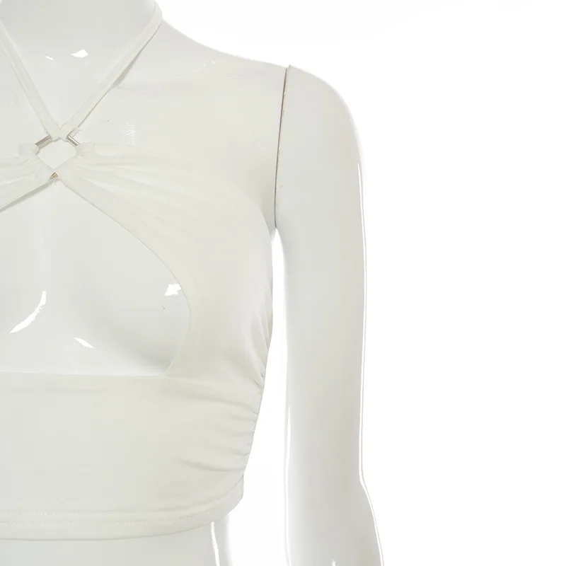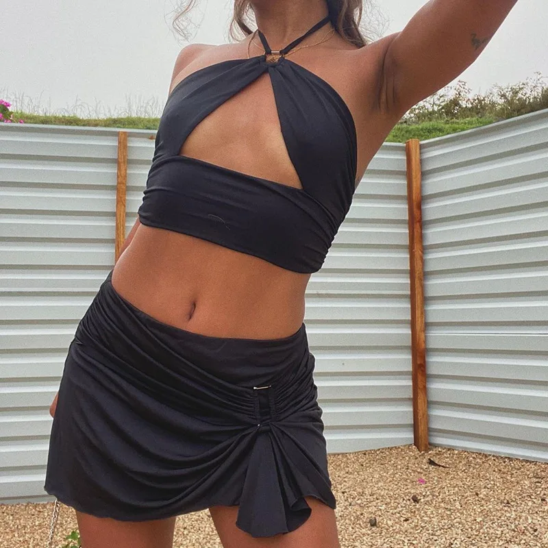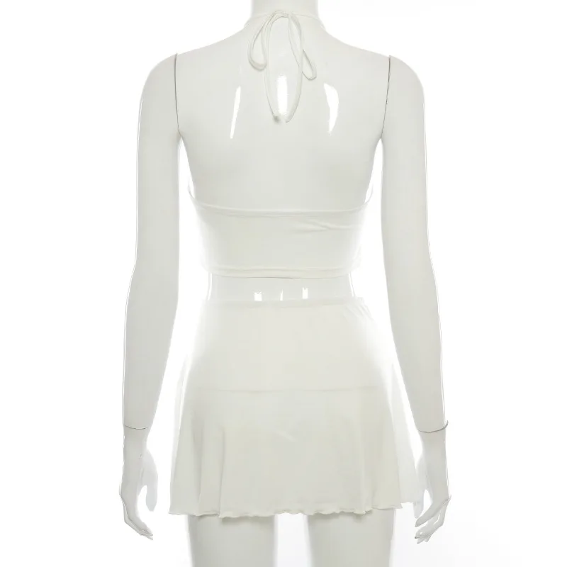 Halter Neck Crop Top And Elastic Waist Short Skirt Suits Off Shoulder Women Summer Backless 2 Two Piece Set Bandage Dress Sets