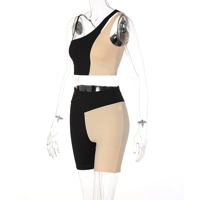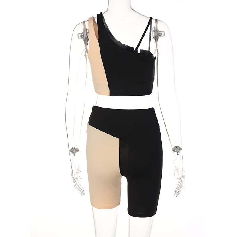 Hot 2022 Summer Fashion Splicing Outfits Sports Fitness Two-Piece Short Suit Top And Bodycon Elasticity Shorts Casual Sets