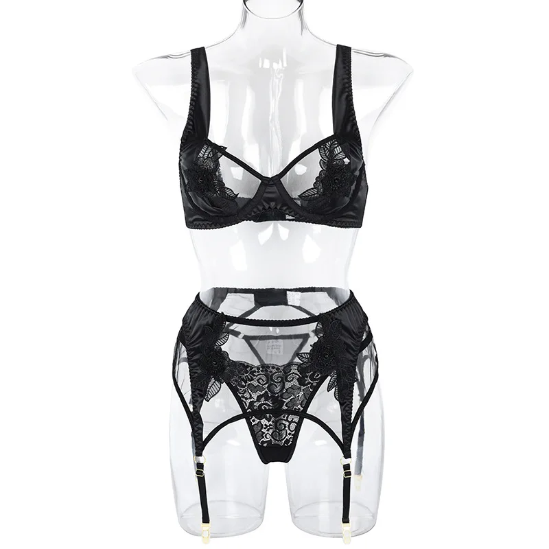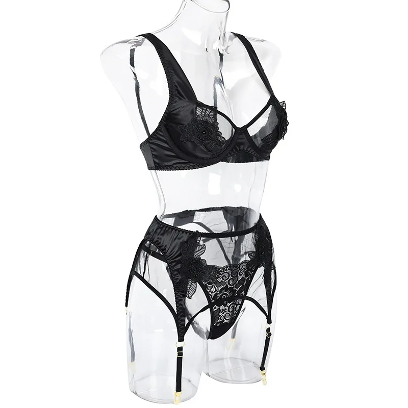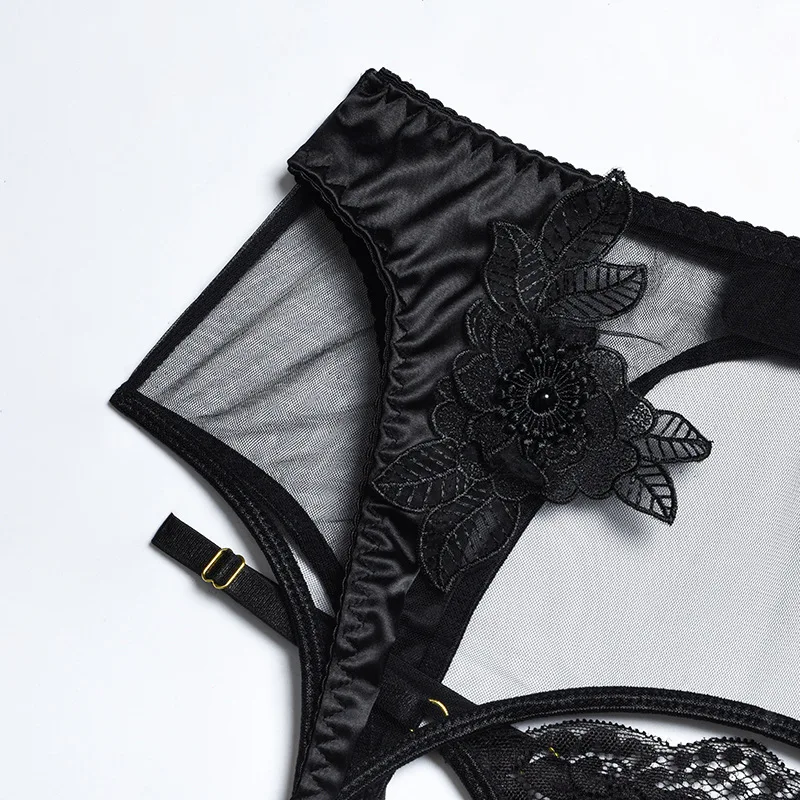 Lace Patchwork Lingerie Sexy Flower Outfits For Woman Sensual Lingerie See-Through Underwear Garters Erotic Bra and Brief Sets
