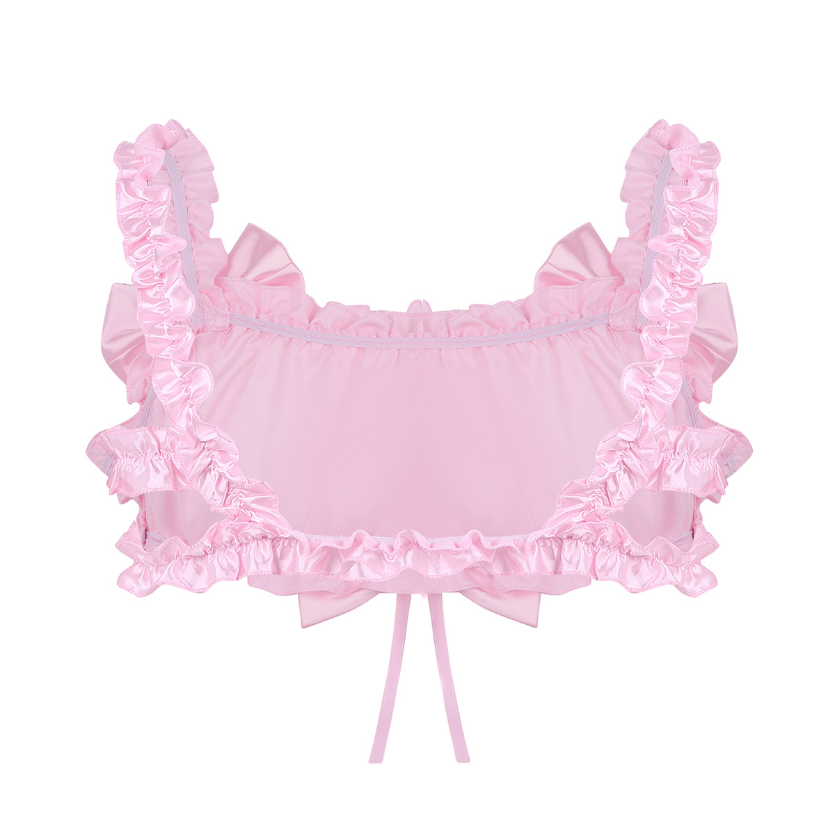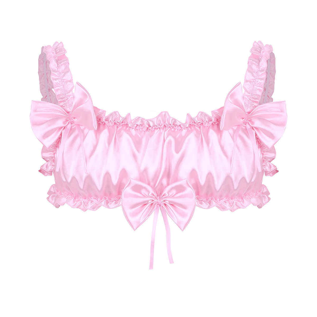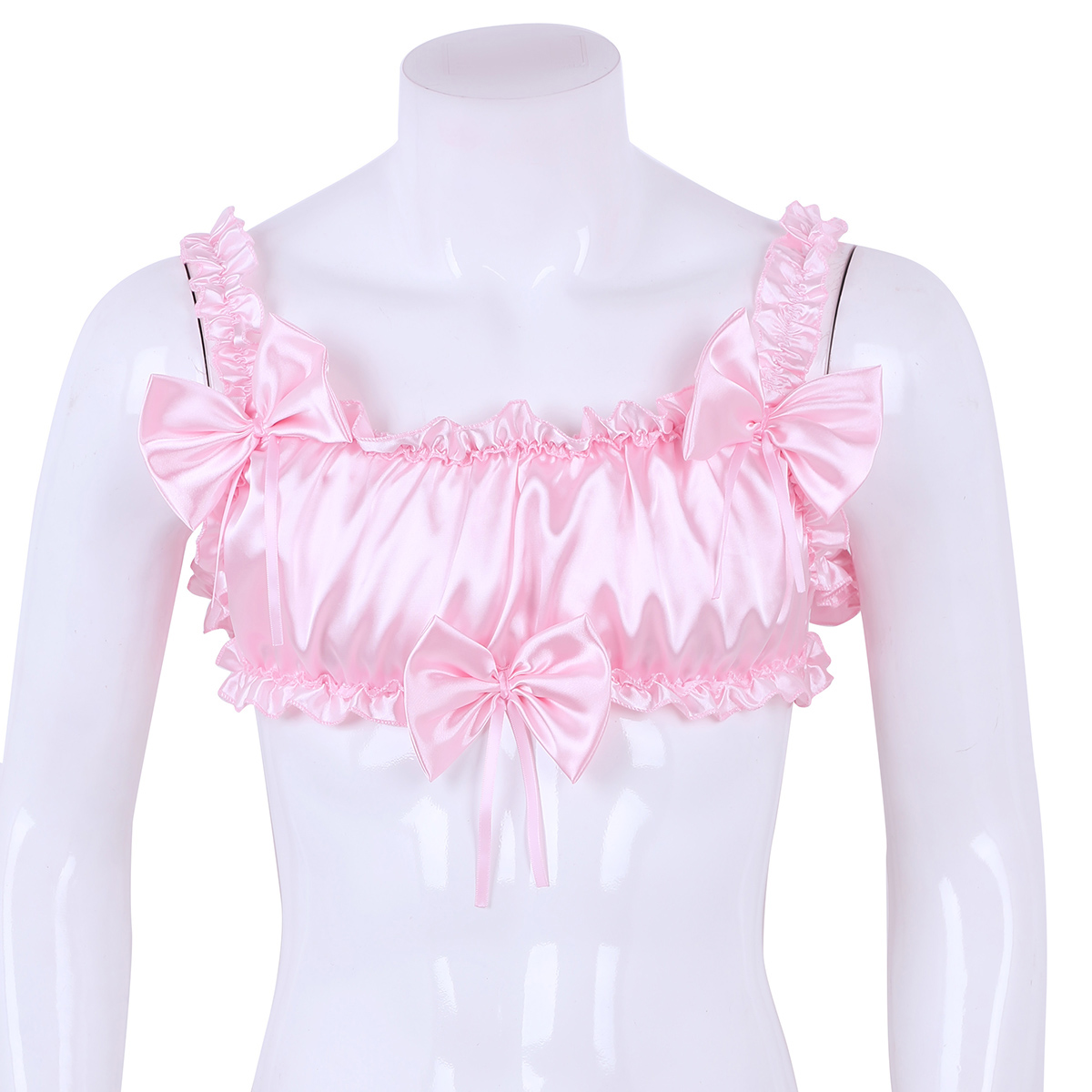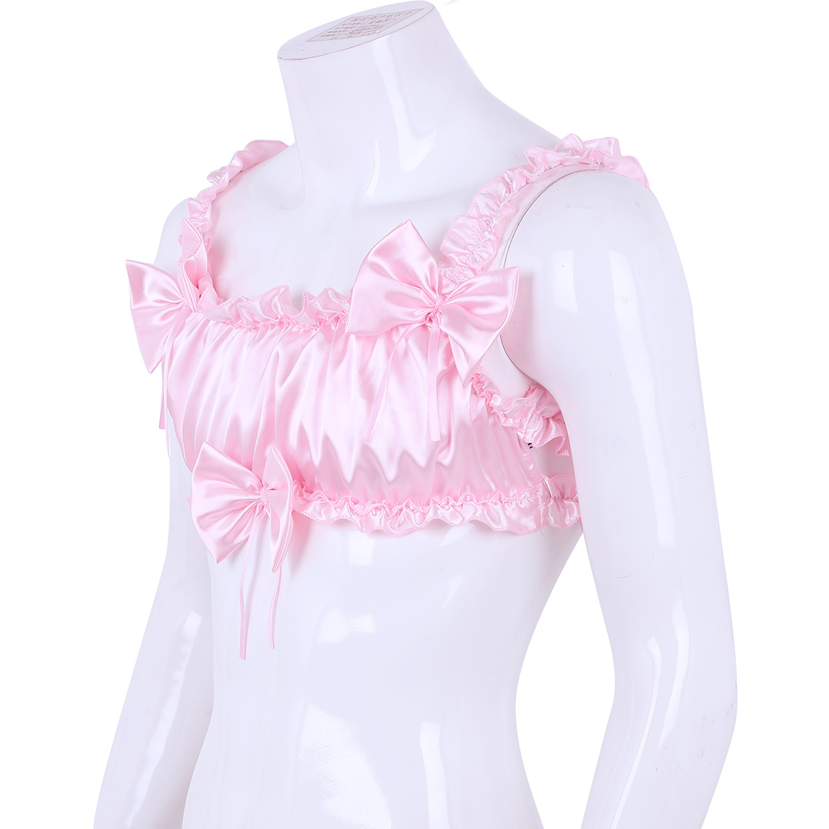 Men Sissy Lingerie Satin Frilly Bra Tops with Briefs.