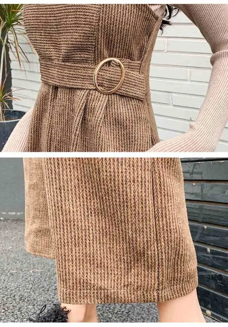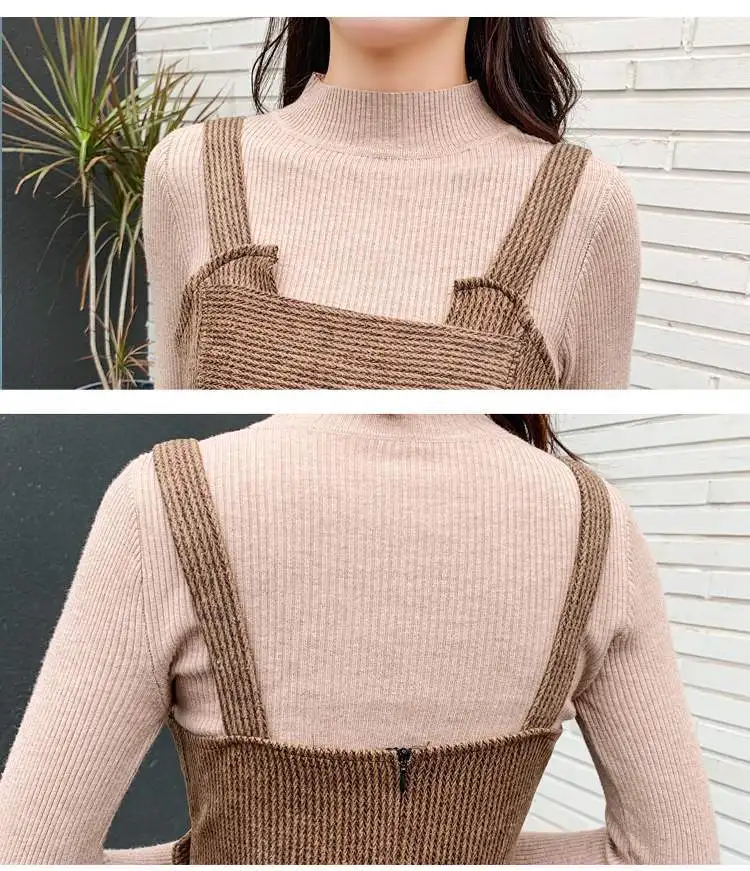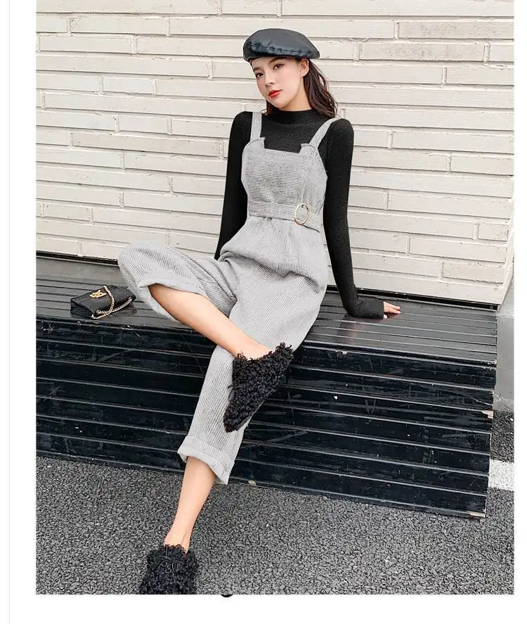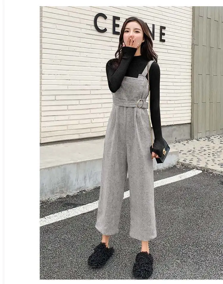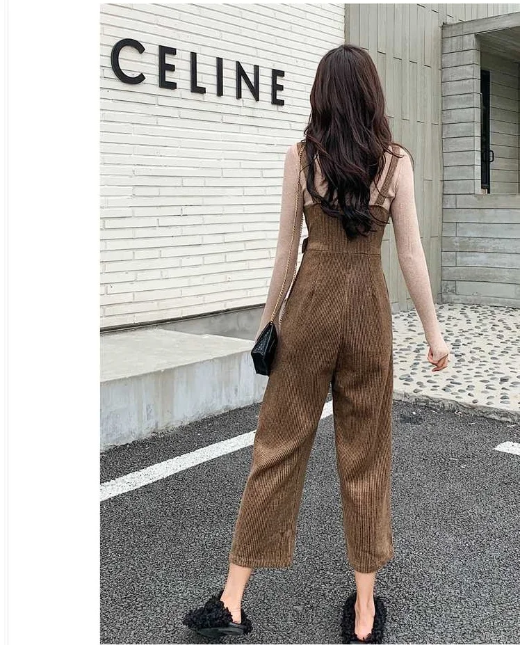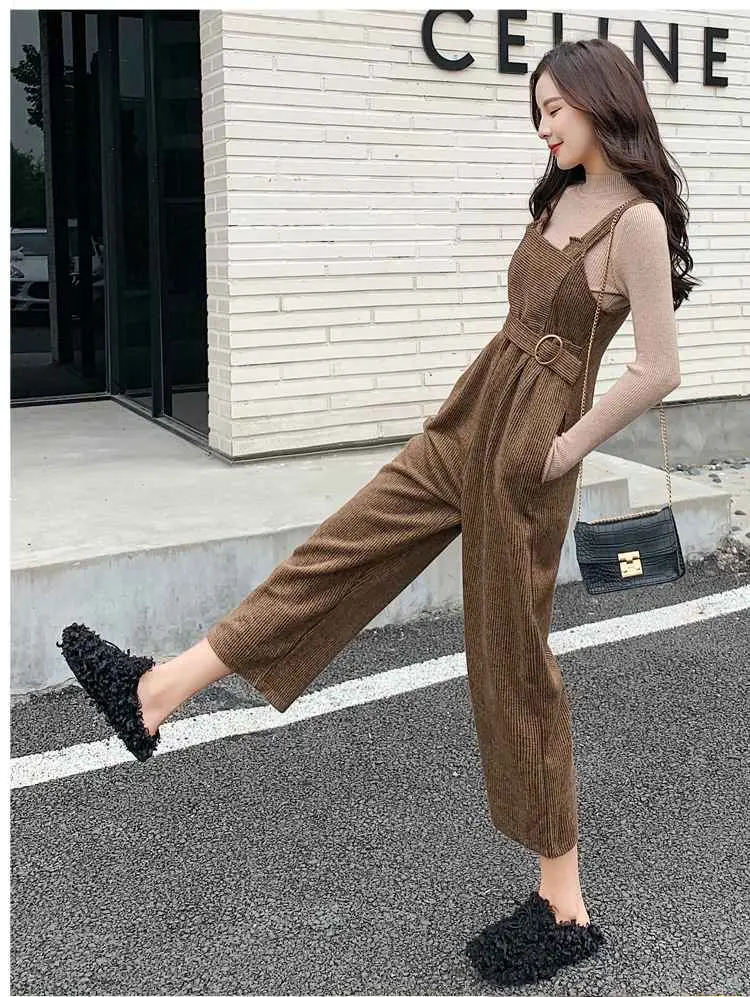 New Autumn Suits Women Loose Retro Corduroy Overalls + Knitted Round Neck Bottoming Sweater 2-Piece Sets Female