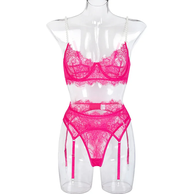 New Embroidery Women's Underwear Set Fancy Lace Bra Kit Push Up Thongs with Garters Sexy Erotic Brief Sets Sexy Lingerie