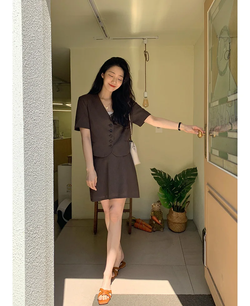 New Girls Spring Women Suits Long Sleeves Tops High Waist Plaid A Line Skirts Womens Two Piece Suits Sell Separately Oversize
