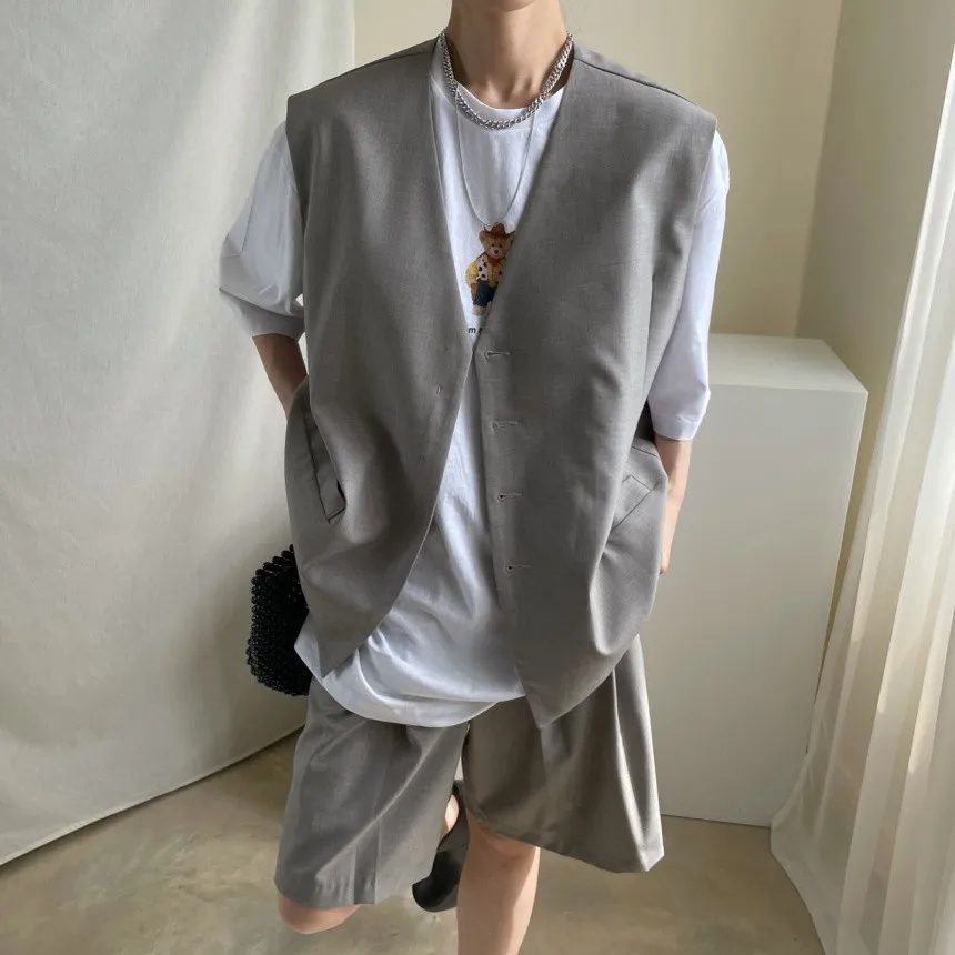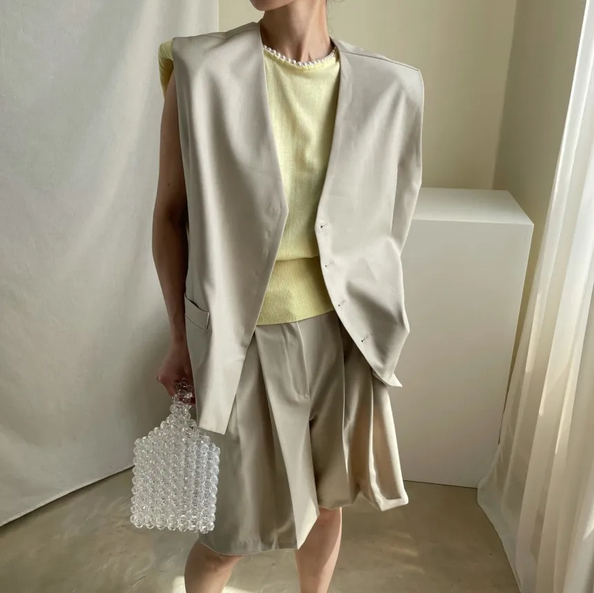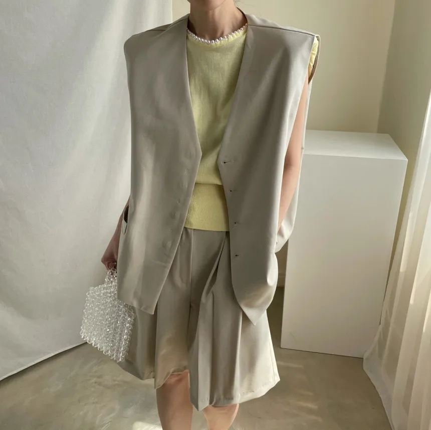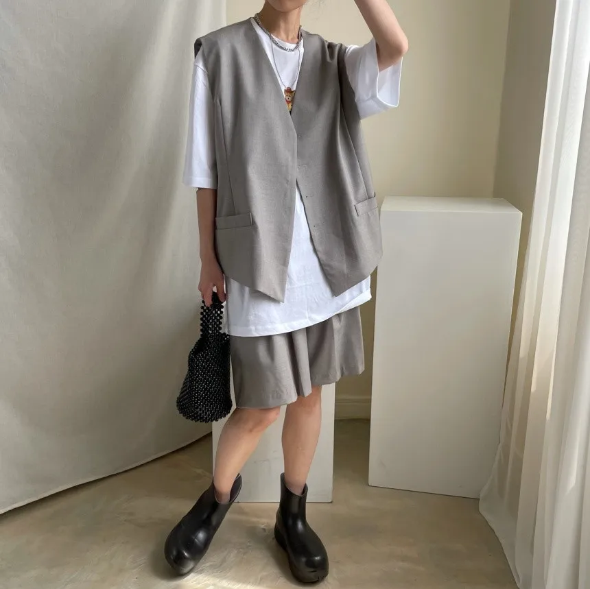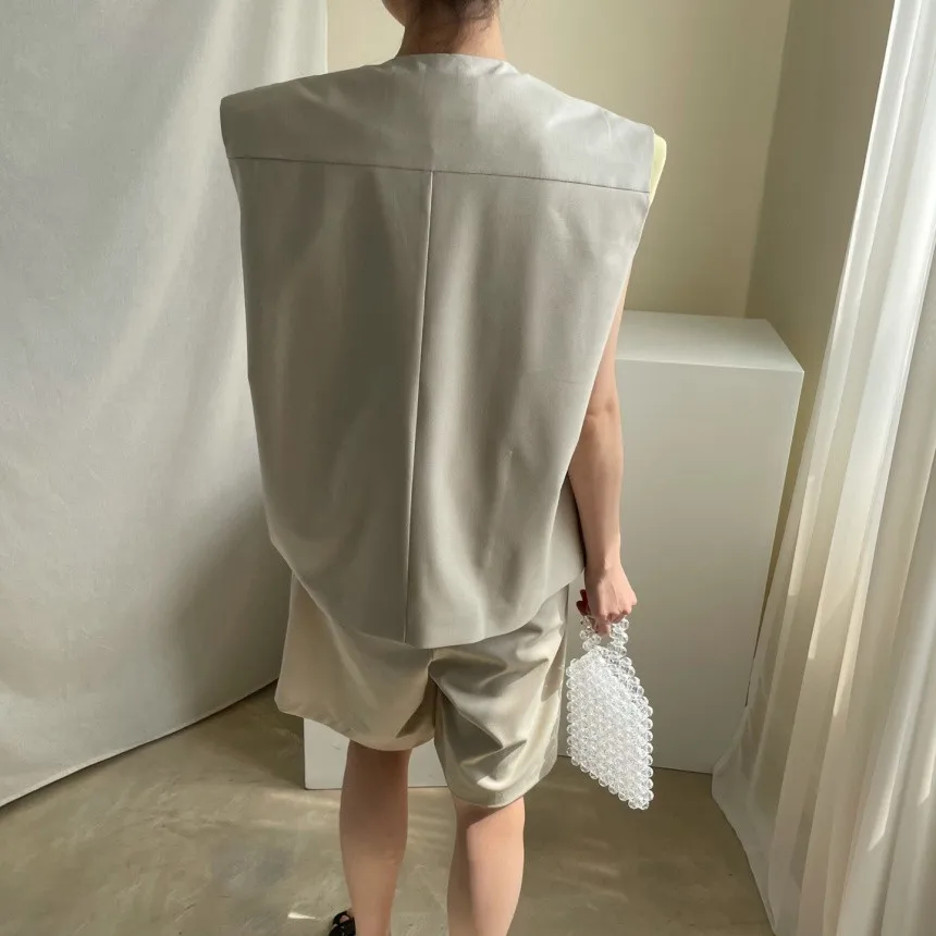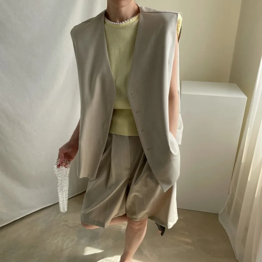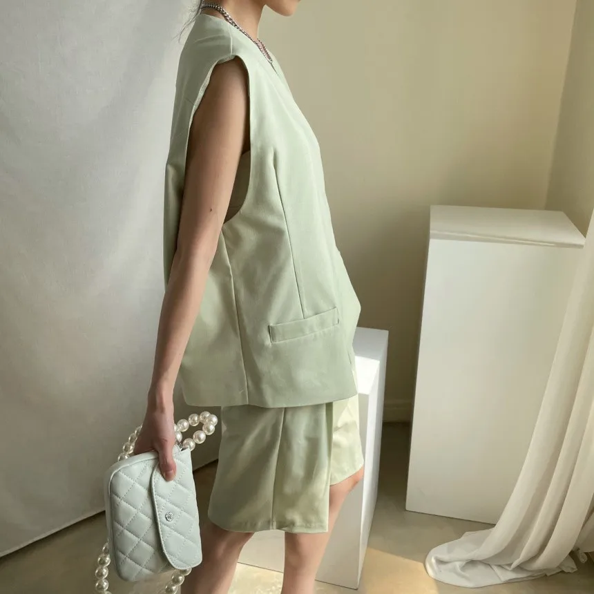 New Girls Spring Women Suits Sleeveless Vest High Waist Solid Shorts Womens Two Piece Suits Sell Separately Oversize