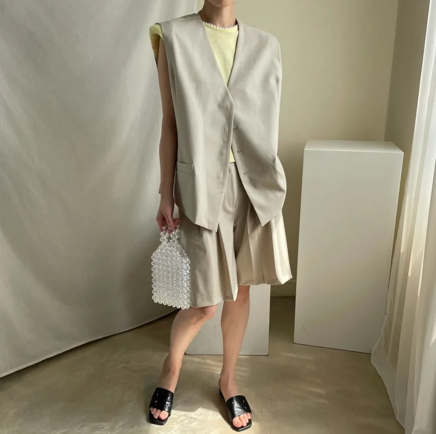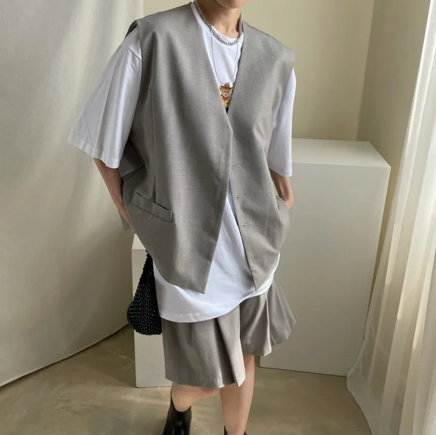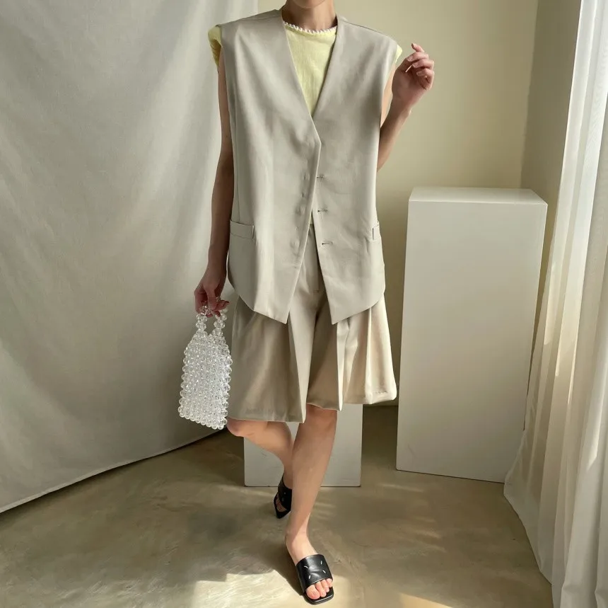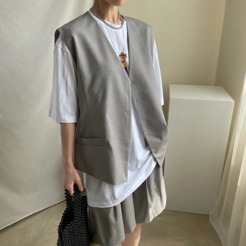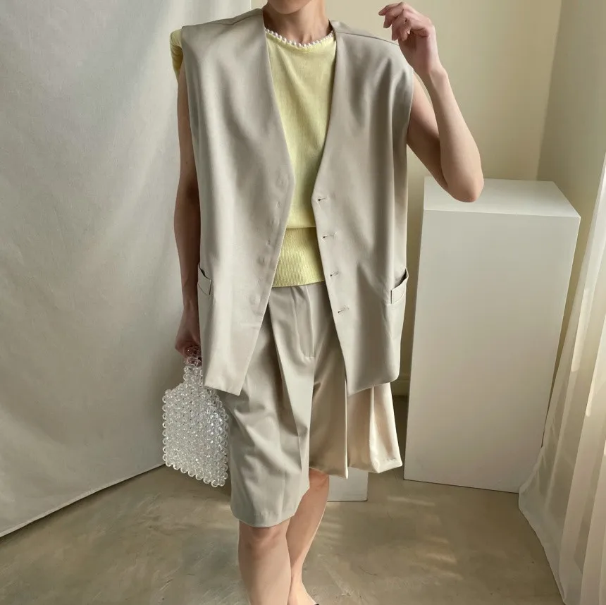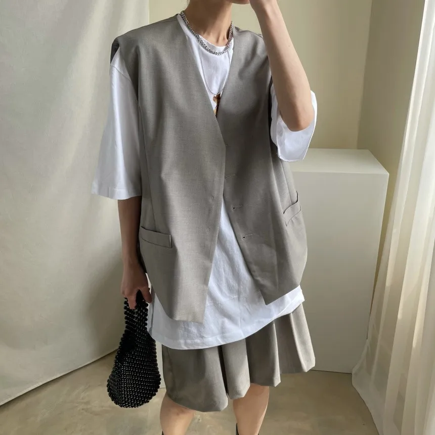 New Girls Spring Women Suits Sleeveless Vest High Waist Solid Shorts Womens Two Piece Suits Sell Separately Oversize