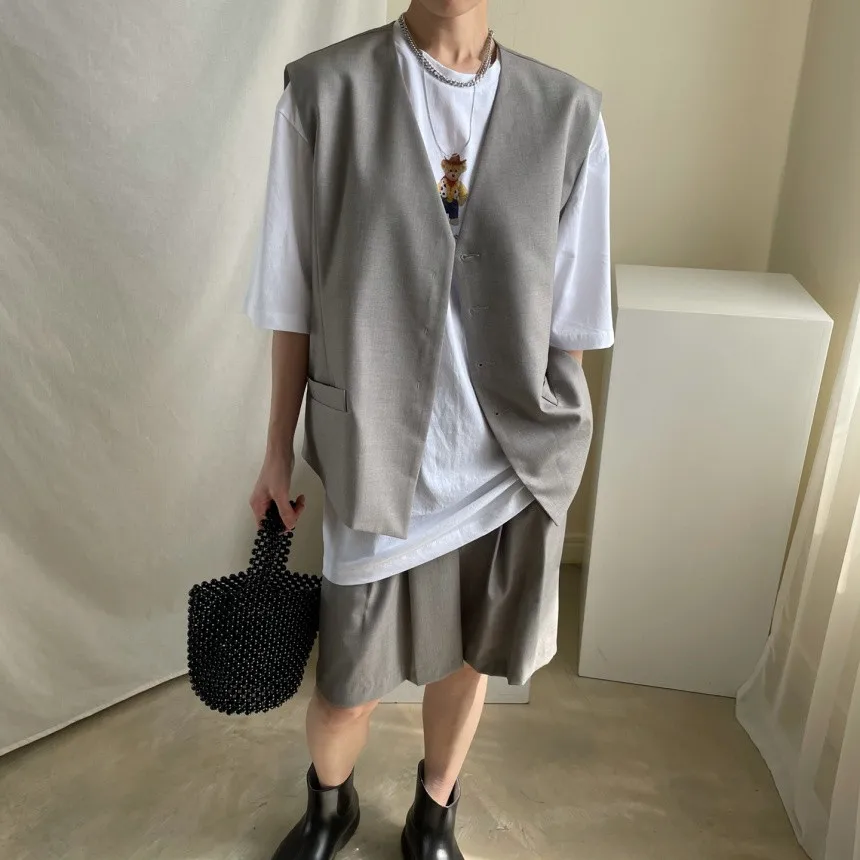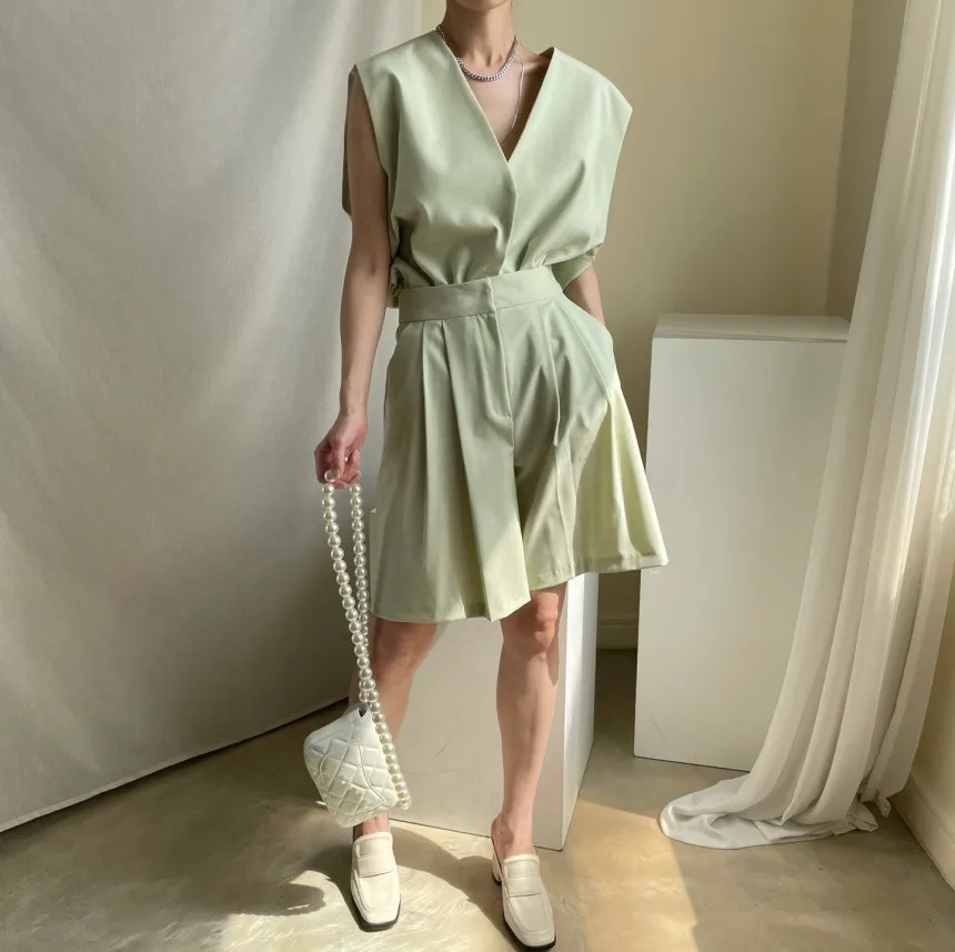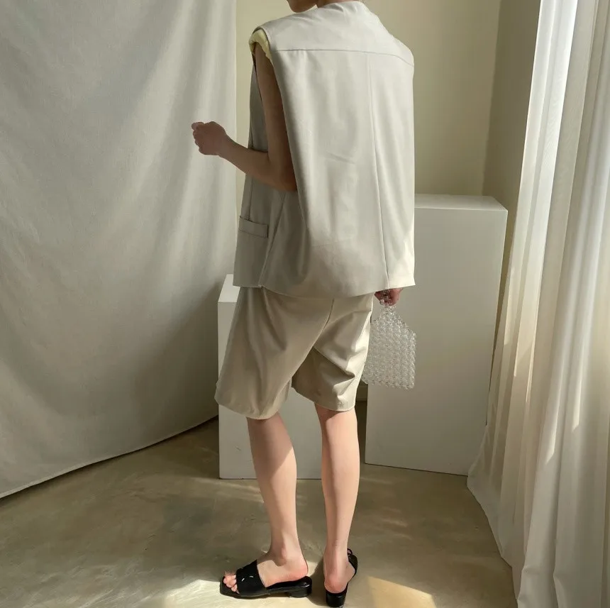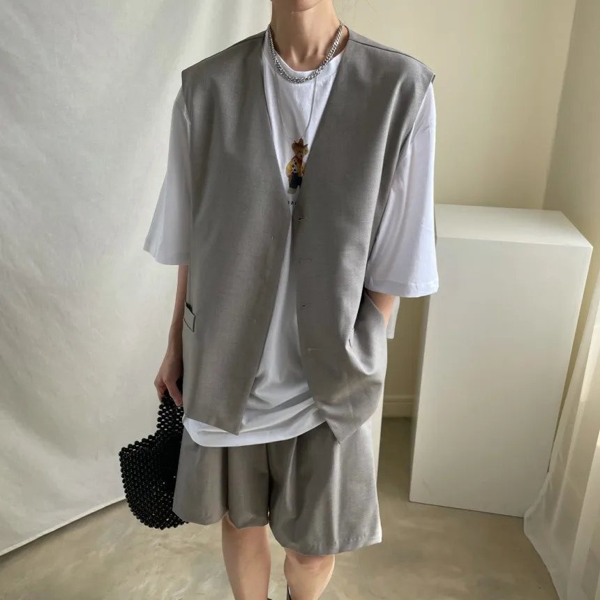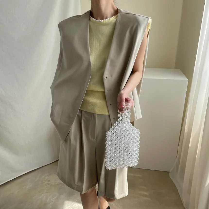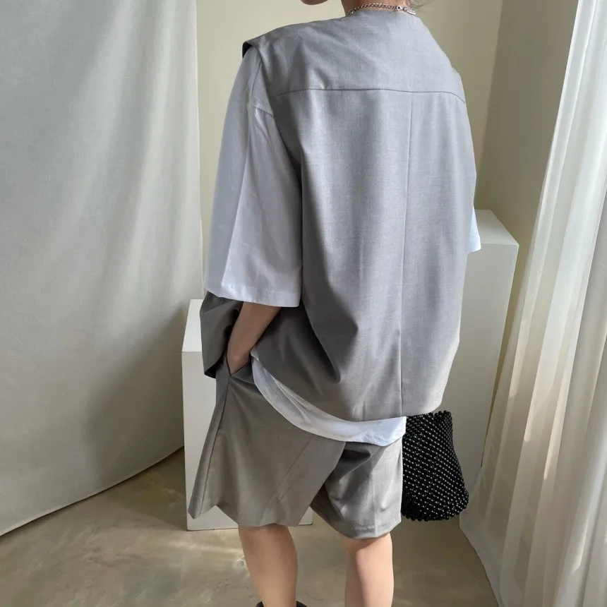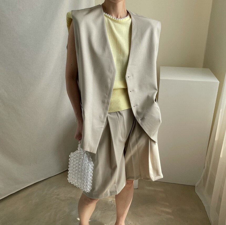 New Girls Spring Women Suits Sleeveless Vest High Waist Solid Shorts Womens Two Piece Suits Sell Separately Oversize