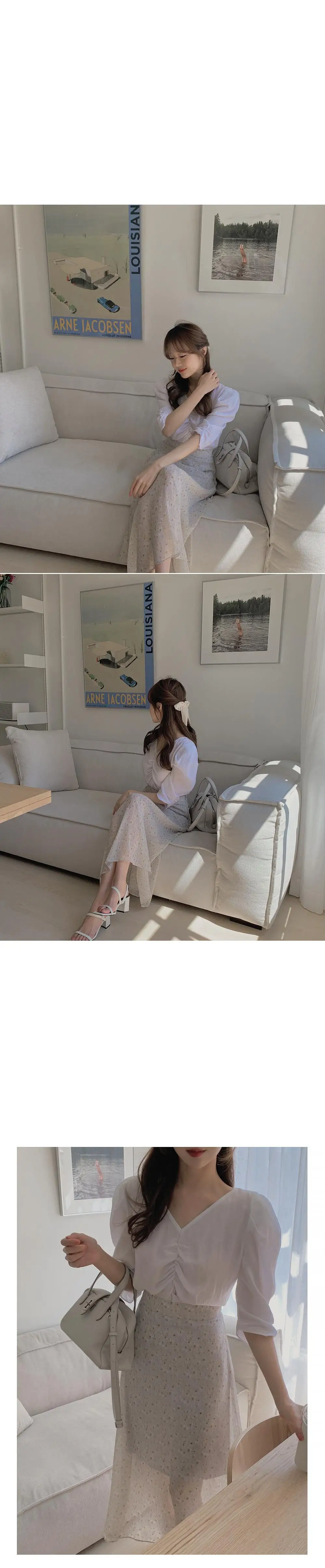 New Girls Summer Blouse Women Suit Shirt Short Sleeves Tops High Waist Long Print A Line Skirts Two Piece Suits Sell Separately