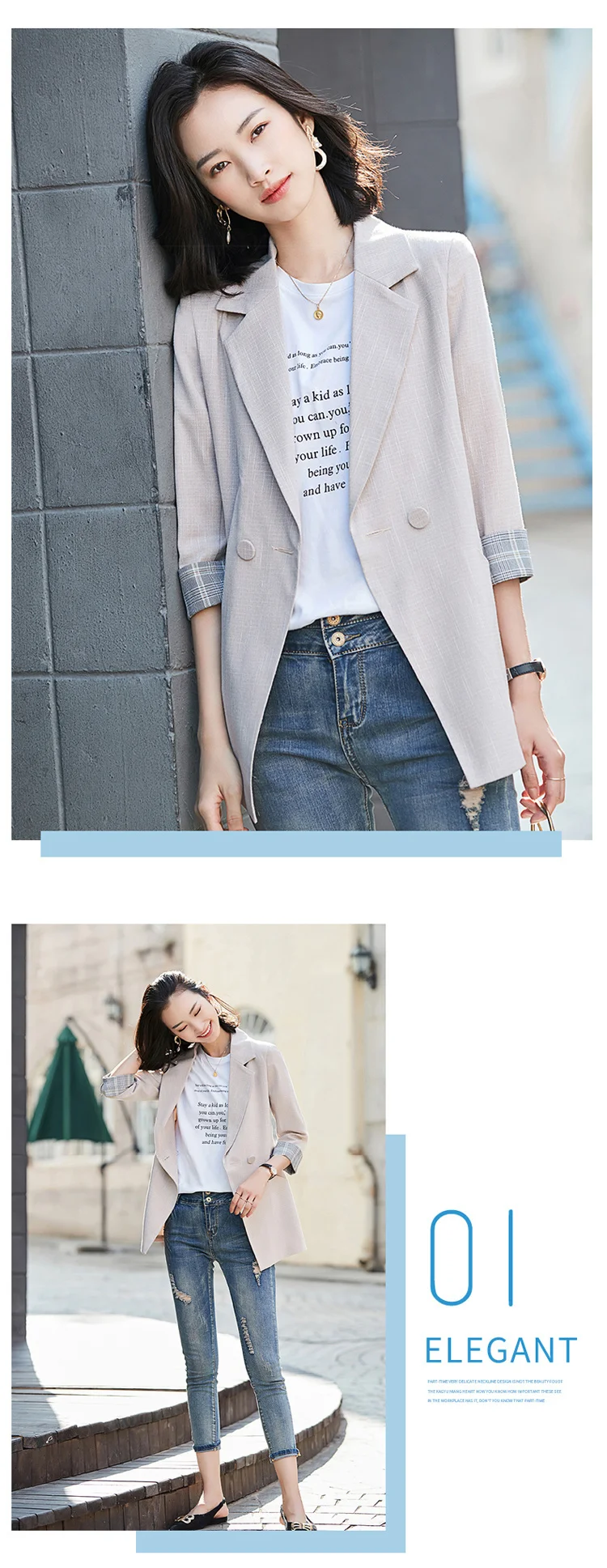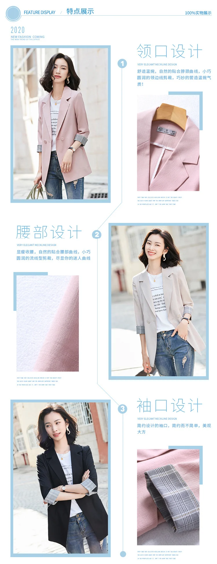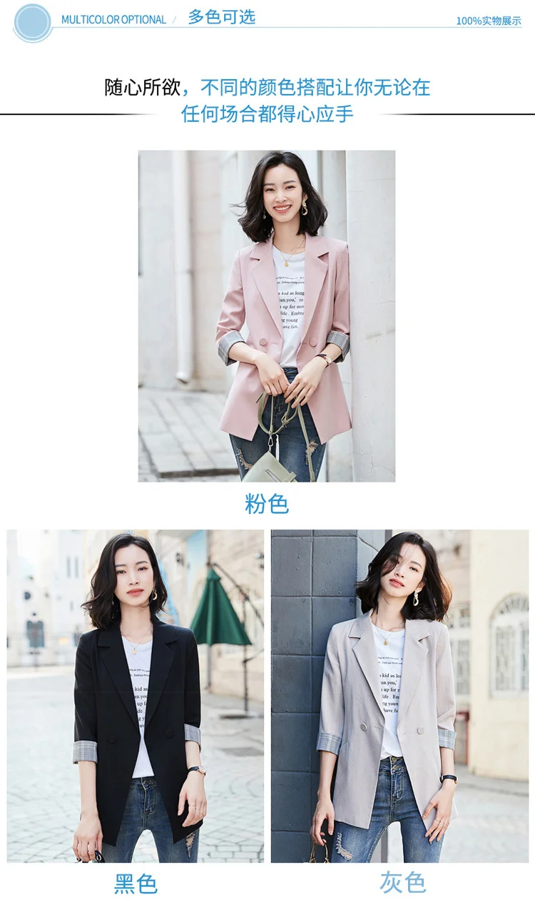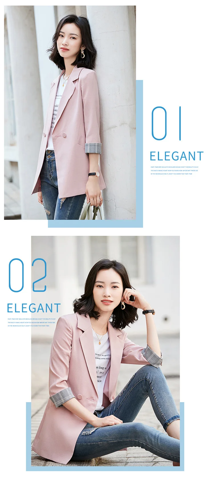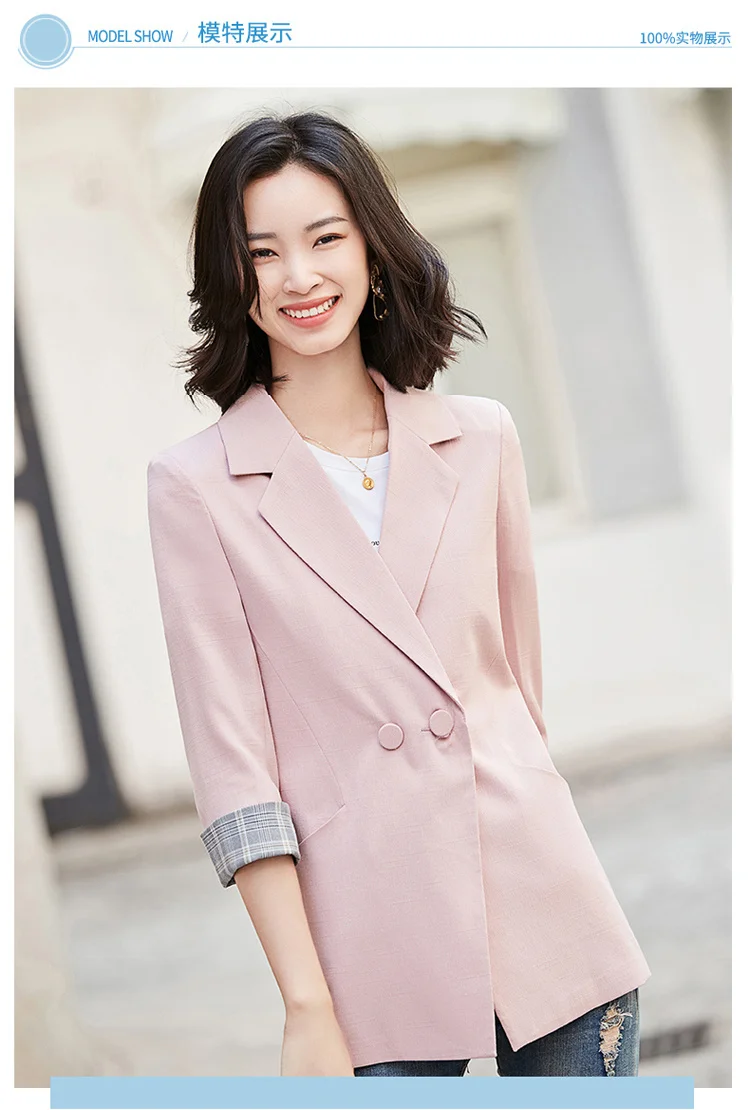 Pink Suits Jacket Women's Three-Quarter Sleeve Korean 2021 Summer New Temperament Leisure Thin Slim Fit Small Suit Blazer Femme