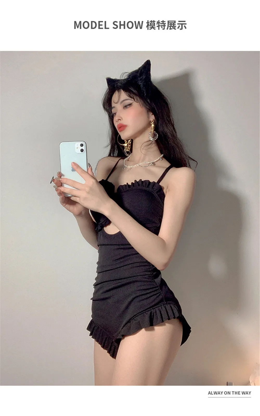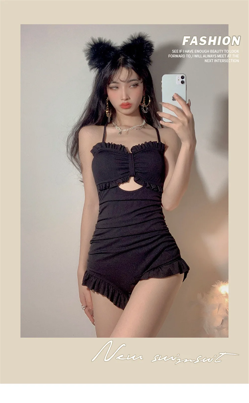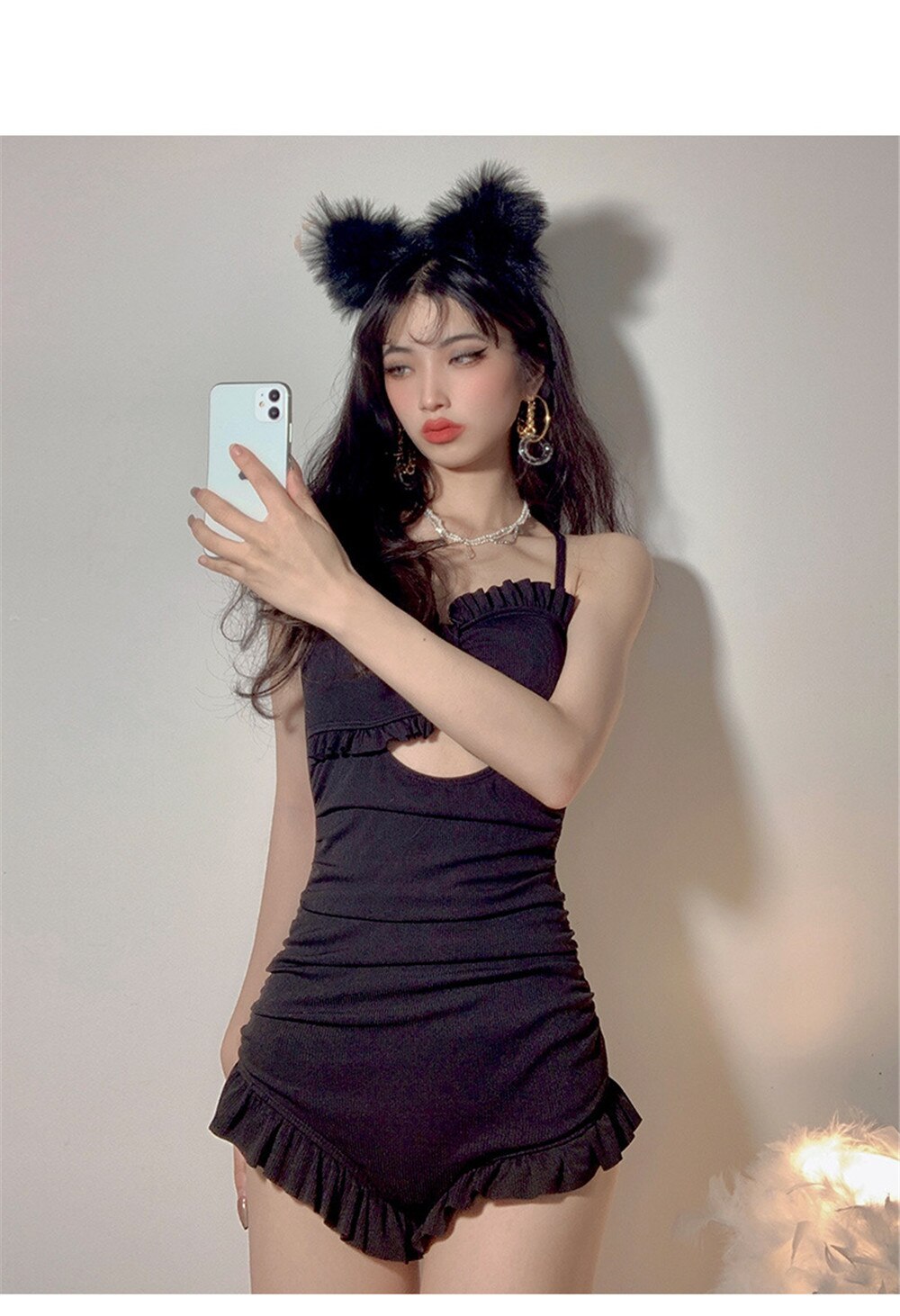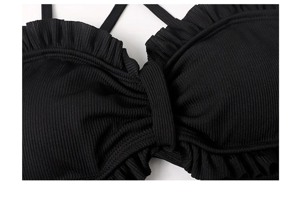 | Sexy Bow One Piece Swimsuit Women Solid Swimwear Cut Out Monokini Push Up Swim Suits Ruffle Bathing Suit Pad Open Back Bandage |