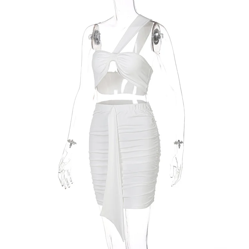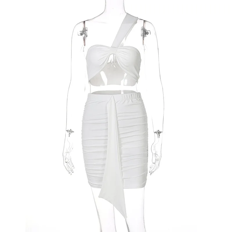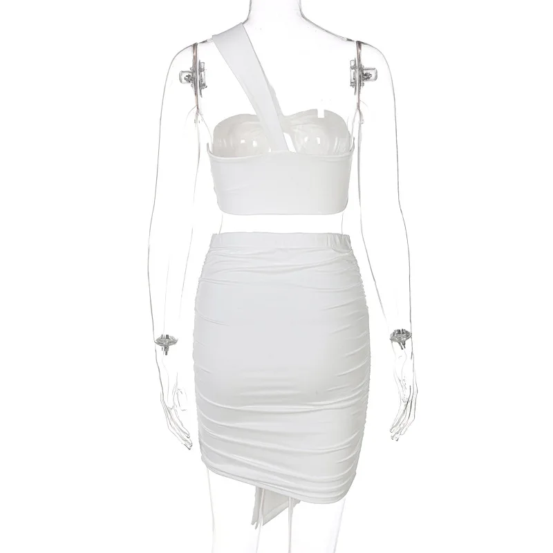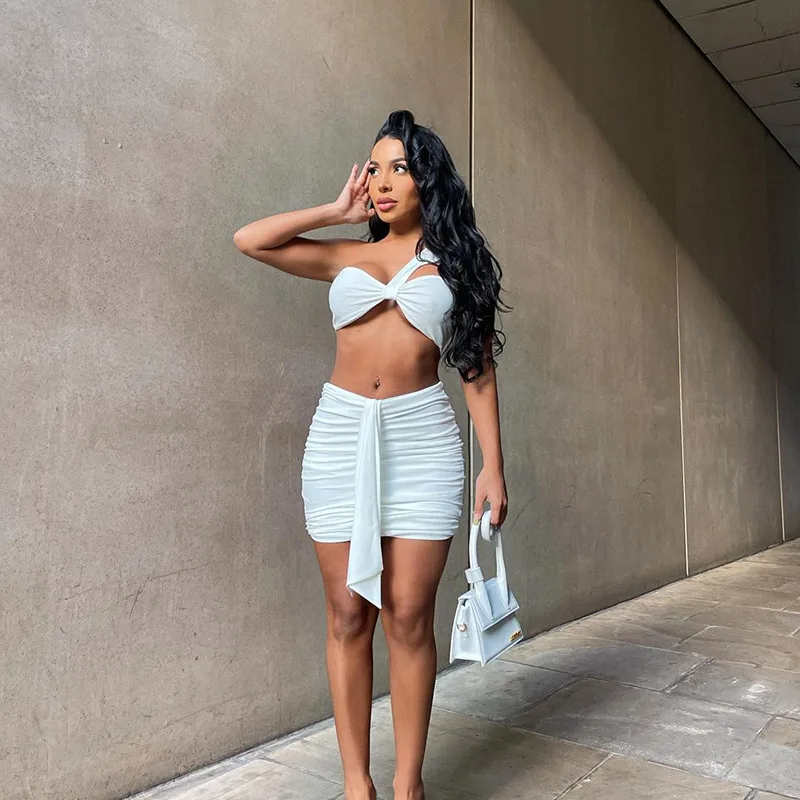 Sexy Crop Top And Short Skirt Suits Women Summer Elegant Bandage Bodycon Strapless Mini Dress Sets Party Fashion Two Piece Set