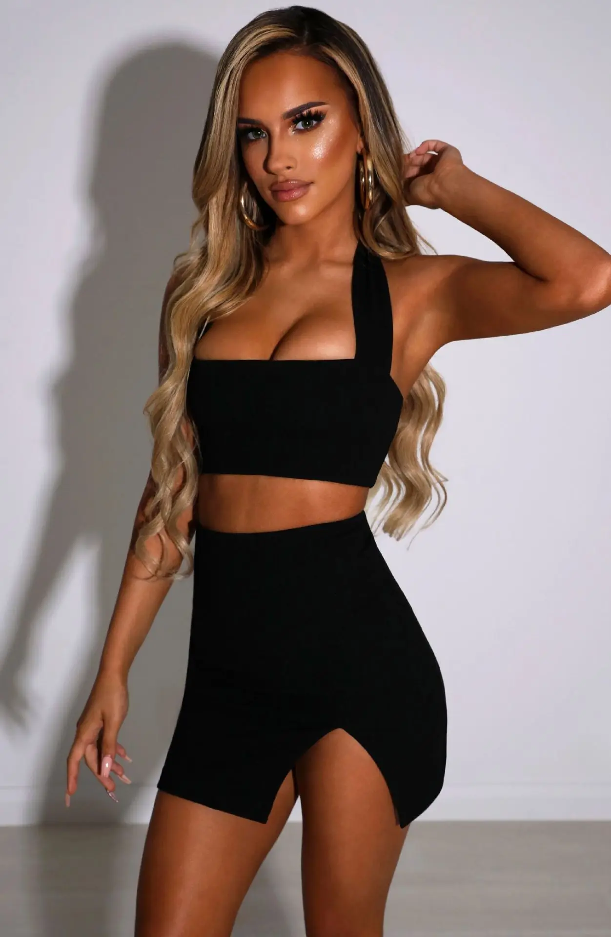 Sexy Crop Top Bodycon Mini Skirts Sets Women Sleeveless Halterneck 2 Two Piece Set Short Skirt Suits Outfits Party Dress Sets