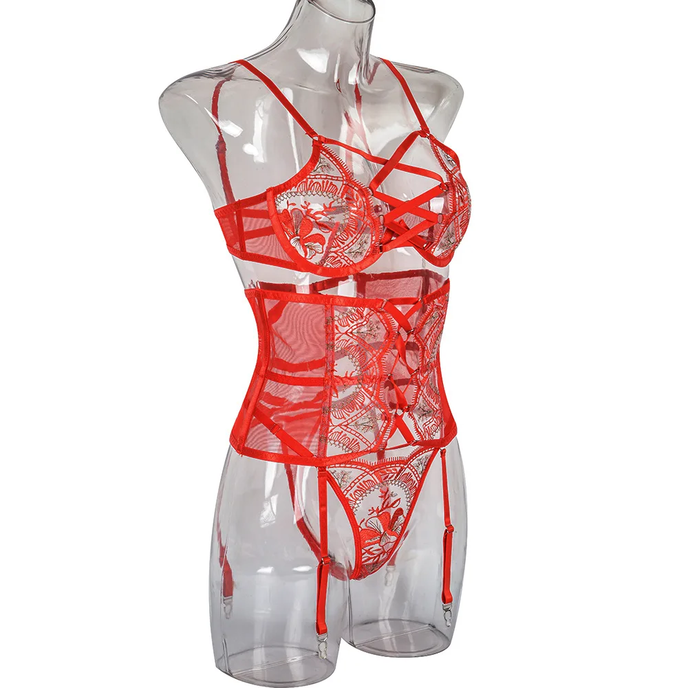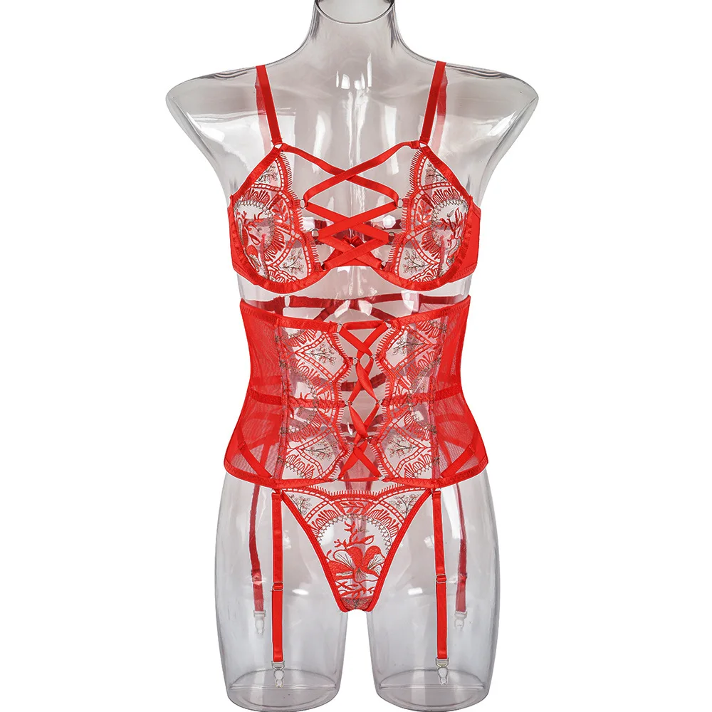 Sexy Embroidery Bandage Erotic Underwear Set Transparent Underwire Bra Lace Sensual Lingerie Hollow Out Costumes Exotic Sets