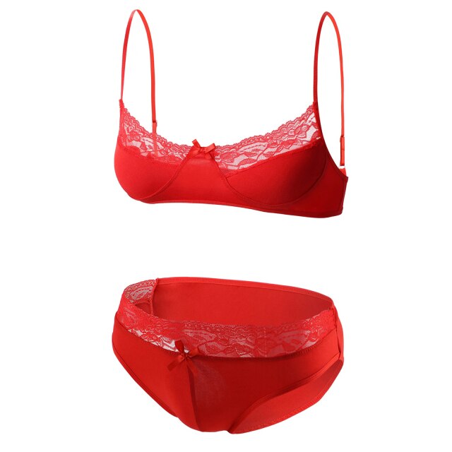 Men Two-piece Lace Trim Lingerie Set Sissy Underwear Bra with Low Waist Briefs.
