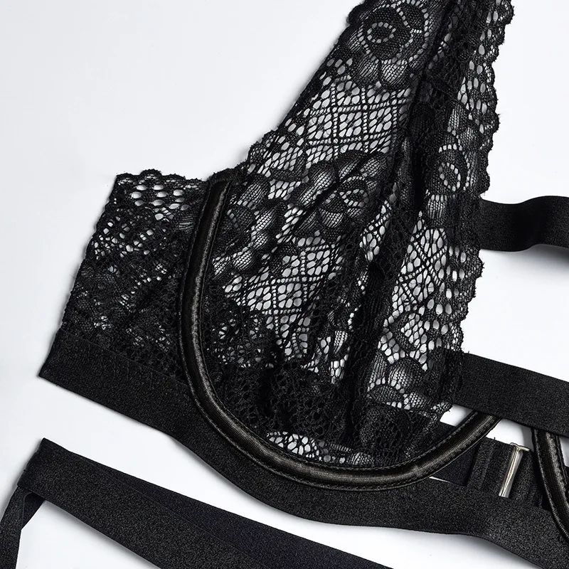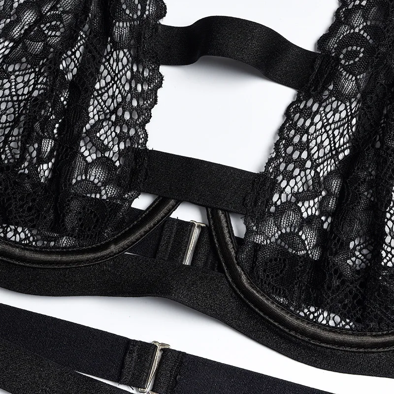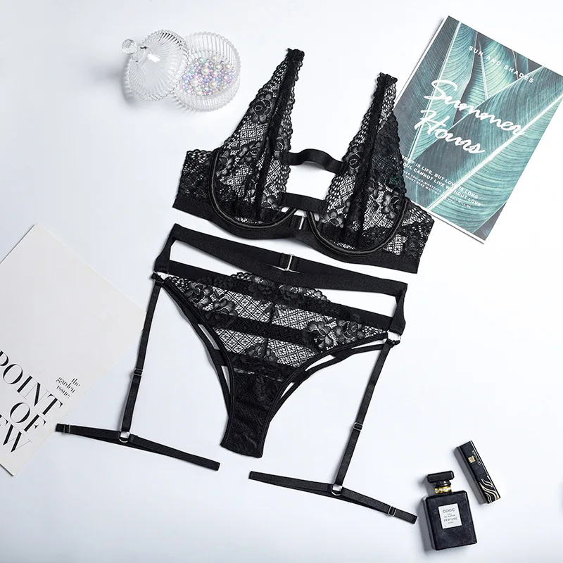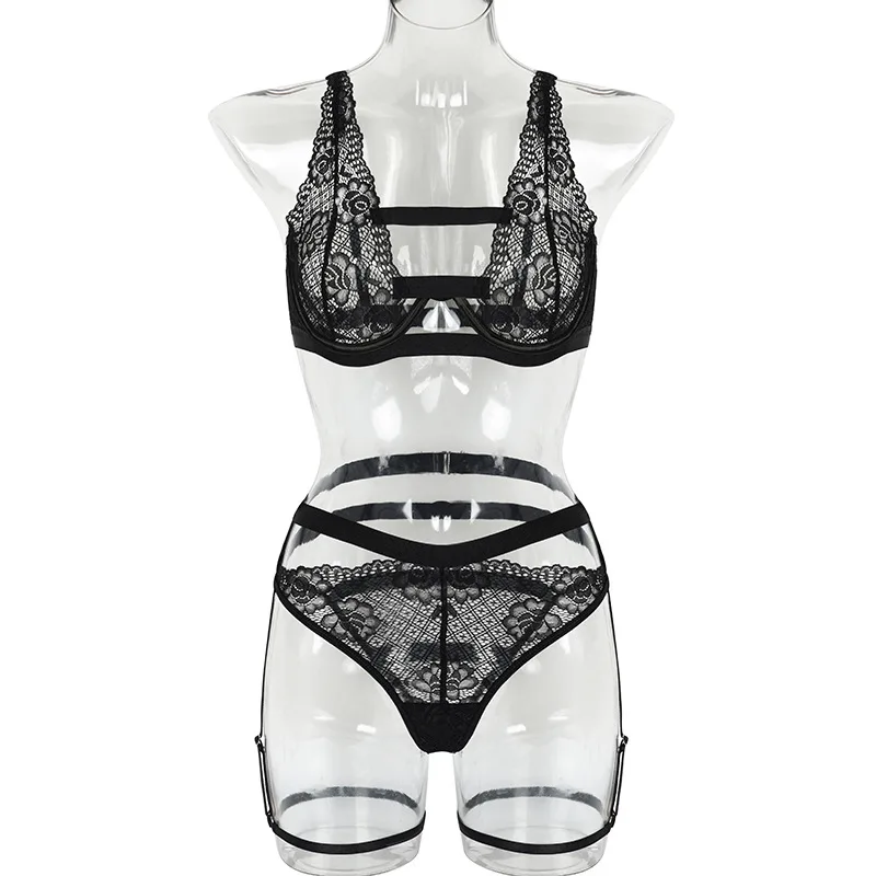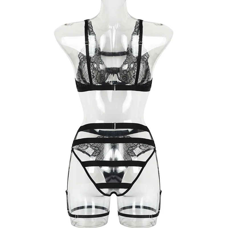 Sexy Lingerie Lace Erotic Sets Hollow Out Deep-V Bra G-Strings Thongs Exotic 2-Pieces Underwear Leg Straps Bondage Outfits