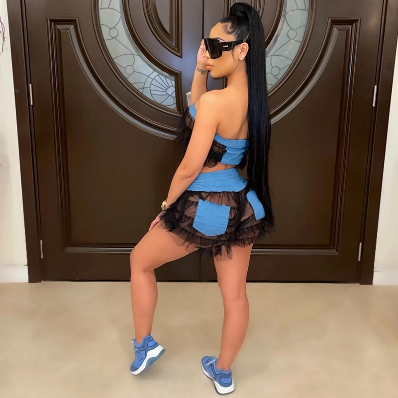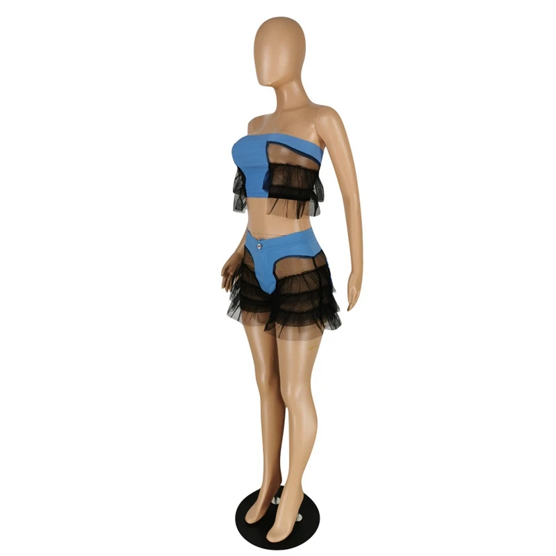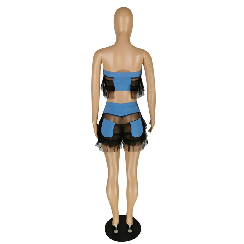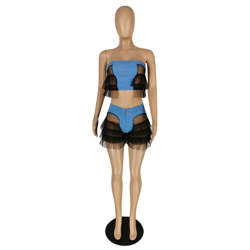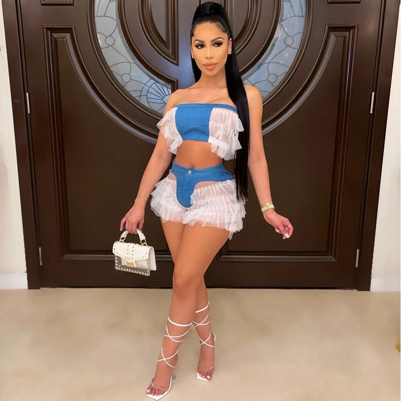 Sexy Ruffles Shorts and Crop Top Women Summer 2 Piece Sets Fashion Club Vacation Outfits Wholesale Items
