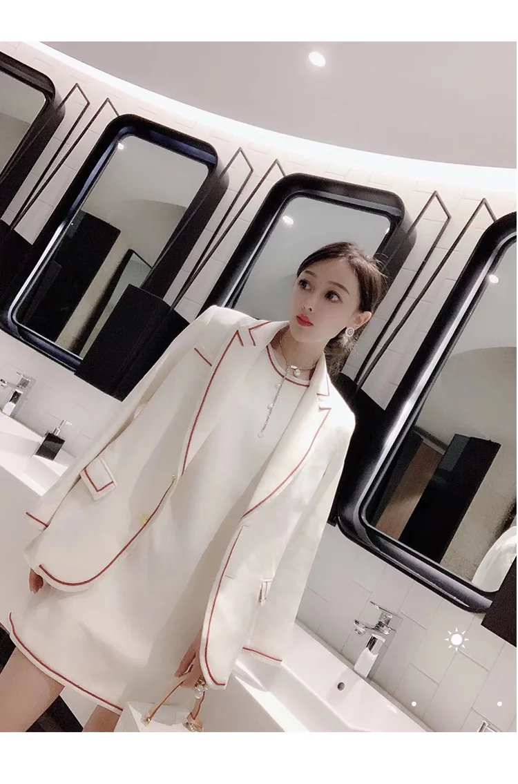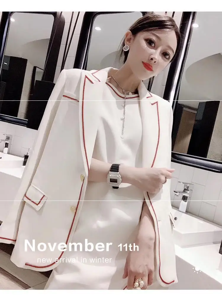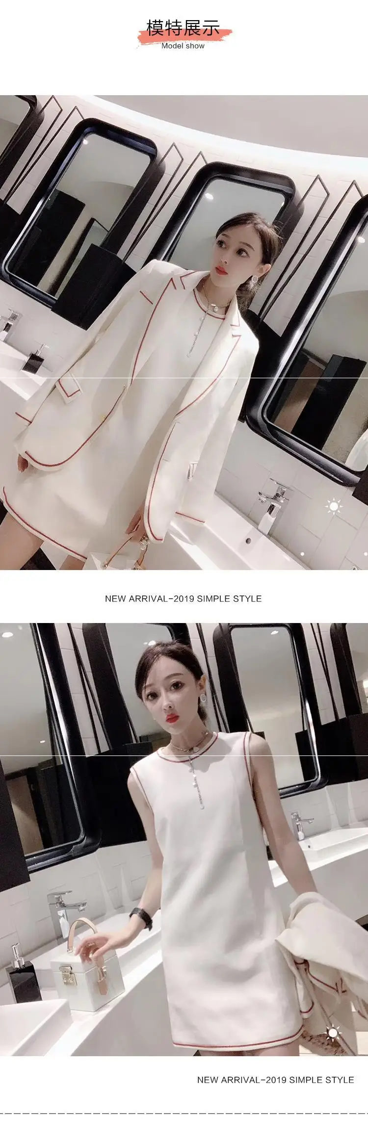 Spring And Autumn White Suits Women High Quality Blazer + Dress Two-Piece Sets Ladies Party OL