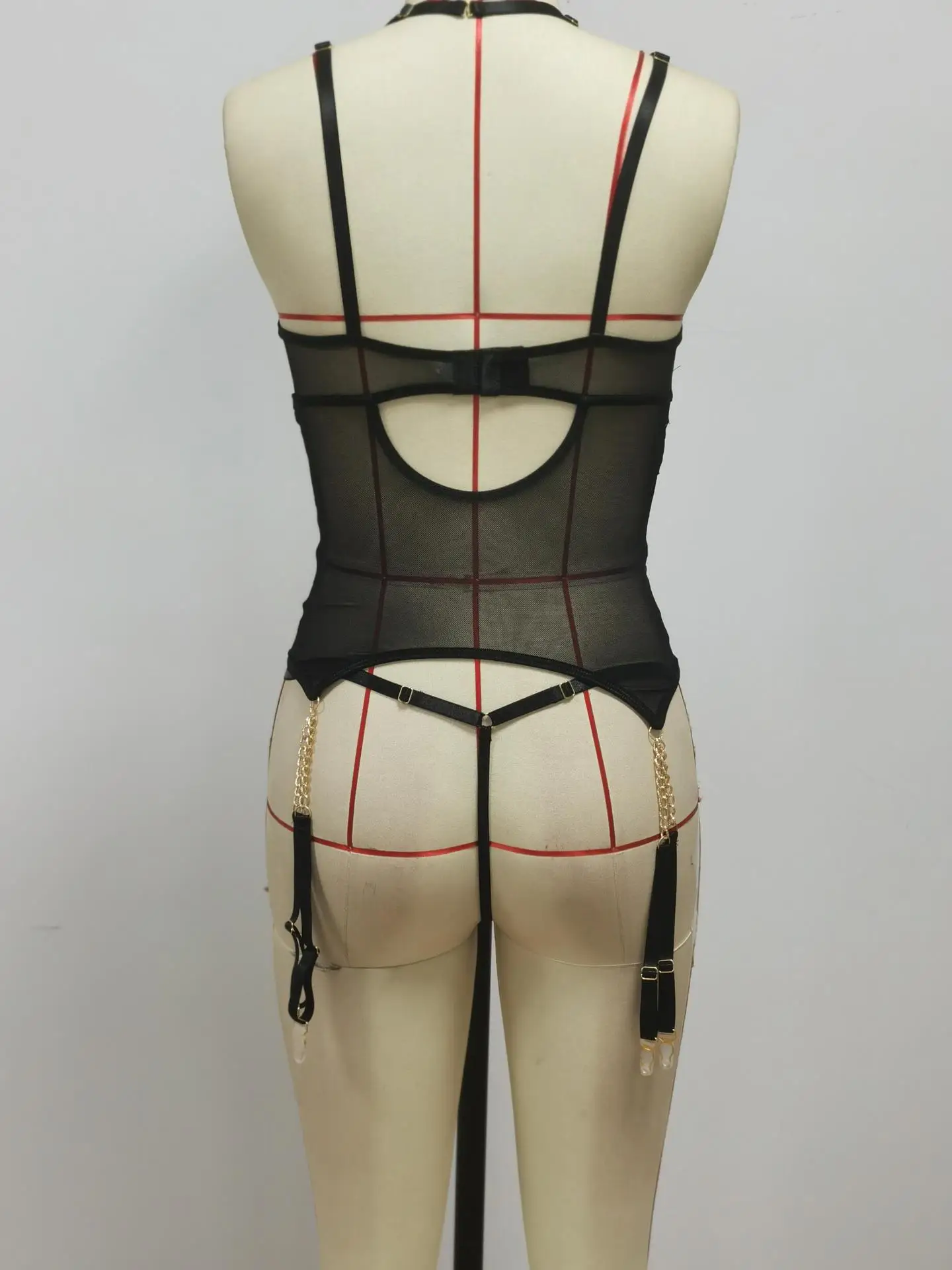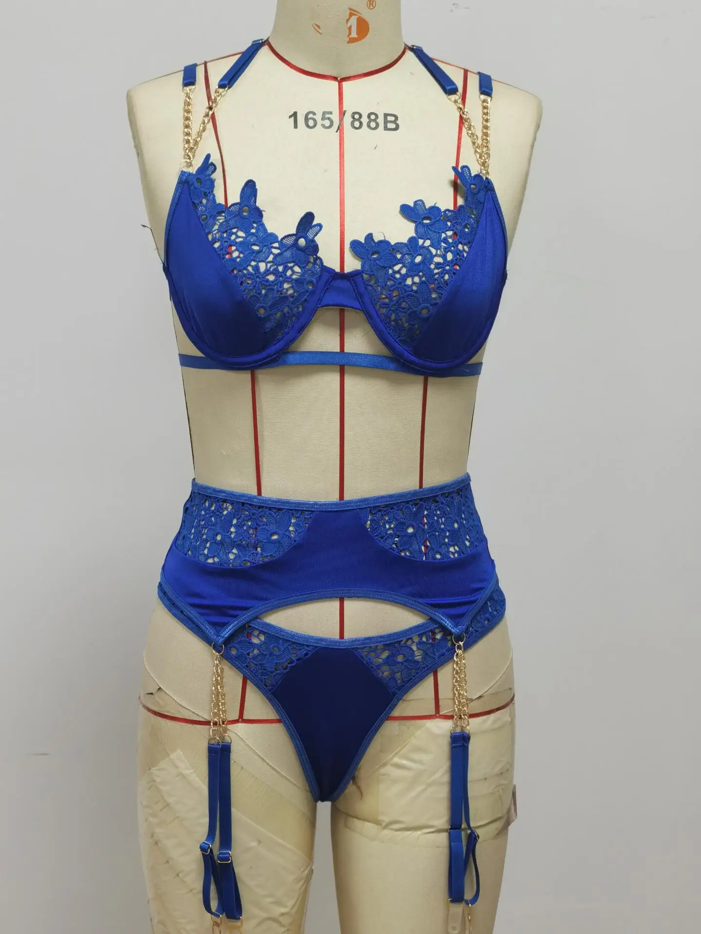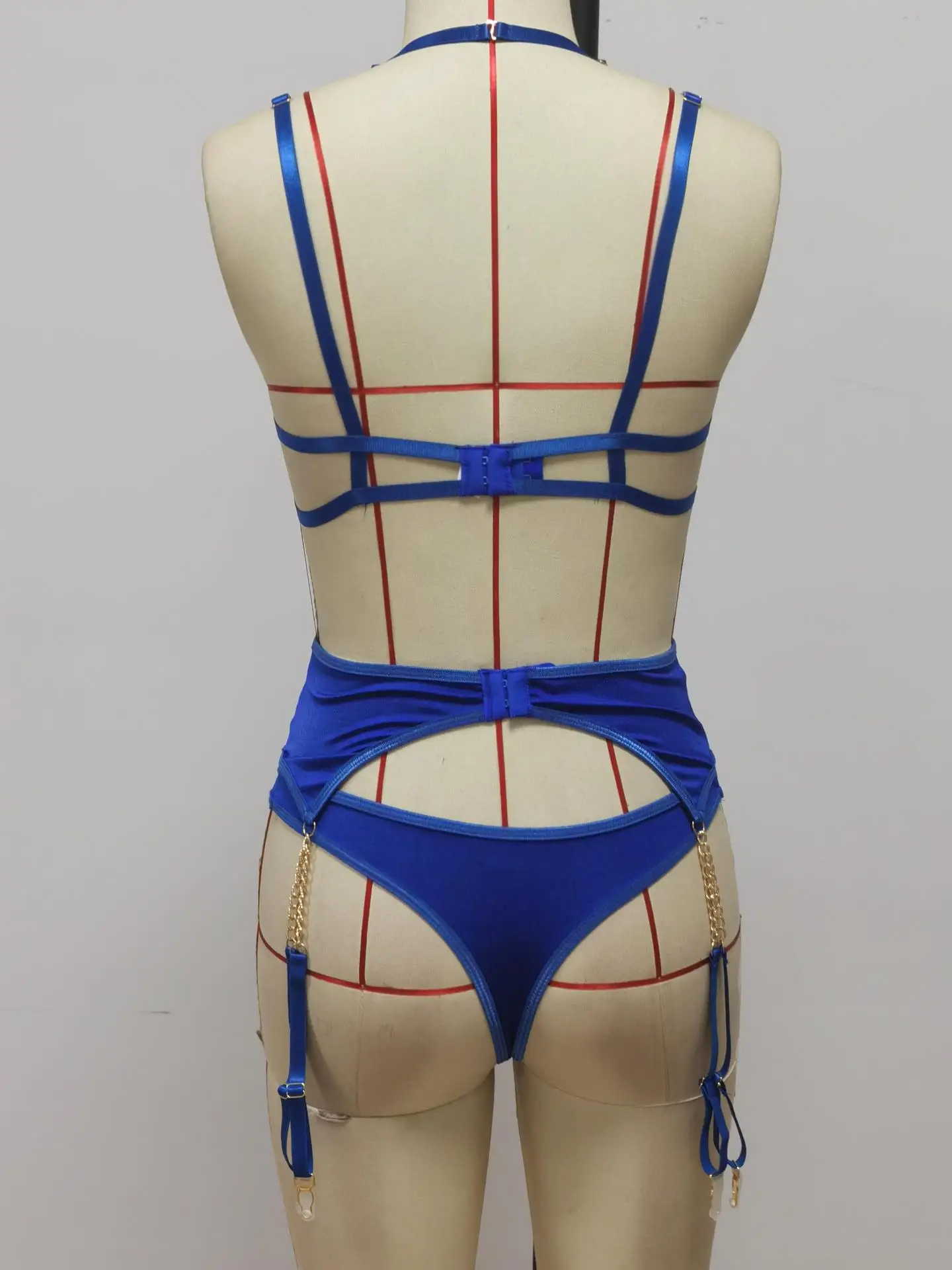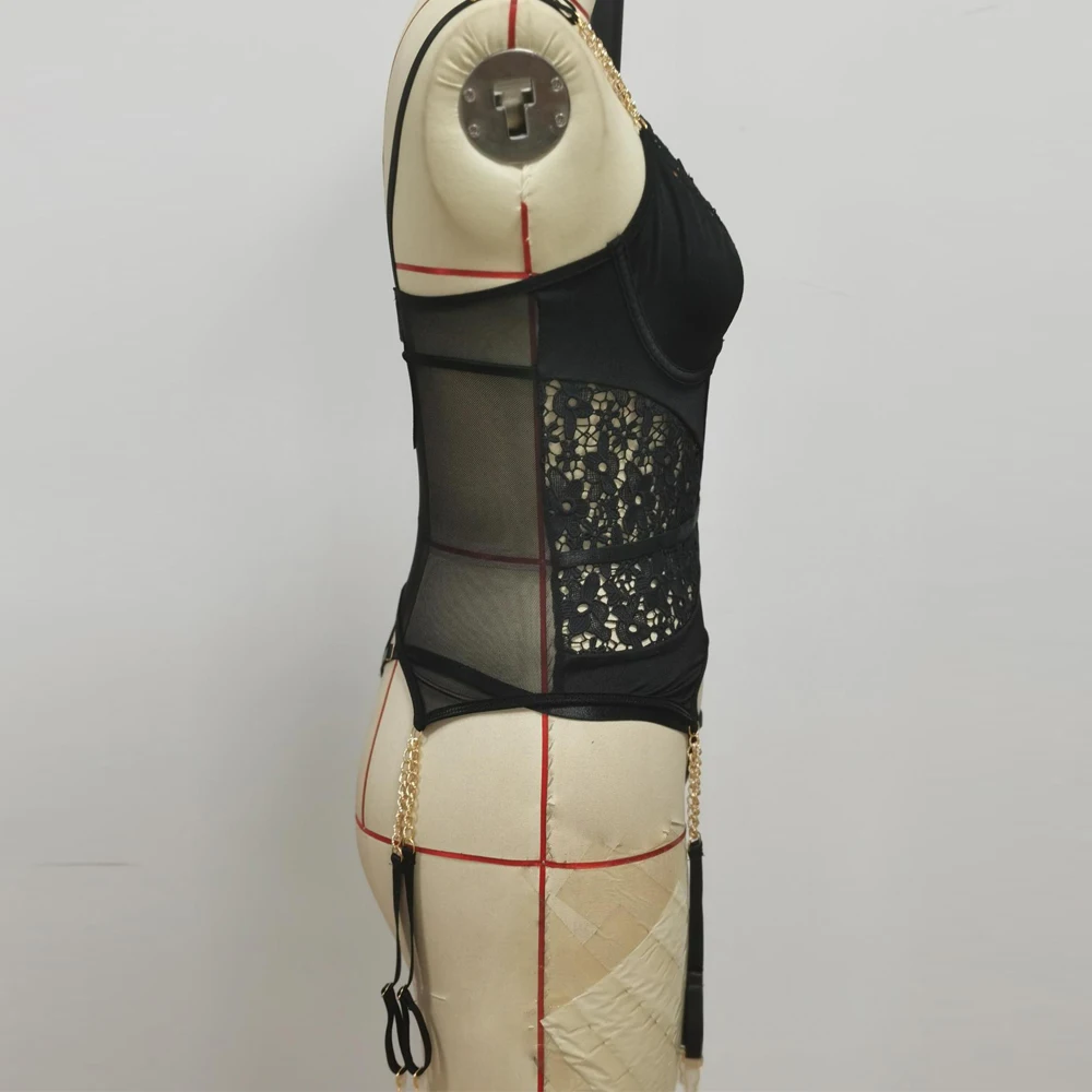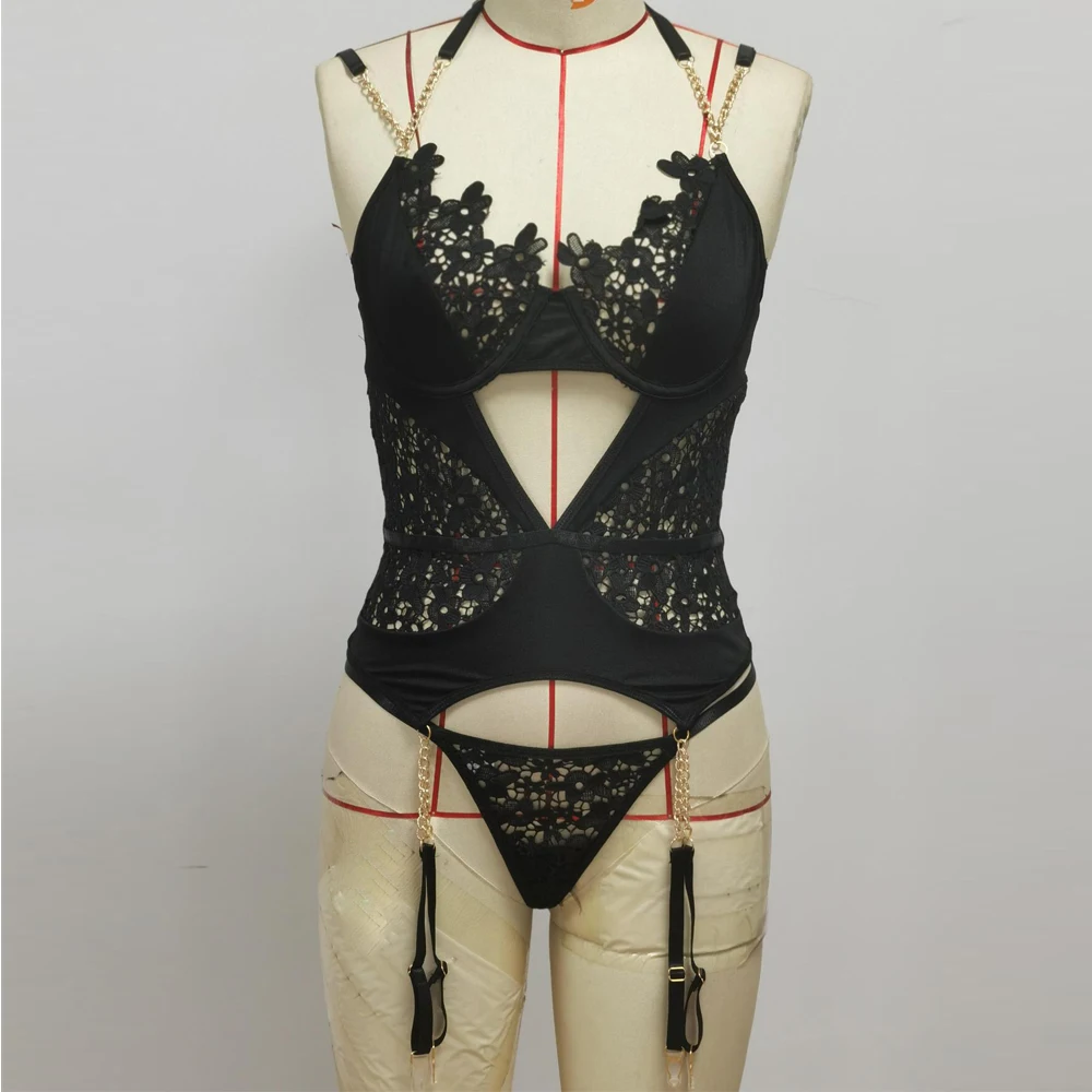 Women's Underwear Halter Sexy Lingerie Lace Bra with Chain Straps Garters Thongs Brief Sets Bondage Underwire Exotic Costumes