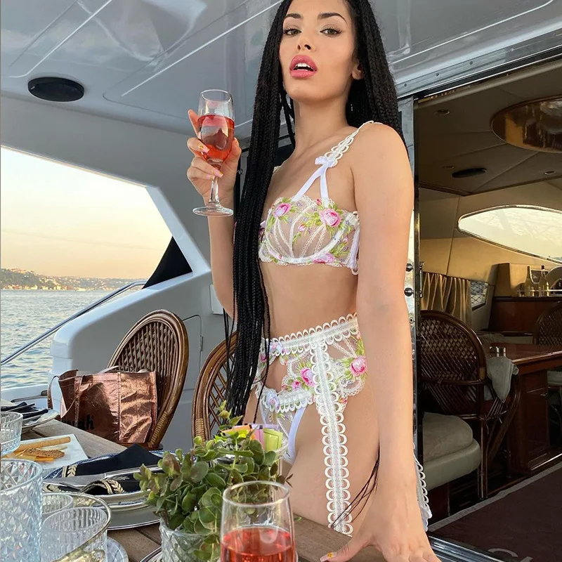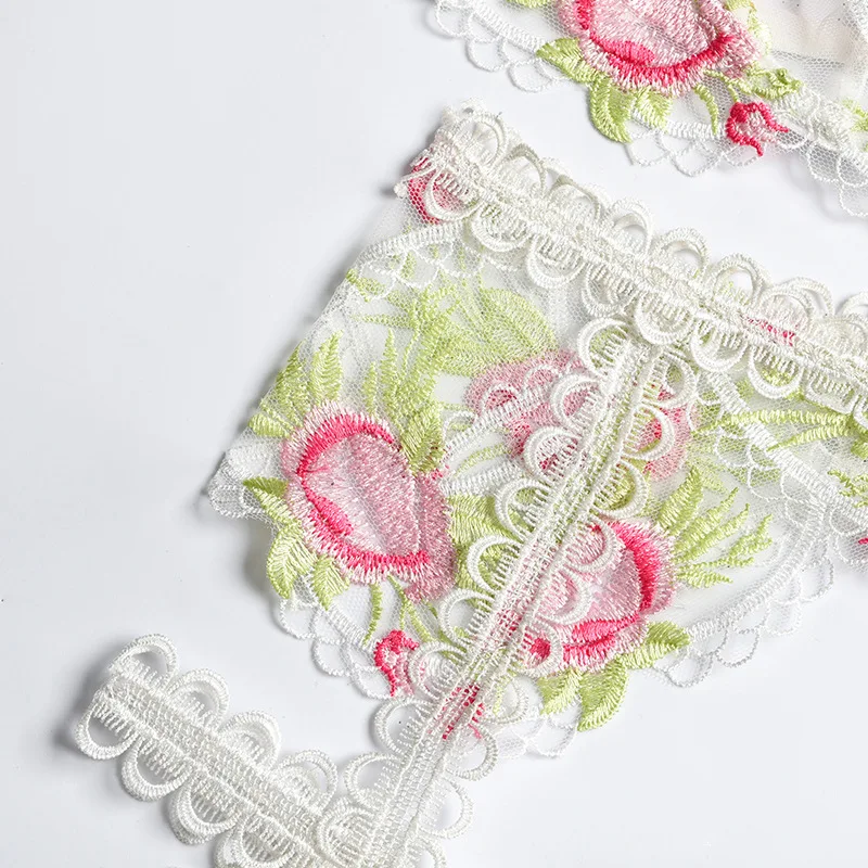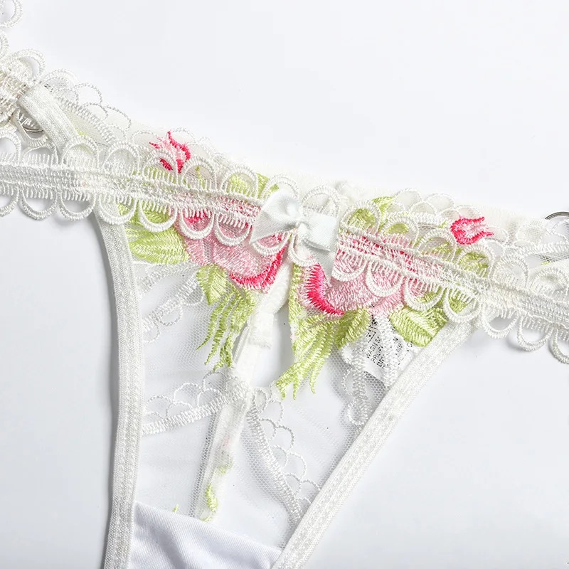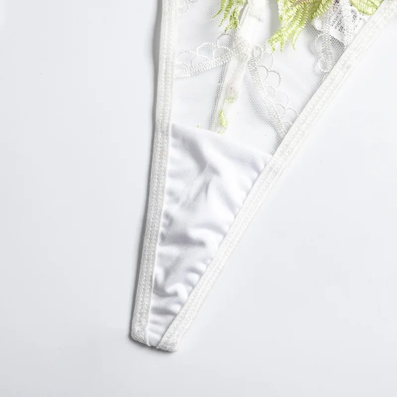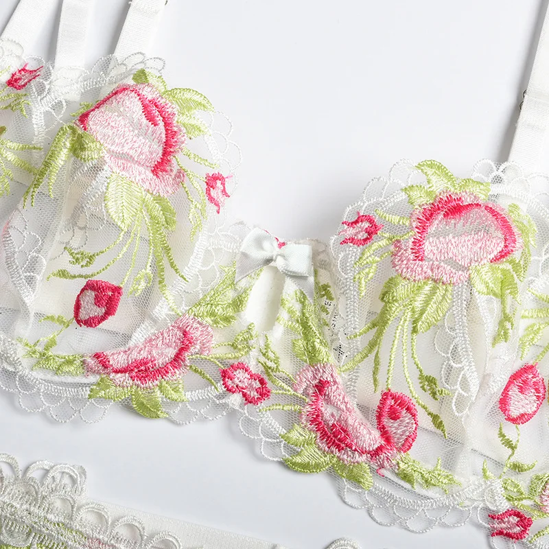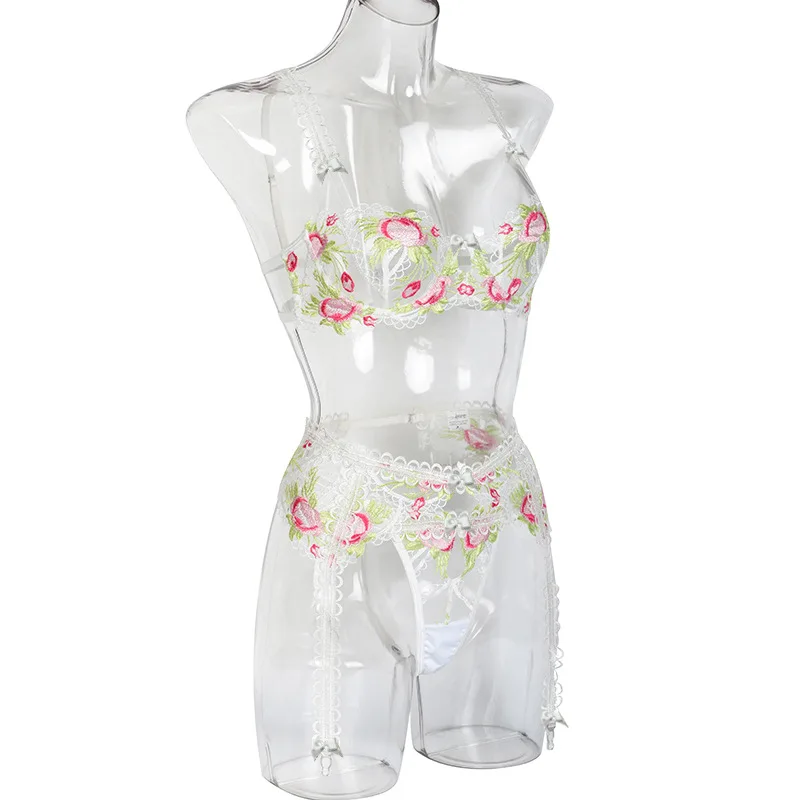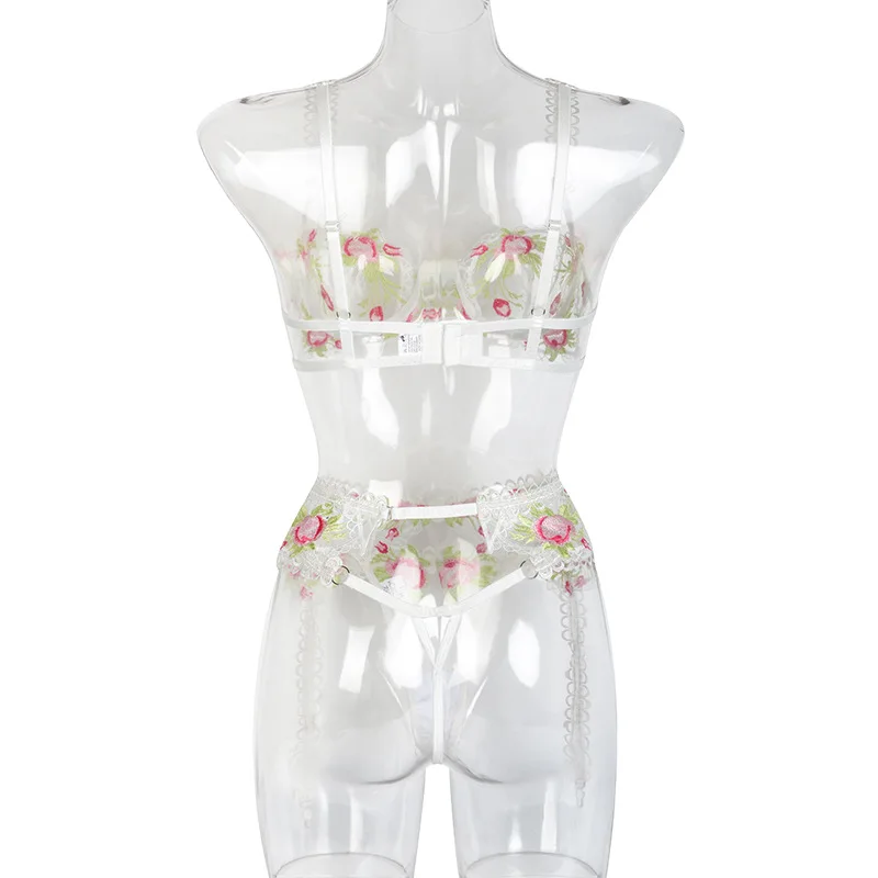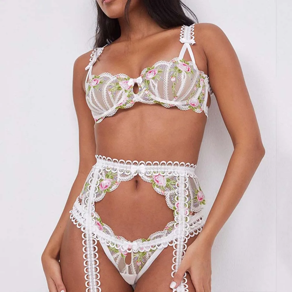 Women Lingerie Sexy Floral Embroidery Curvy Delicate Underwear 3-Pieces Exotic Sets Push Up Bra and Brief Sets Erotic Costumes