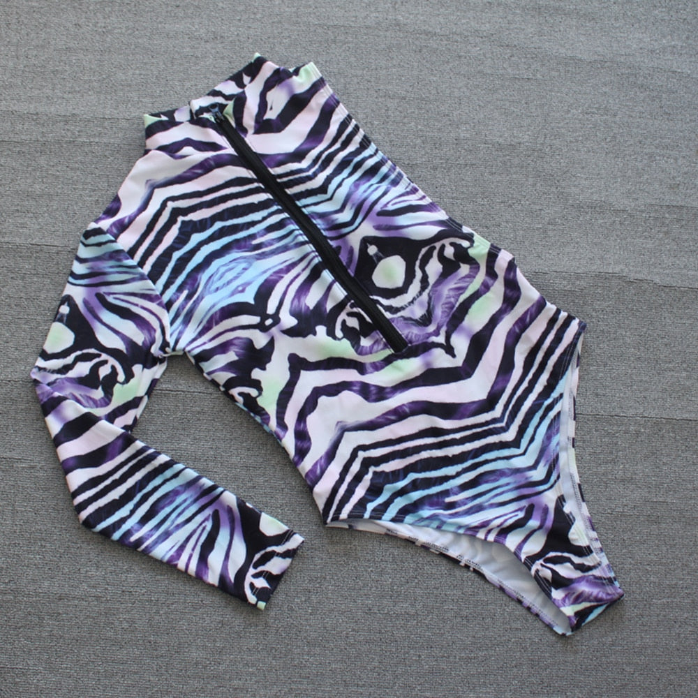 Women One Piece Swimsuit Long Sleeves Swimwear 2021 New Bodysuit Monokini Print Bathing Suits Summer Beach Wear Swimming Suit XL