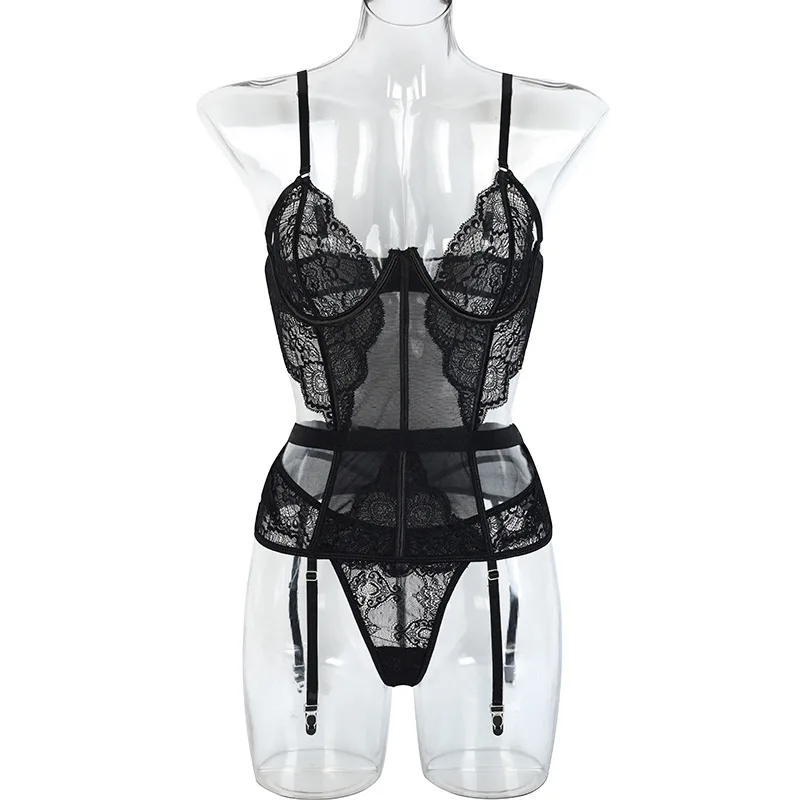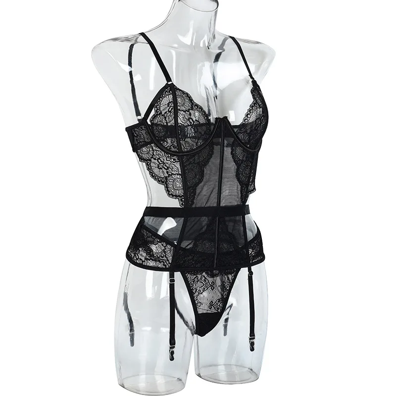 Women Sexy Lingerie Bondage Sets Mesh Underwear Push Up Bras Sex Panties Garters Temptation Porn Sensual Erotic Costumes Set