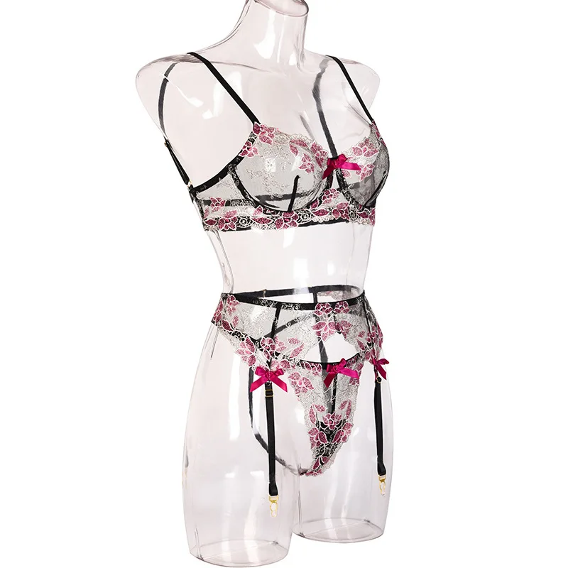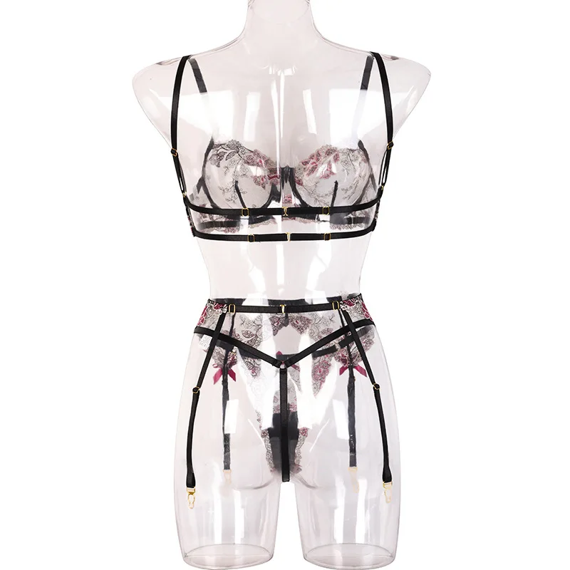 Women Sexy Lingerie Lace Bra Set Sexy Lingerie Exotic Costumes Underwear Perspective Bra with Garters Porn Erotic Lingerie Sets