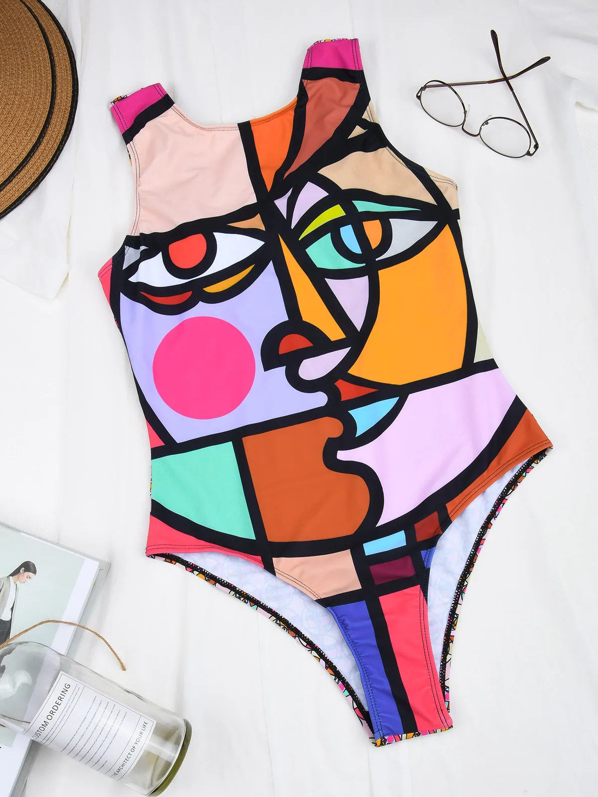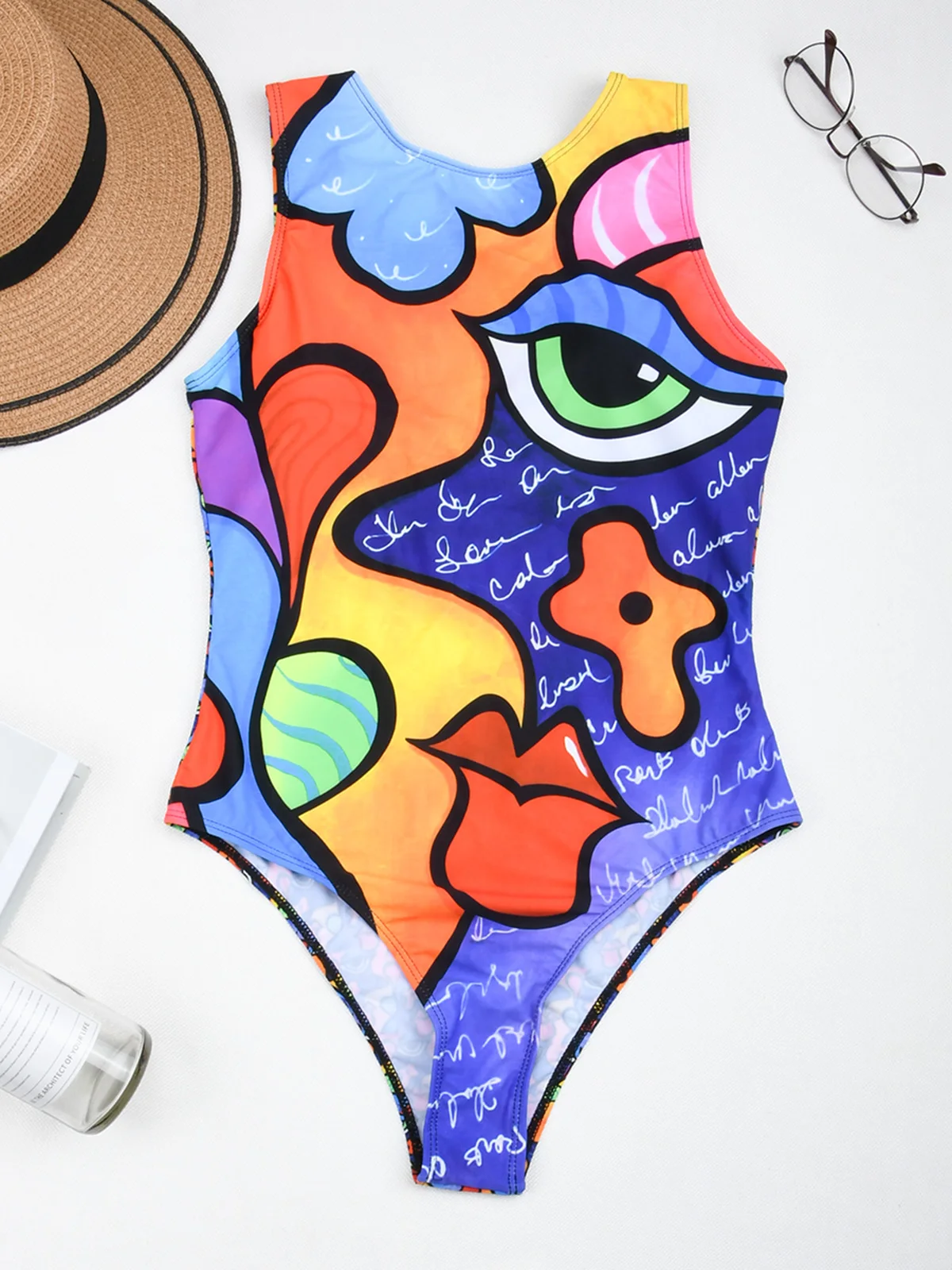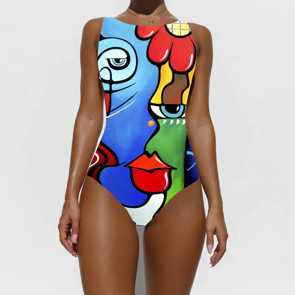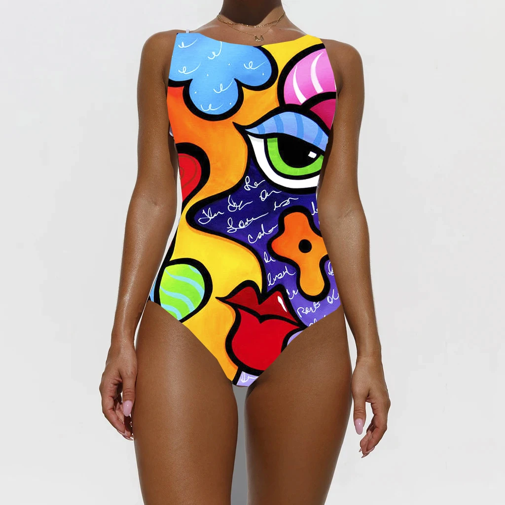Women Swimwear Pop Art One Piece Swimsuit Female Monokini Swimming Suits Bathing Suits Print Swimsuits For Women Swimwear Beach