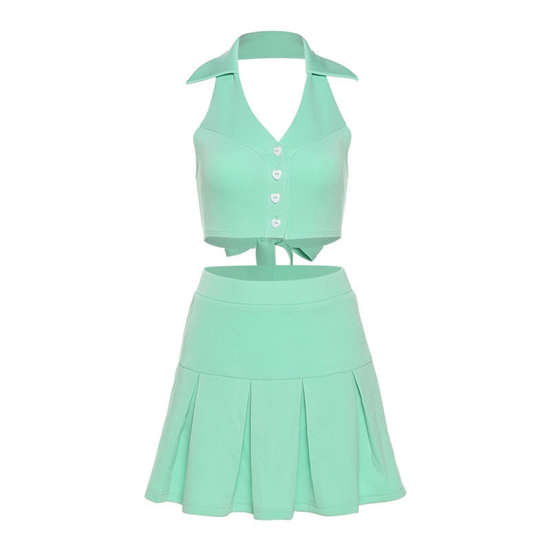Women Two Piece Outfits 2021 Sexy Crop Top and Pleated Skirt Set Green Outfits 2 Peice Set Women Matching Sets 2 Piece Skirt Set