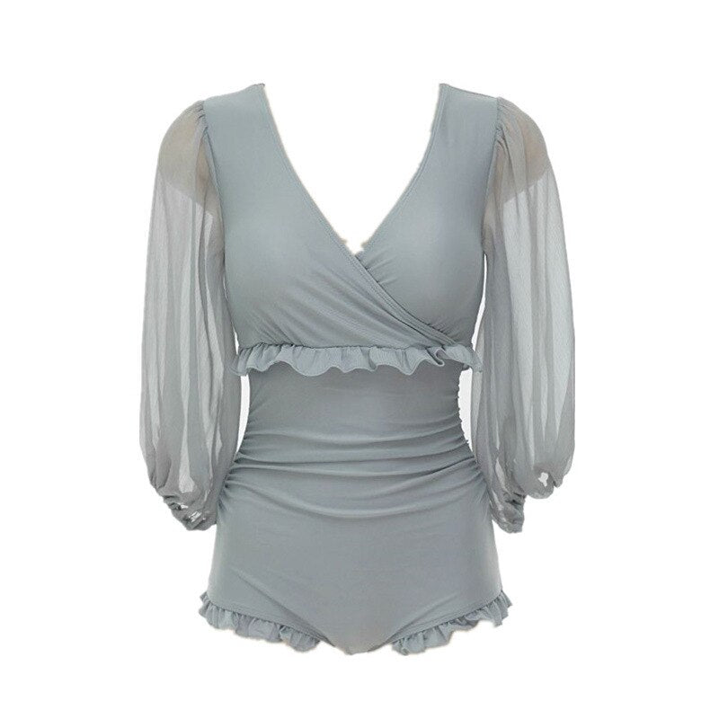 Women's Swimwear One-Piece Swimsuit Women Piece Swimsuits Swim Rashguard Female Covering Chiffon Long Sleeve Solid Swimming Suit