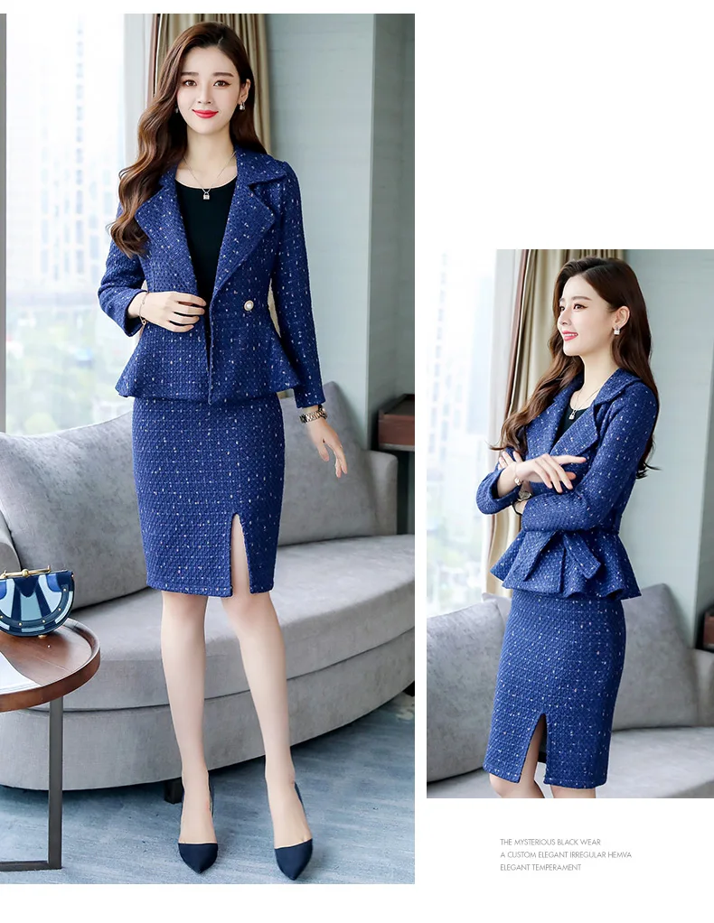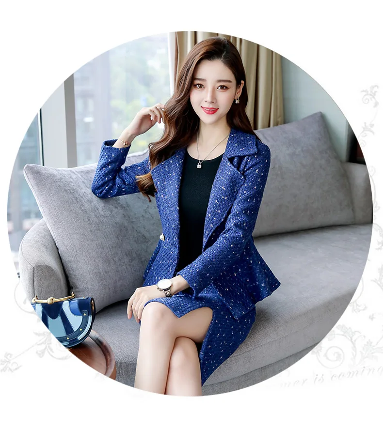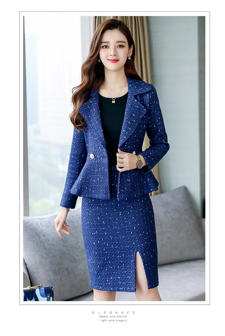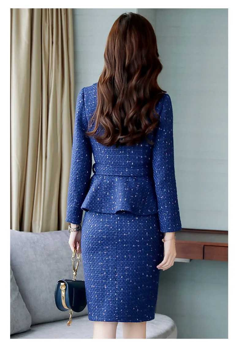 Women's Woolen Suit Winter New Style Suit Jacket + Skirt Suit Two-piece Suit Blue White Female Woolen Sets