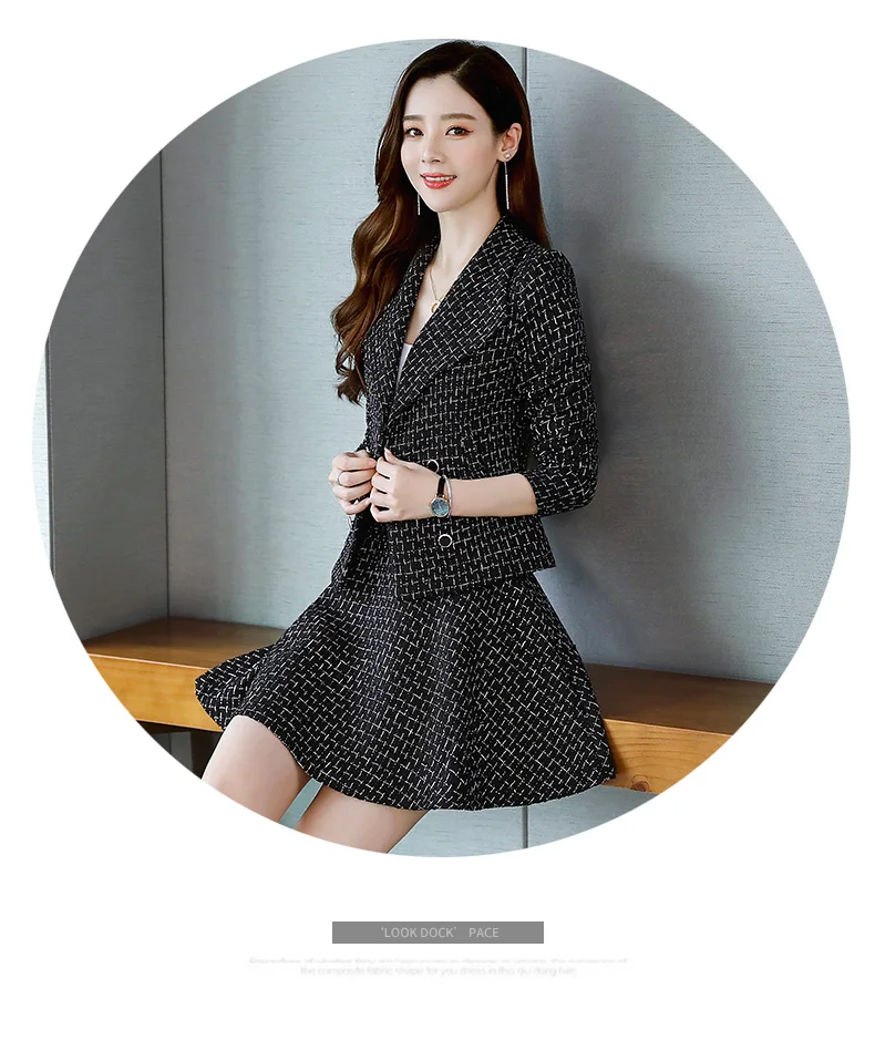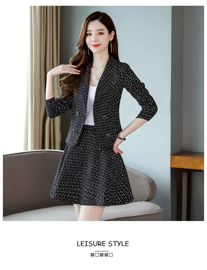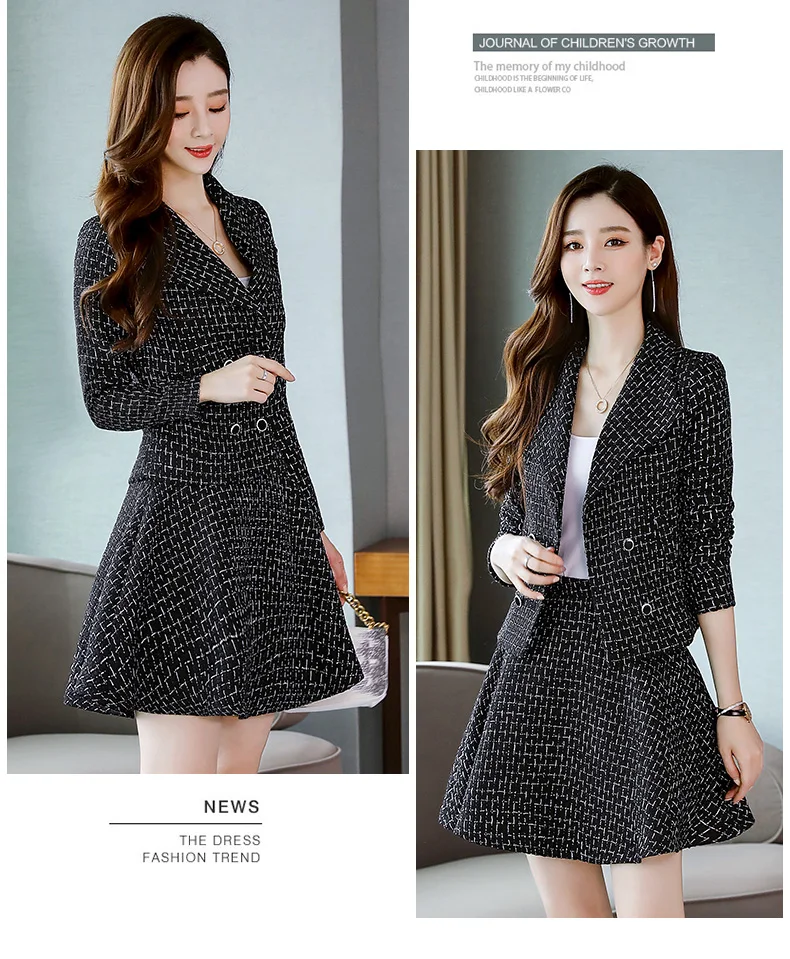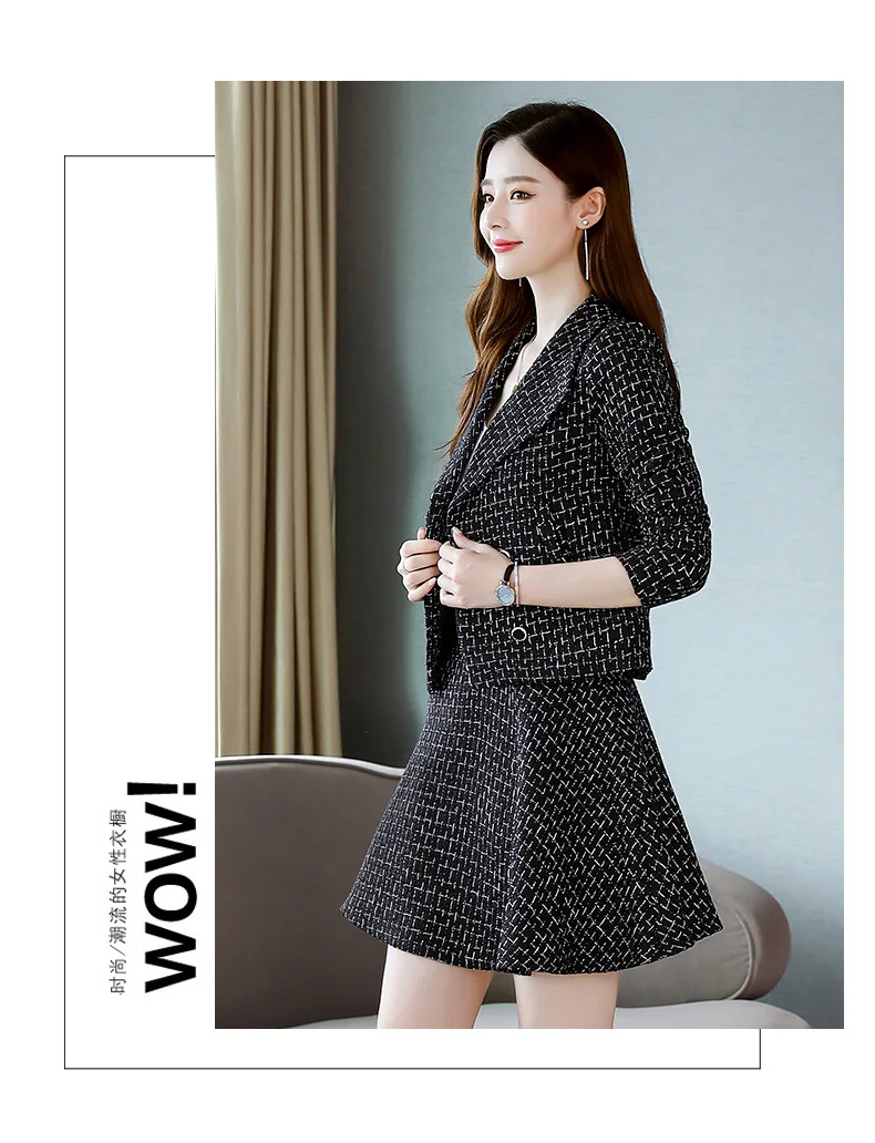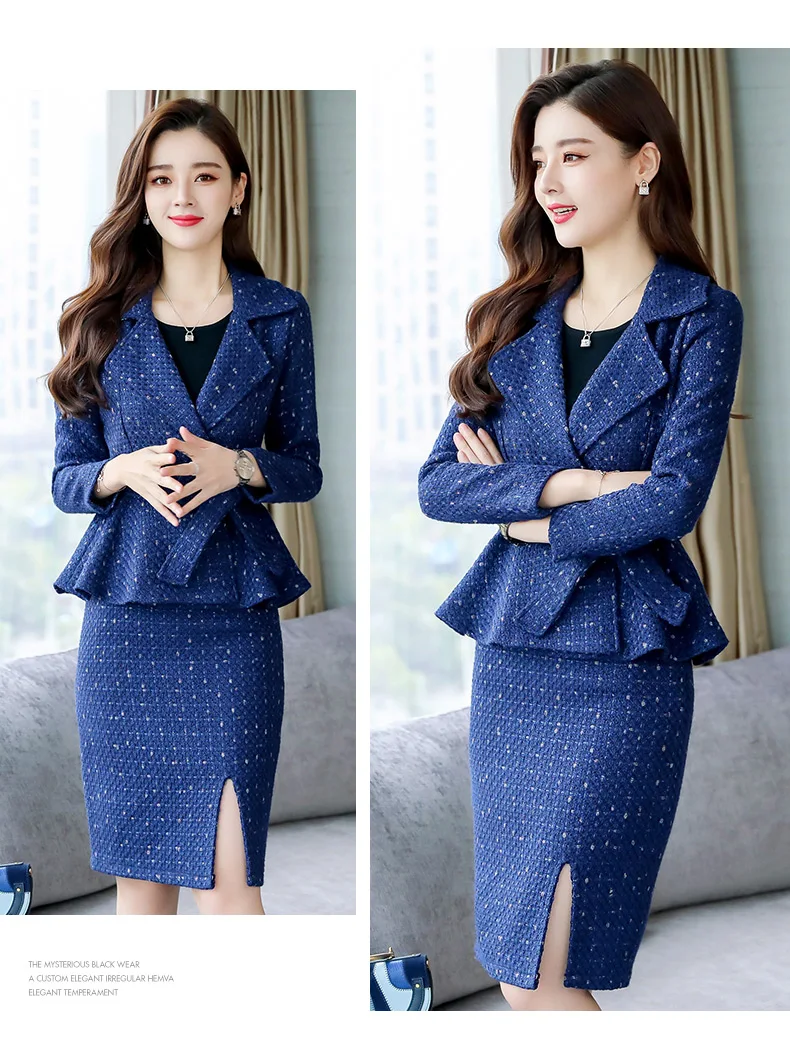 Women's Woolen Suit Winter New Style Suit Jacket + Skirt Suit Two-piece Suit Blue White Female Woolen Sets