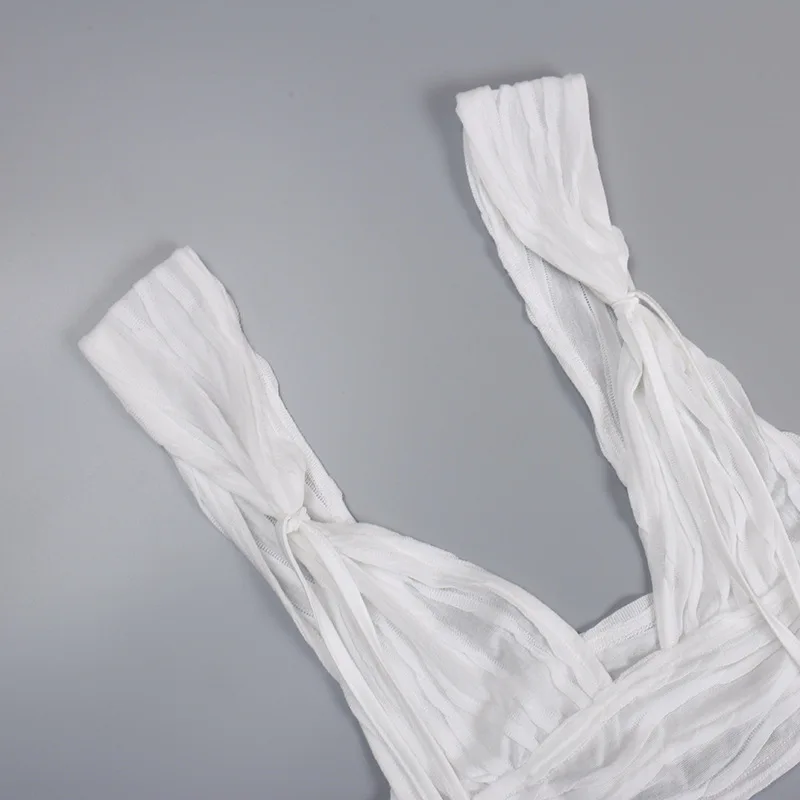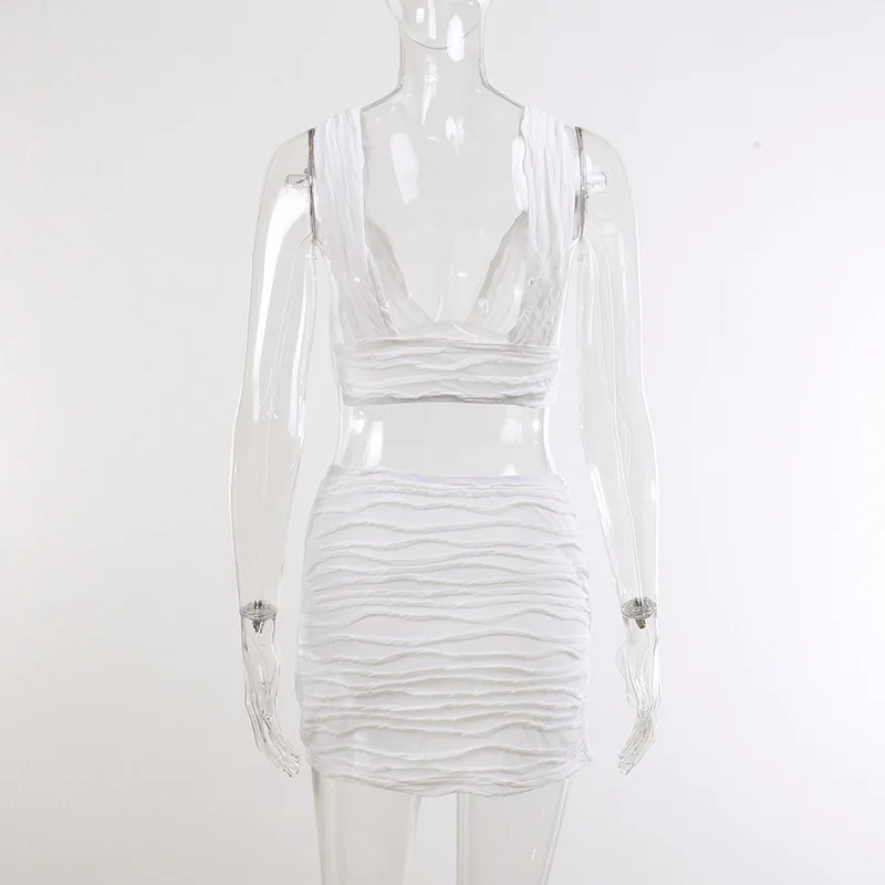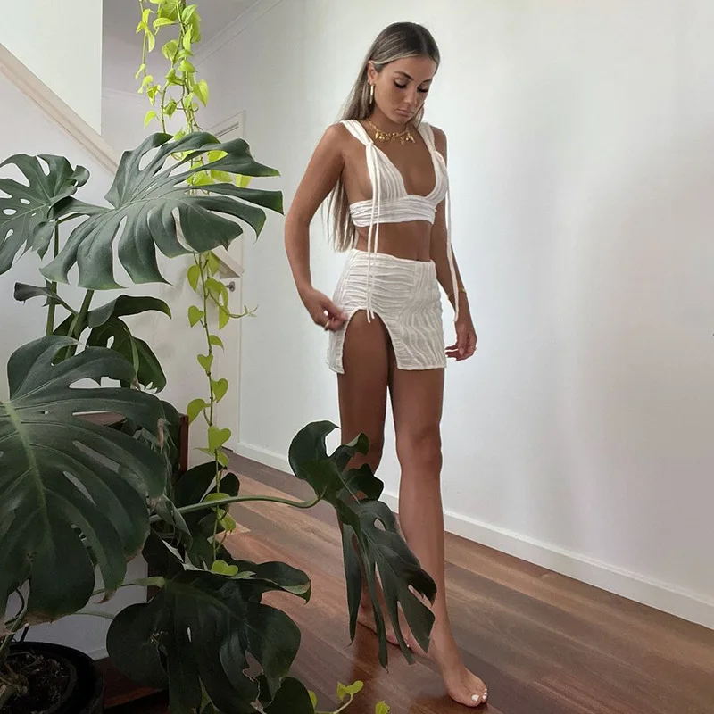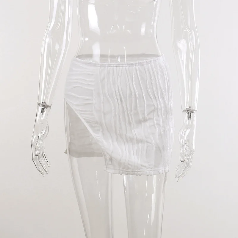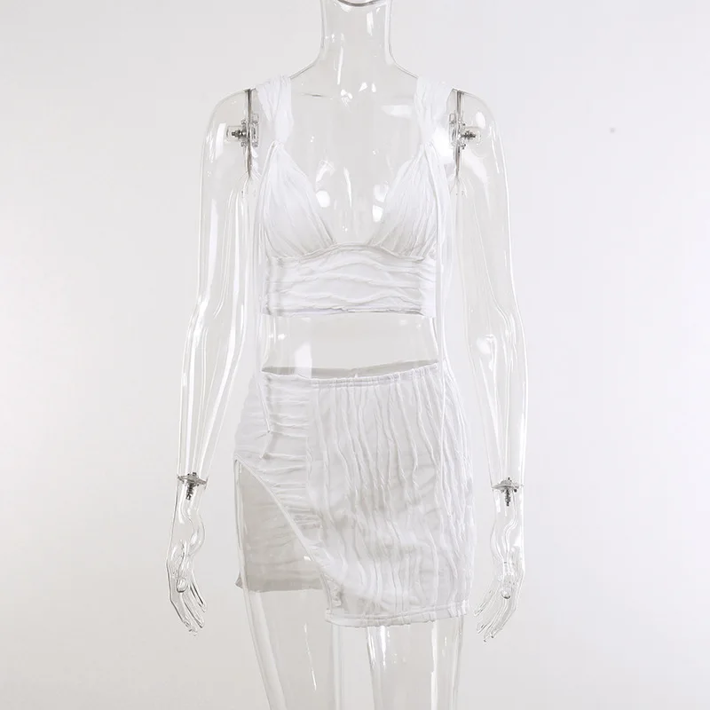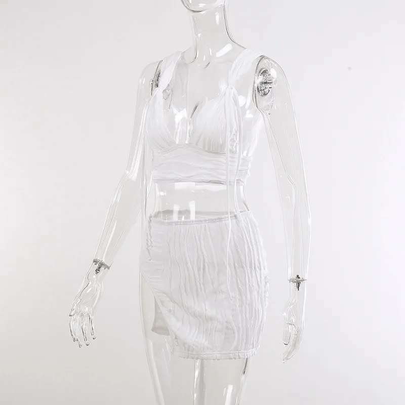 Y2K 2022 Fashion Summer White Stripe Sexy Mini Dress Two-Piece Suit Vest And Split Skirts Sets For Women‘s Clothes Party Cotton