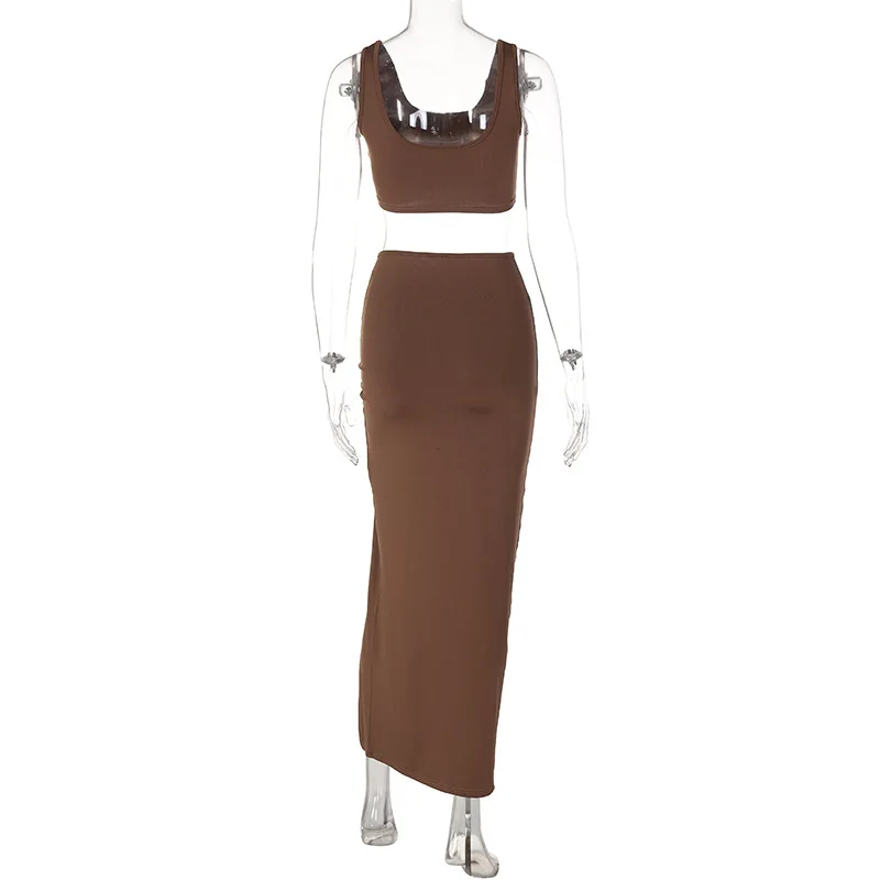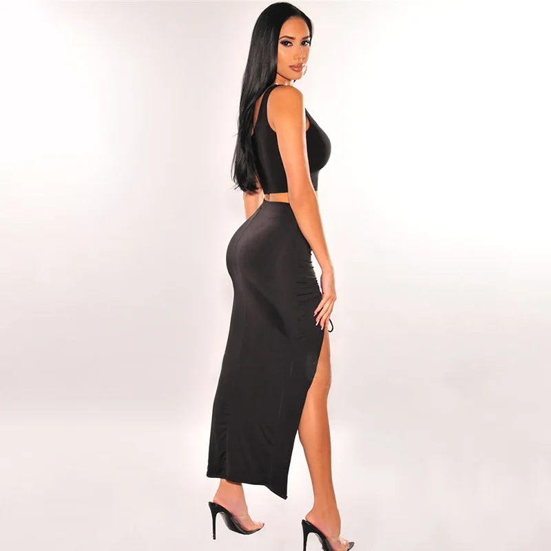 Y2K 2022 For Summer New Women's Clothes Sexy Black Maxi Skirt Two-Piece Suit Top And Split Skirts Sets For Party Bodycon Dress
