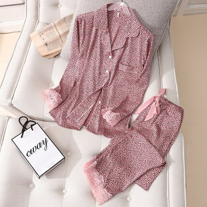 • 2022 New Arrival Women 2pcs Pajamas Sets Ladies Pyjamas Ice Silk Soft Leopard Print Long Sleeve Sleepwear