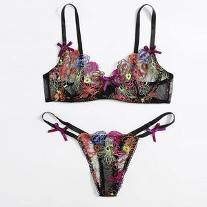 New Sensual Lingerie Embroidery Women Floral Underwear Bra Brief Sets Transparent Women's Underwear Lingerie Set Exotic Costumes
