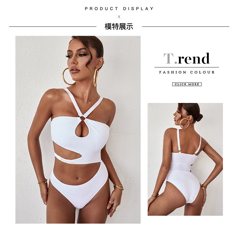 2022 Summer New Sexy One-piece Swimsuit Women Hollow Out Halter Belt White Bathing Suit Youth Girls Fashion Swimwear Monokini