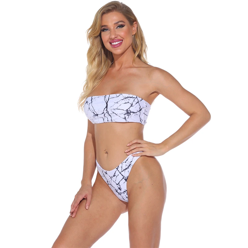 Bikini Set Swimsuit Bandeau Beachwear One Word Collar Strapless Swimsuit Sports High Waist