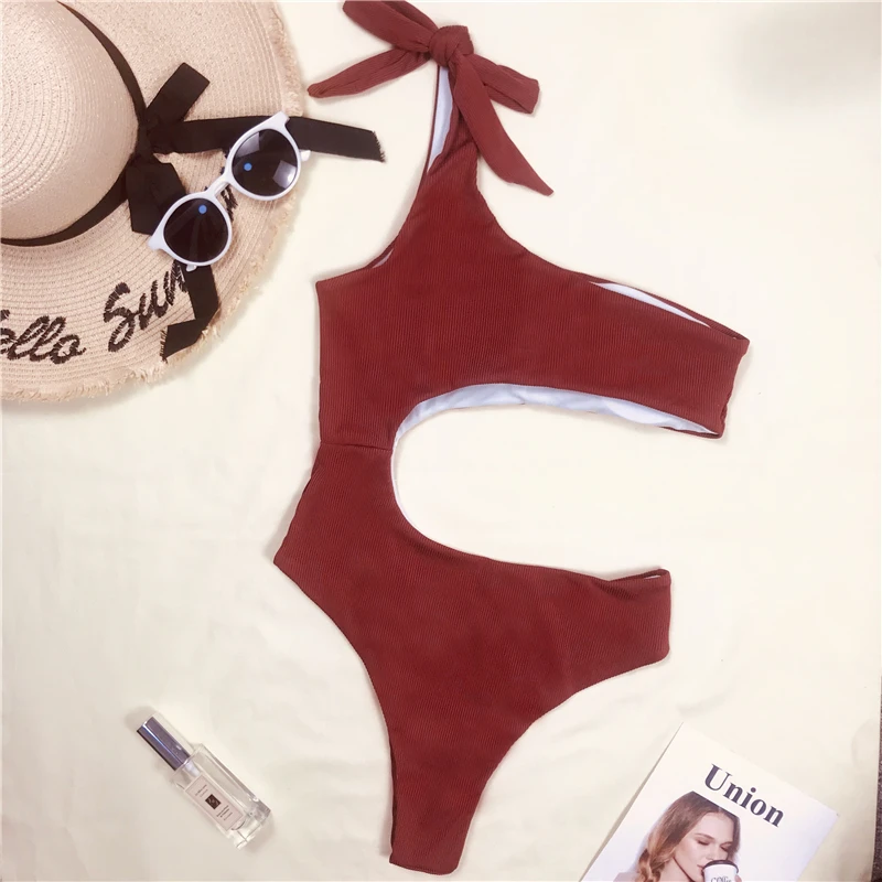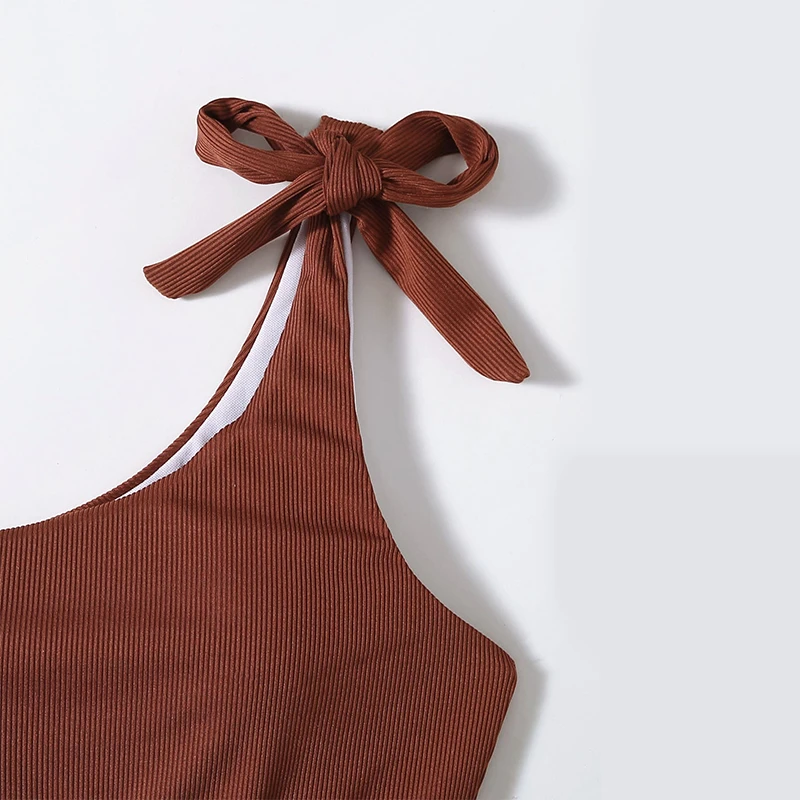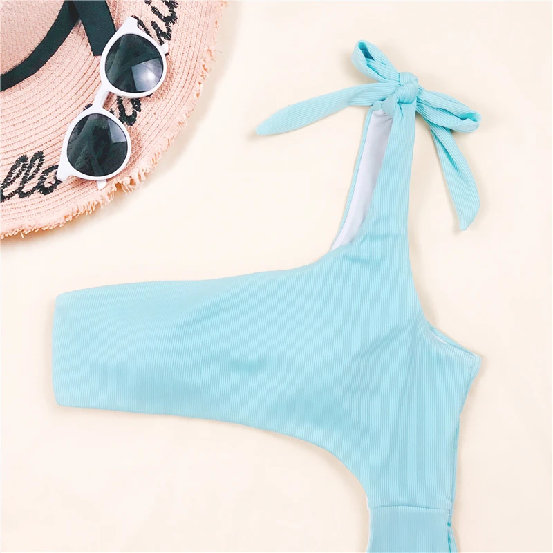 Closed Swimsuit Bikini 2021 Pure Strapless Suit Shoulder Sling Color Without Pattern Solid Color