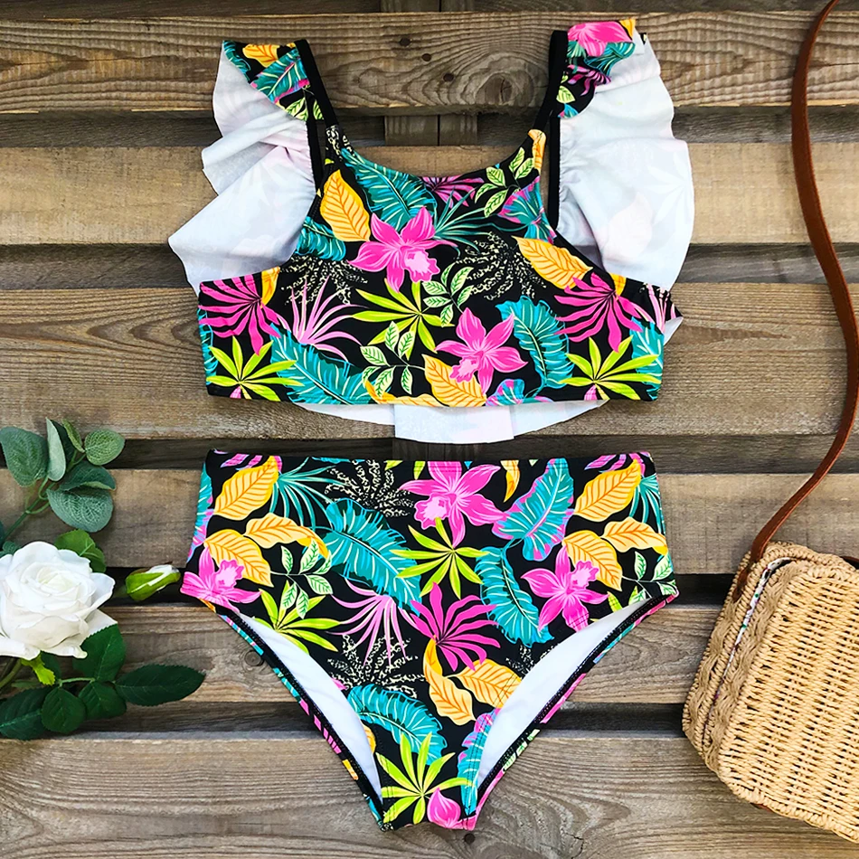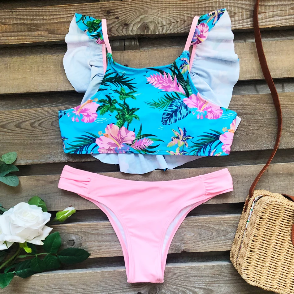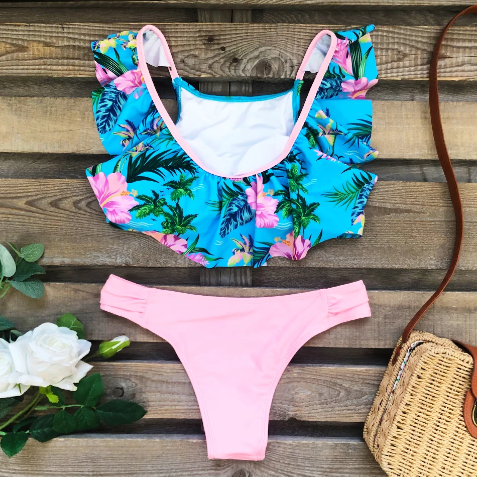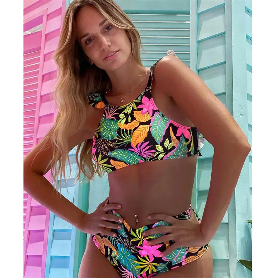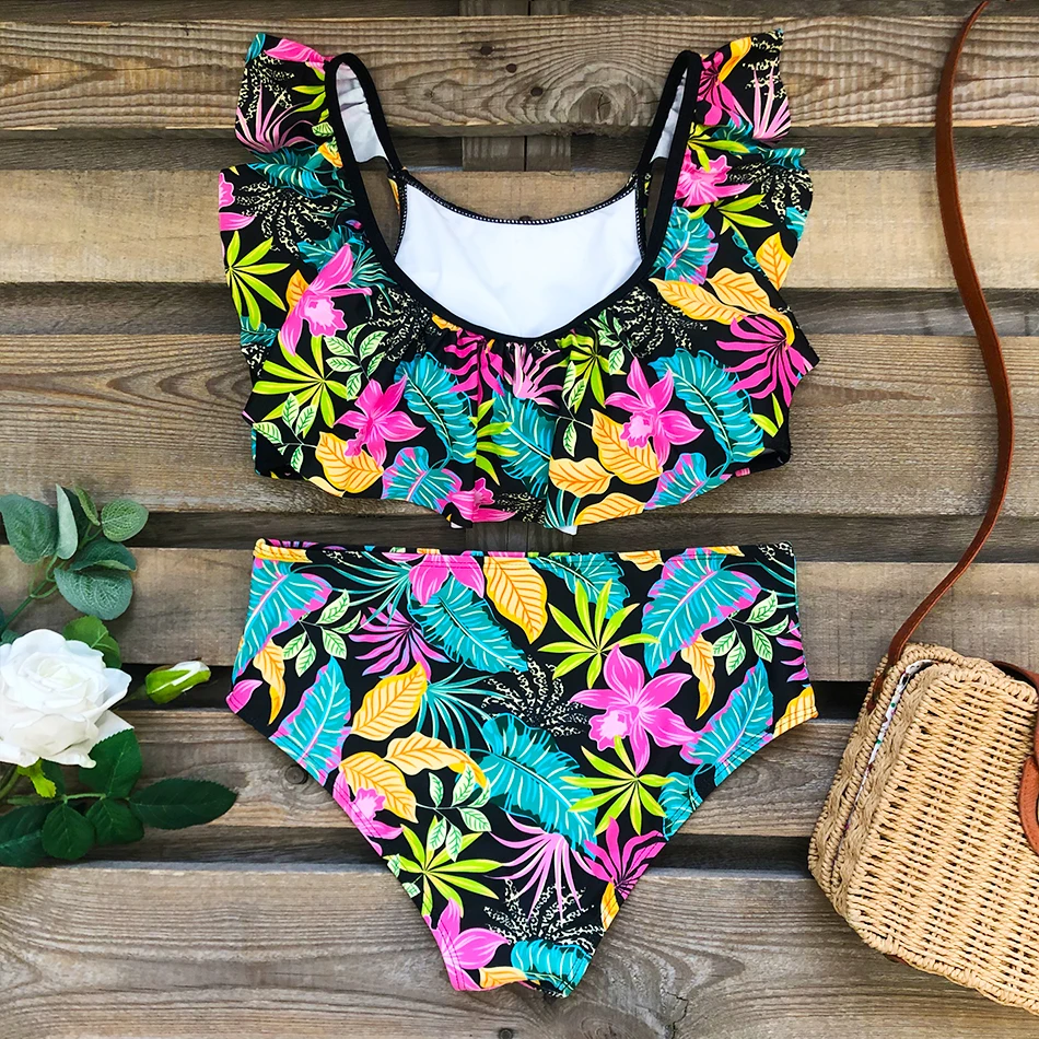 High Waist Bikinis Ruffle Bikini set Women's Swimsuit Push up Floral Two Piece Swimwear Bandeau Bikini Folk Style Natinal style