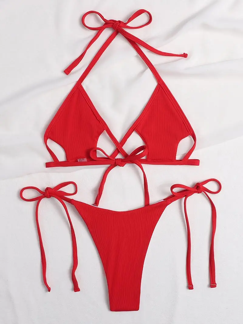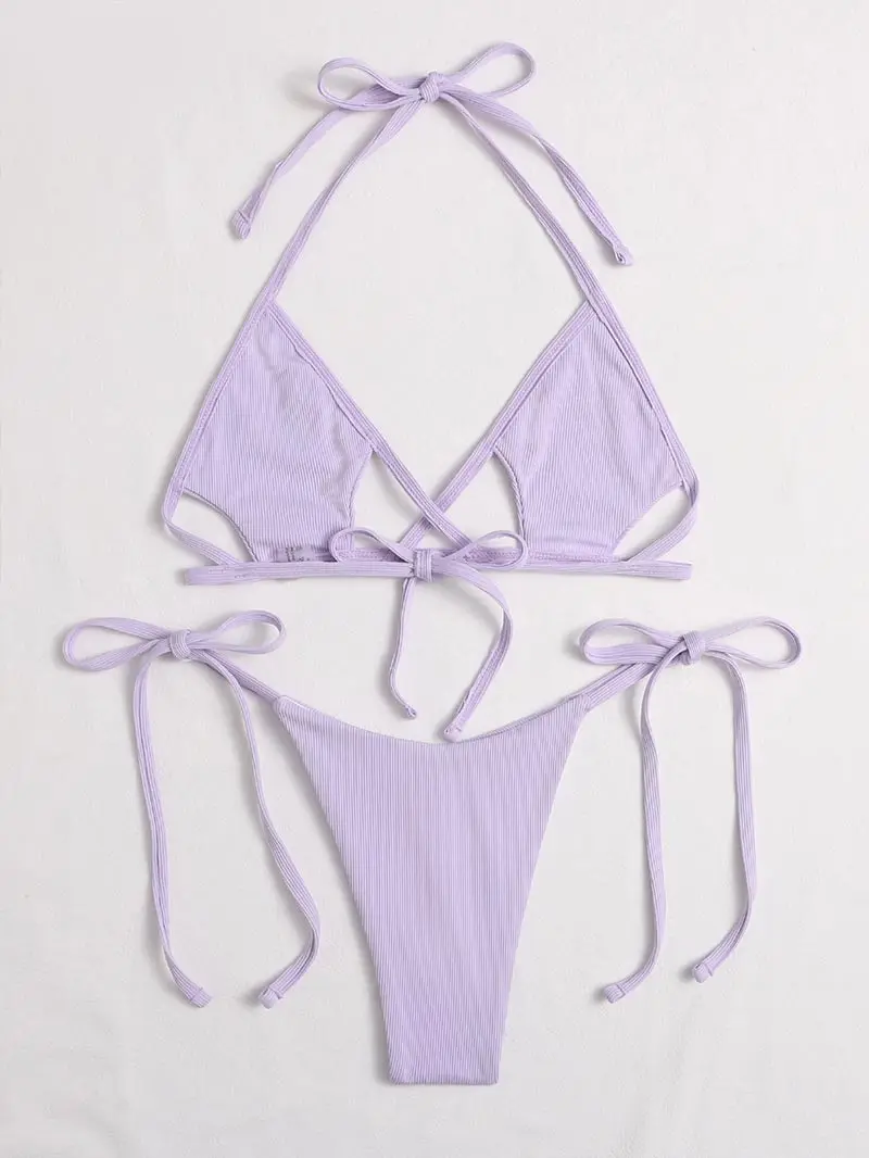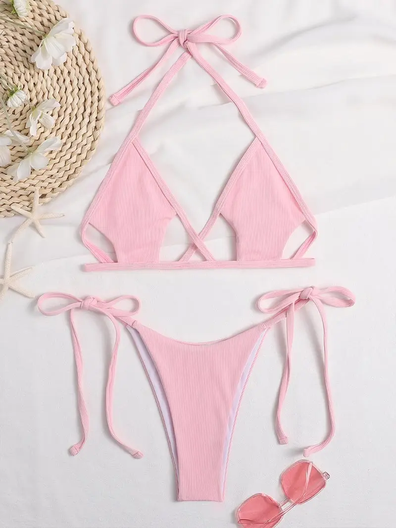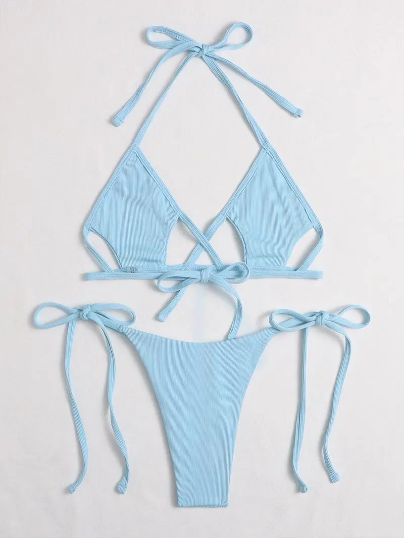 Hollow Out Bikinis High Quality Swimwear Women Black Color Swimsuit Bandage Thong Halter Bikini Set 2021 Micro Beach Biquini