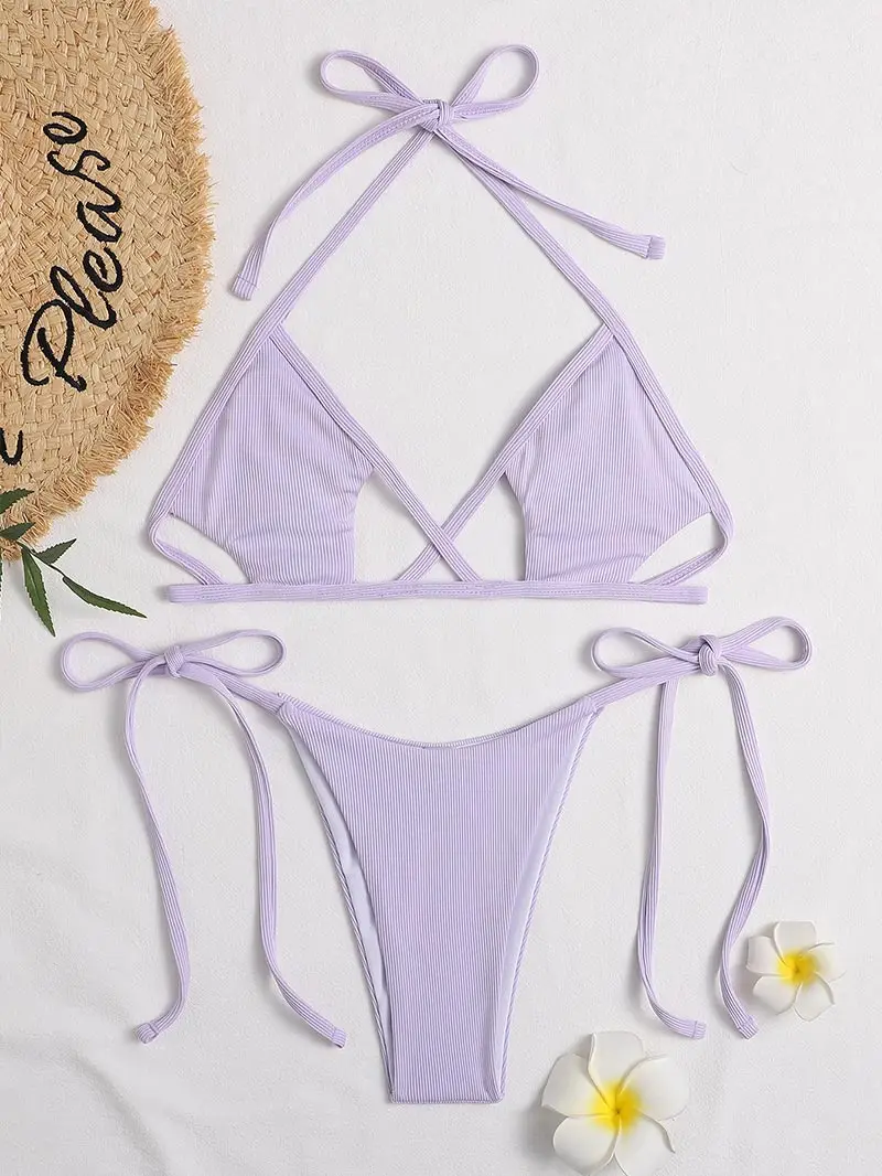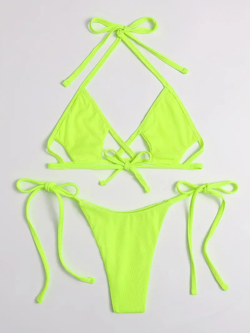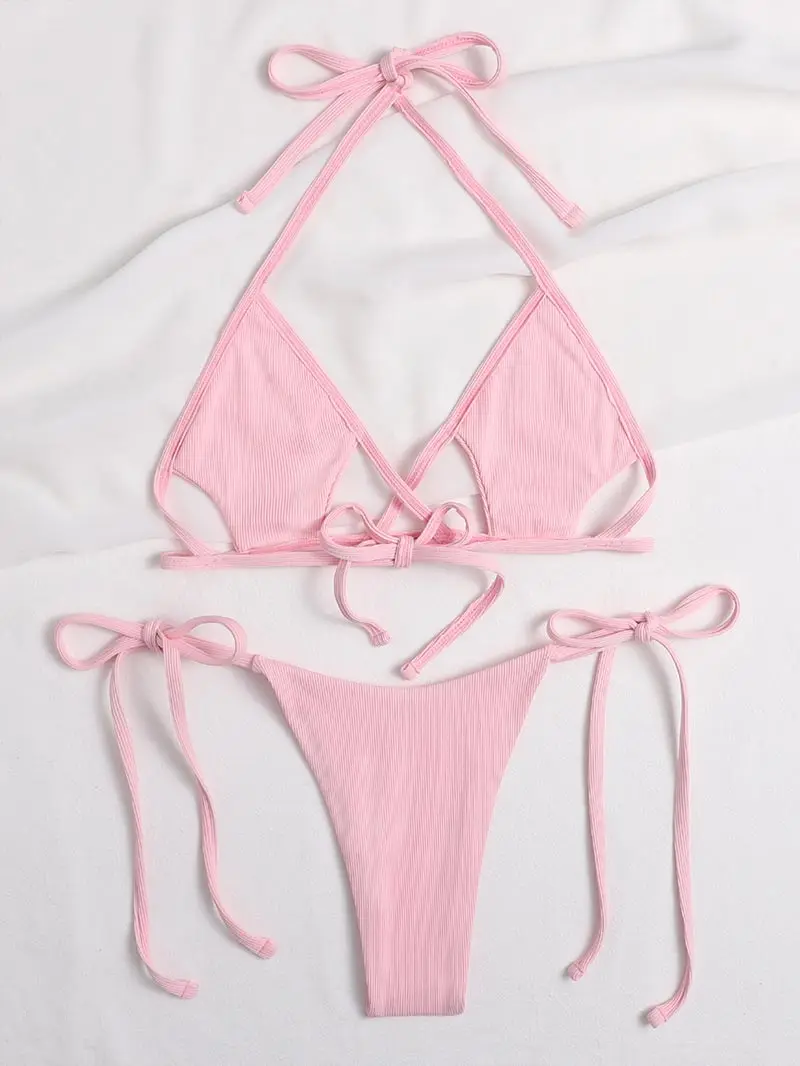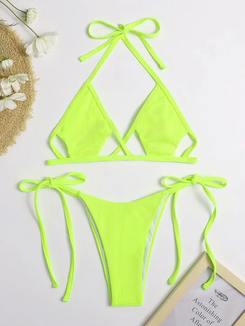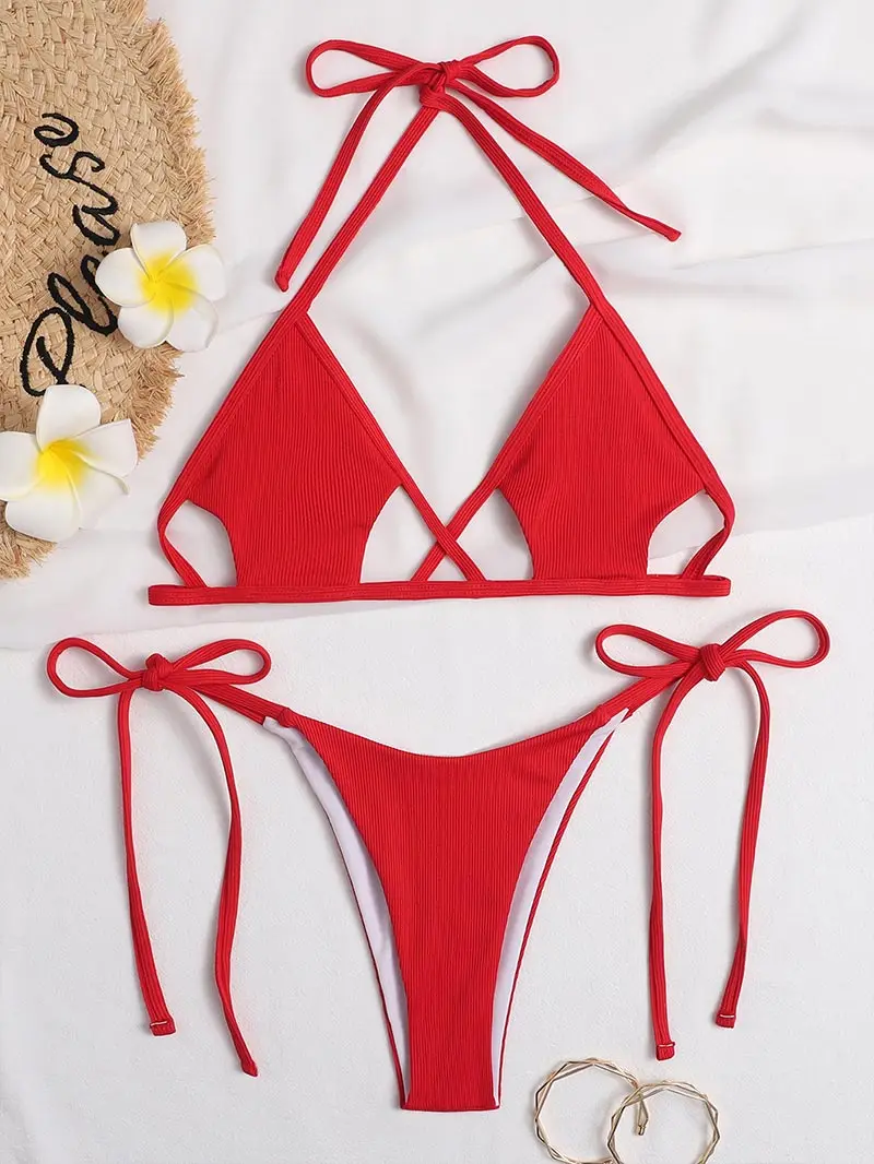 Hollow Out Bikinis High Quality Swimwear Women Black Color Swimsuit Bandage Thong Halter Bikini Set 2021 Micro Beach Biquini