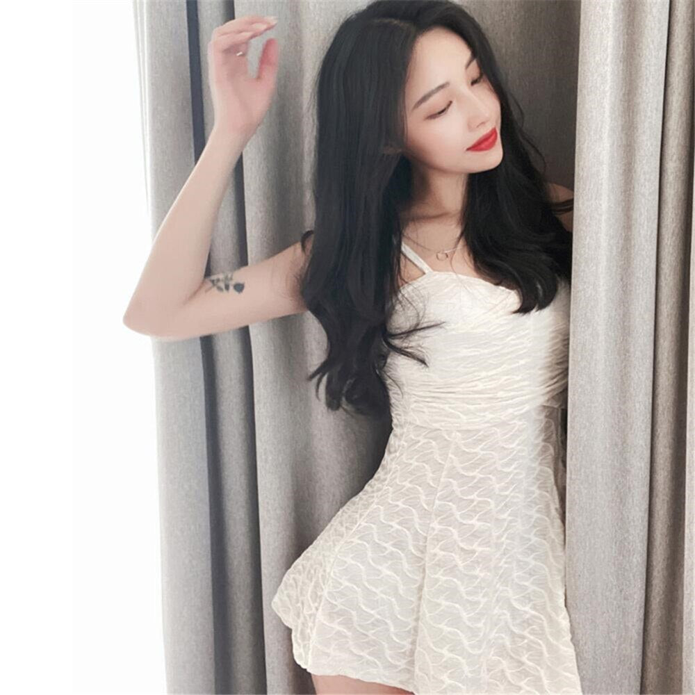 | Lace One Piece Swimsuit Women Solid Swimwear Skirted Monokini Wrap Swim Suit Korea Bathing Suit Push Up Pad Ruffle Beachwear |