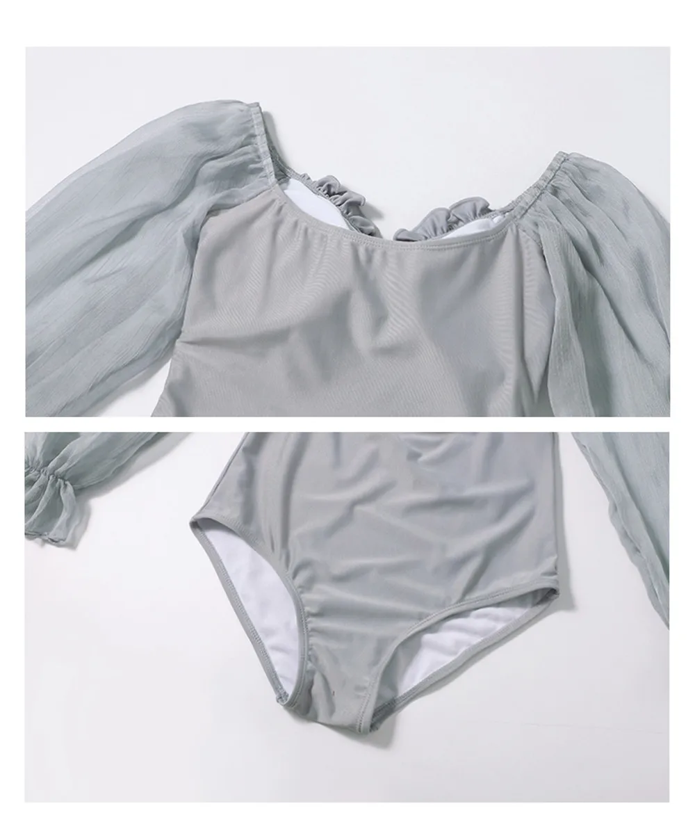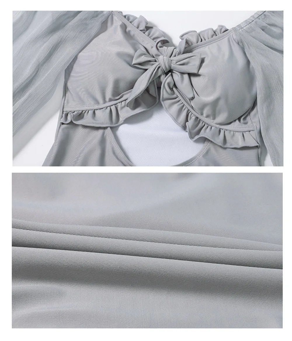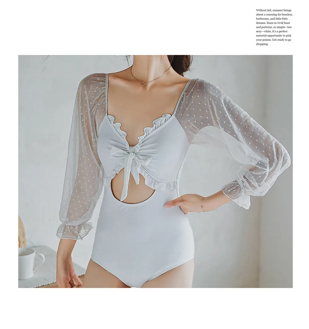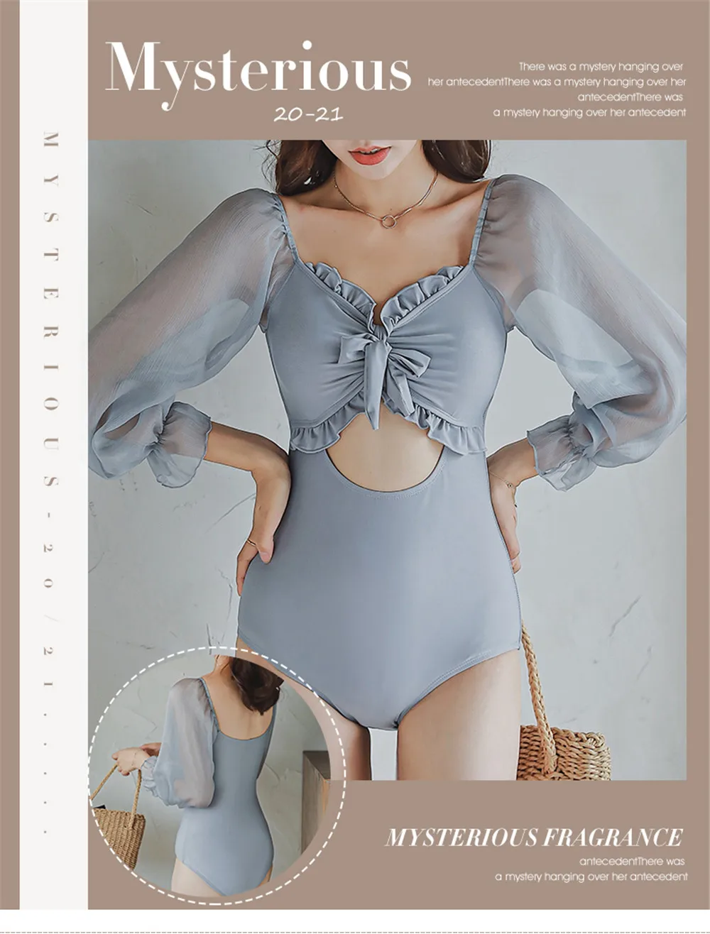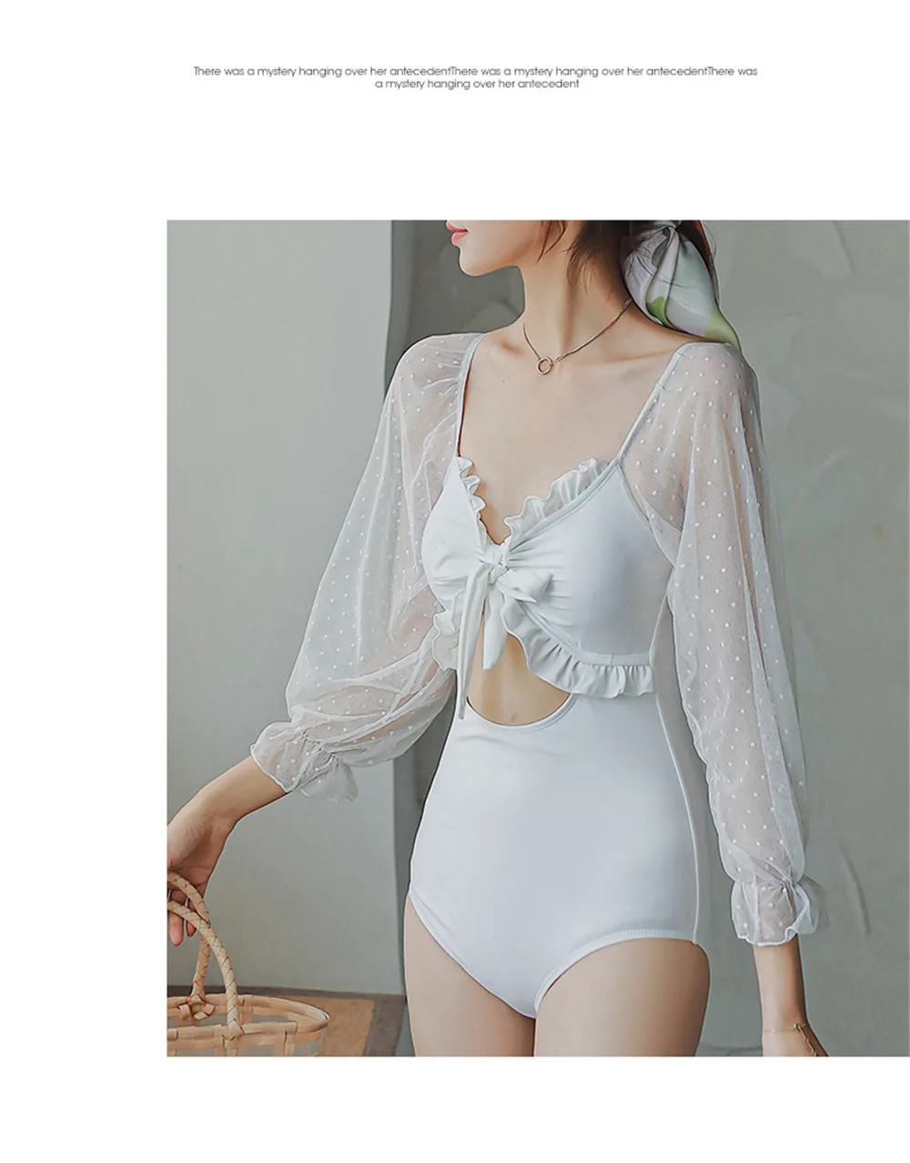 | Long Sleeve One Piece Swimsuit Women Solid Swimwear Ruffle Monokini Lace Swim Suit Ruffle Bathing Suit Pad Push Up Korea Style |