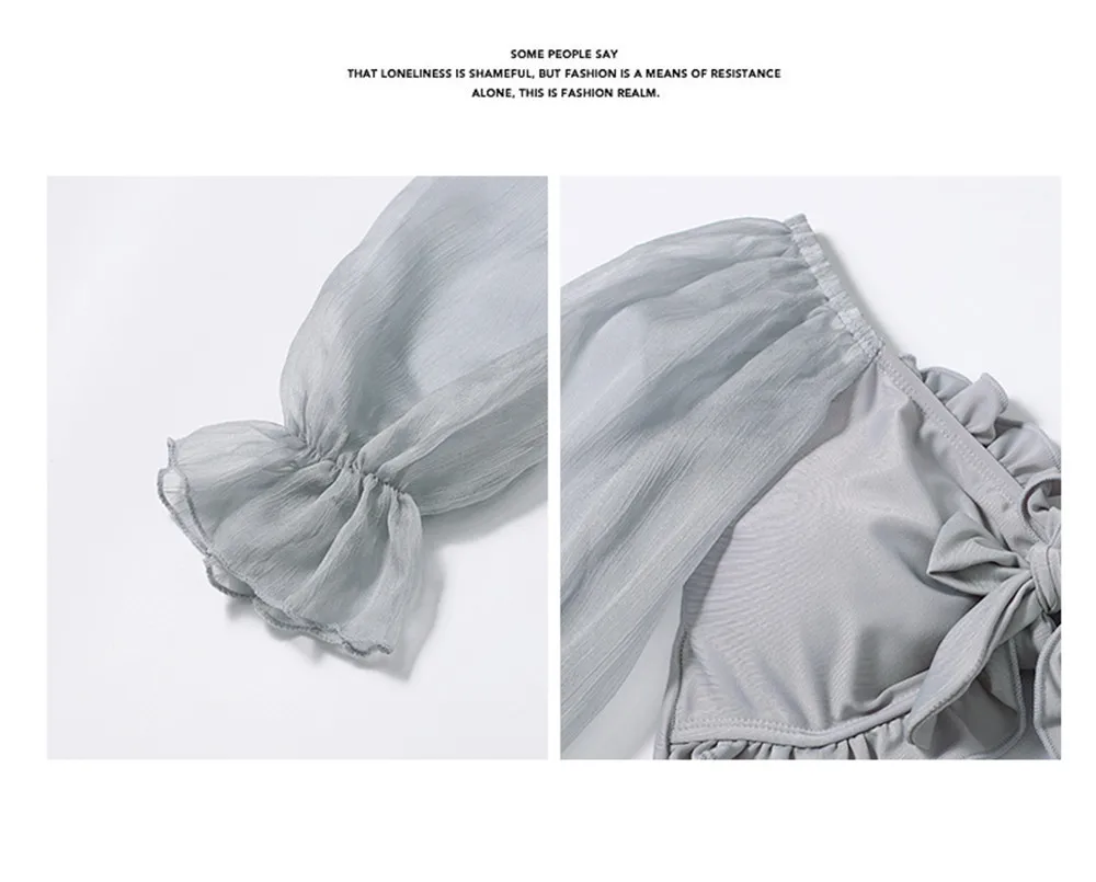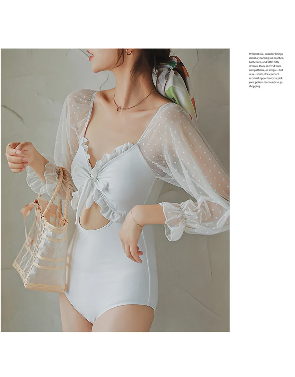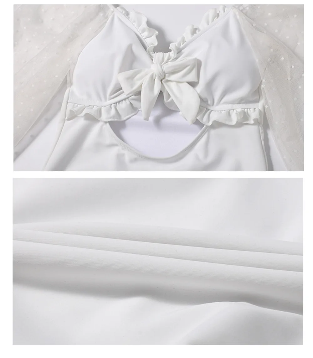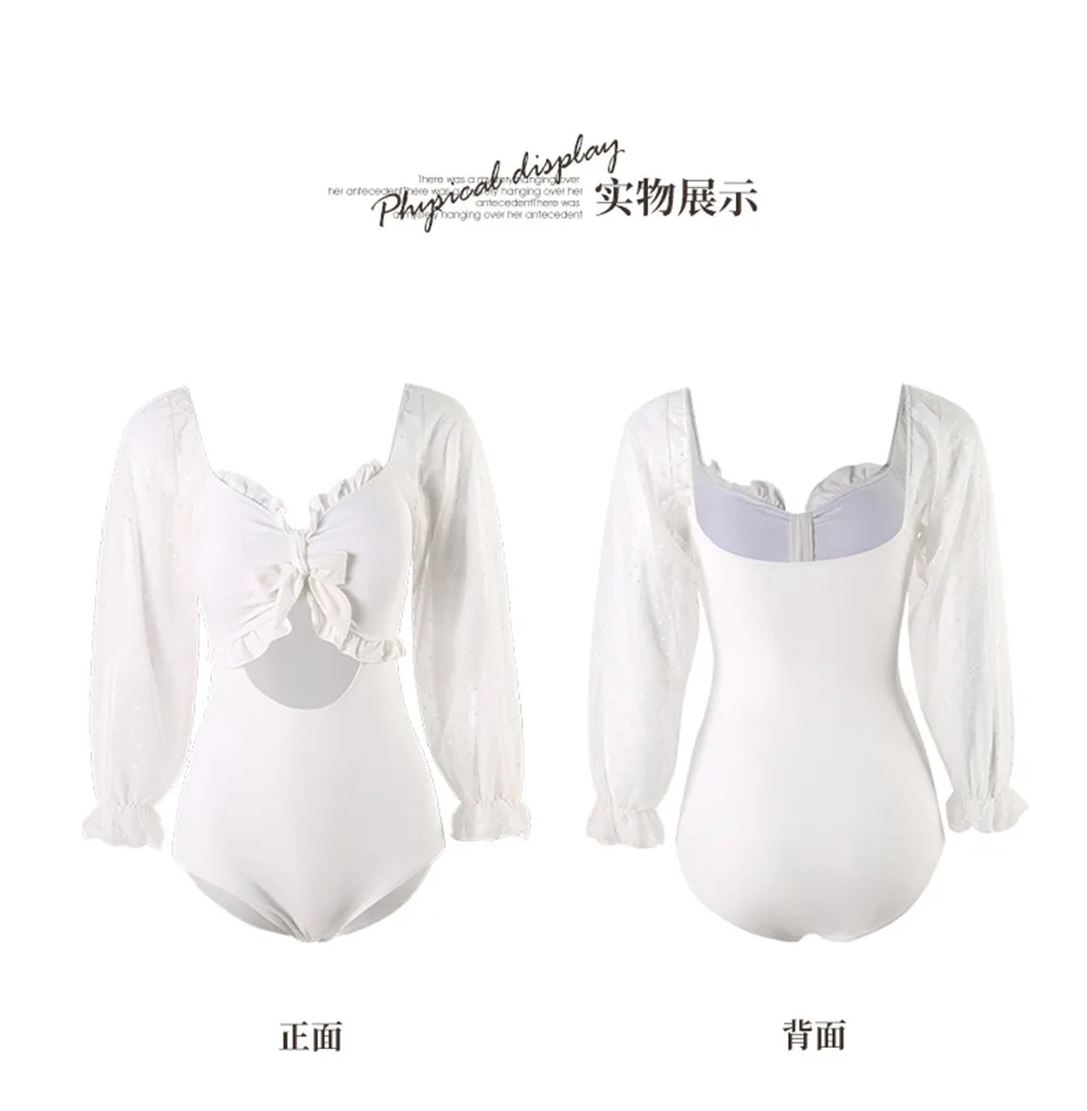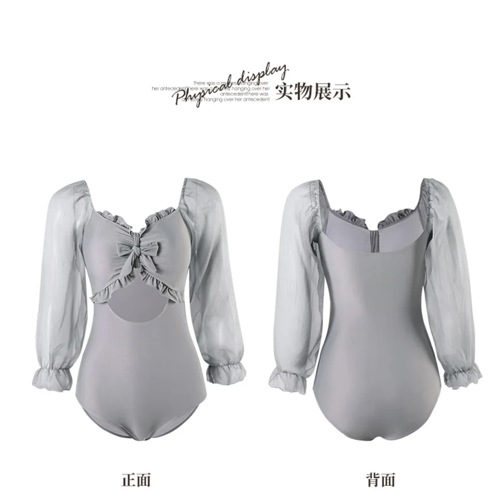 | Long Sleeve One Piece Swimsuit Women Solid Swimwear Ruffle Monokini Lace Swim Suit Ruffle Bathing Suit Pad Push Up Korea Style |