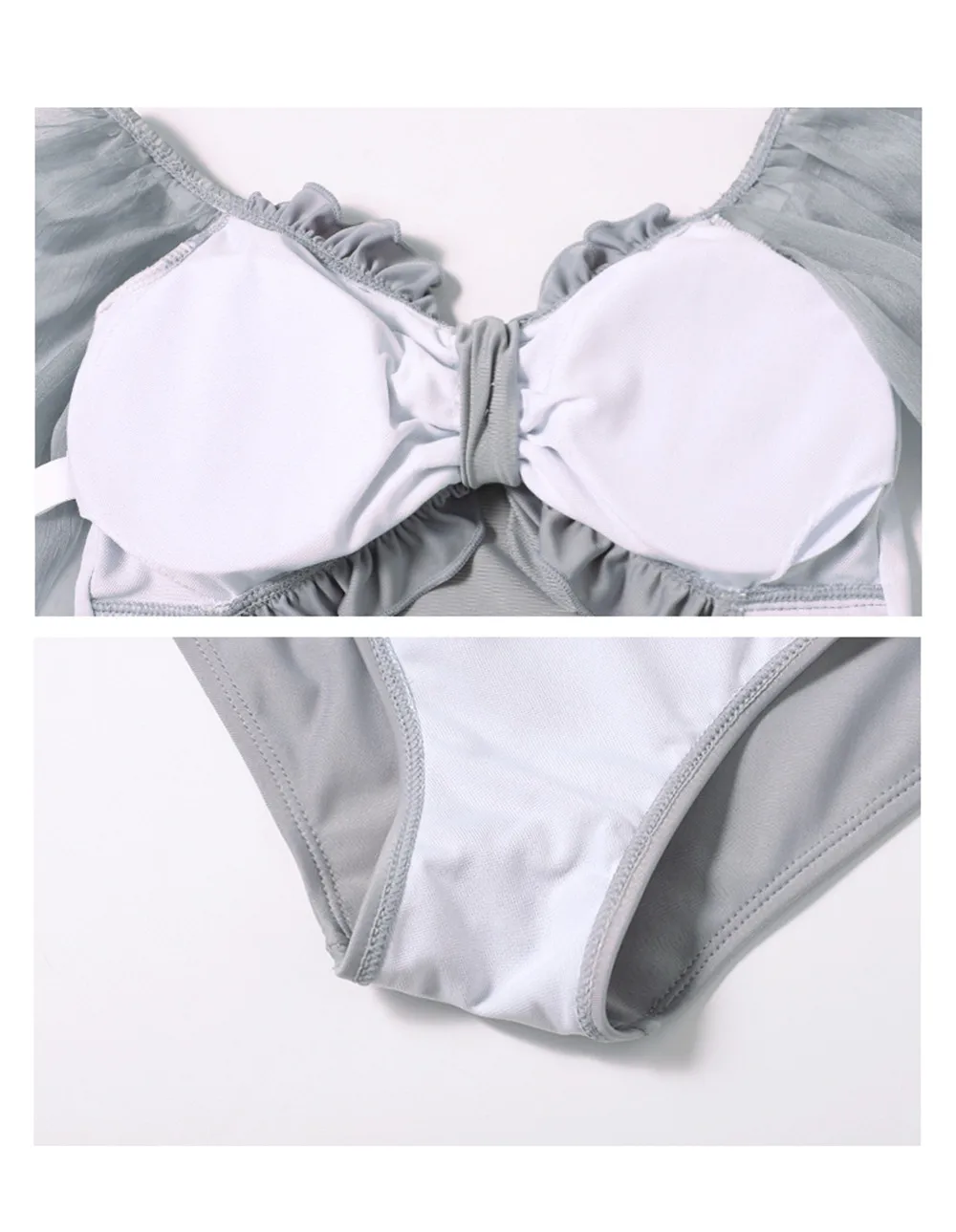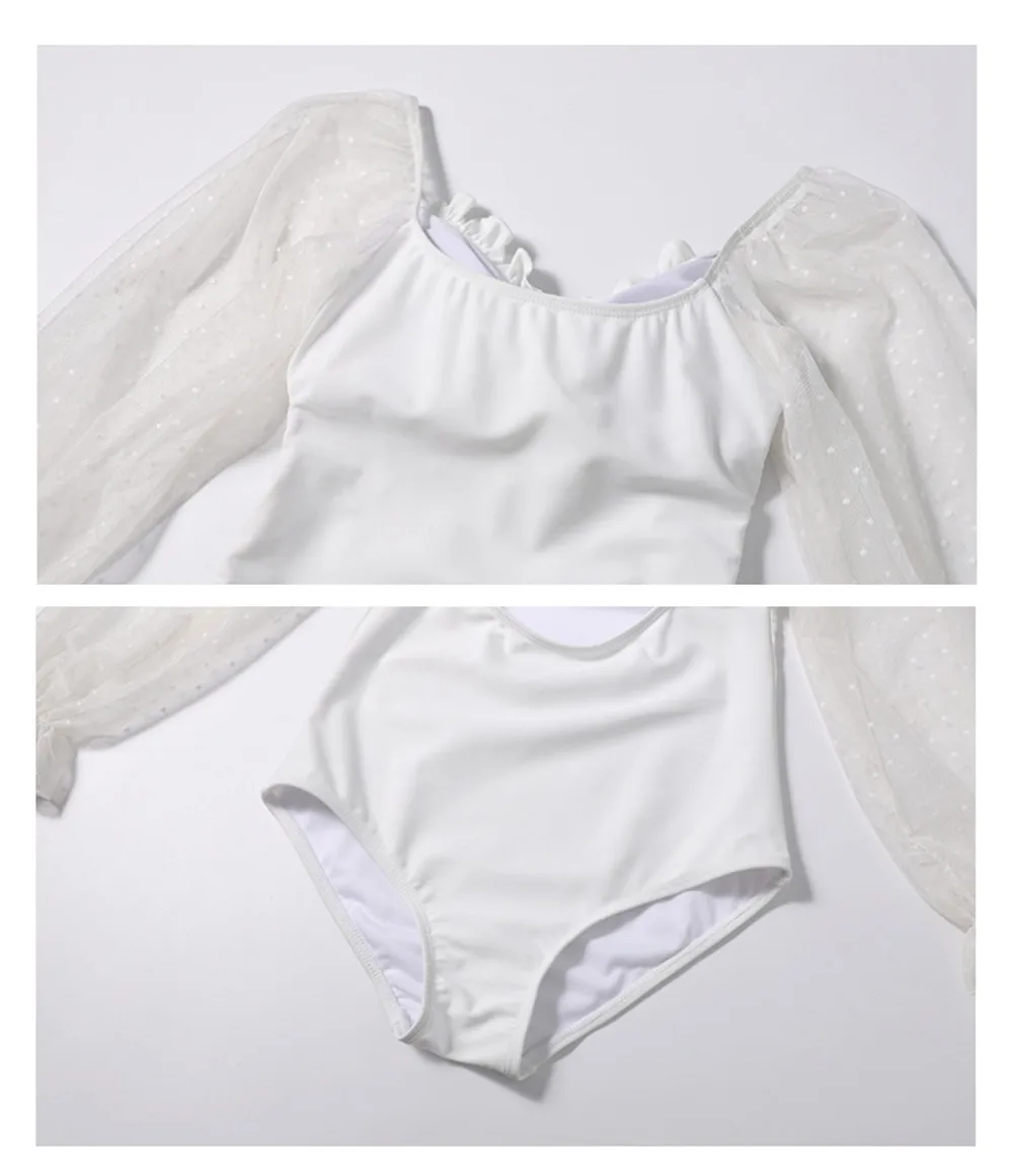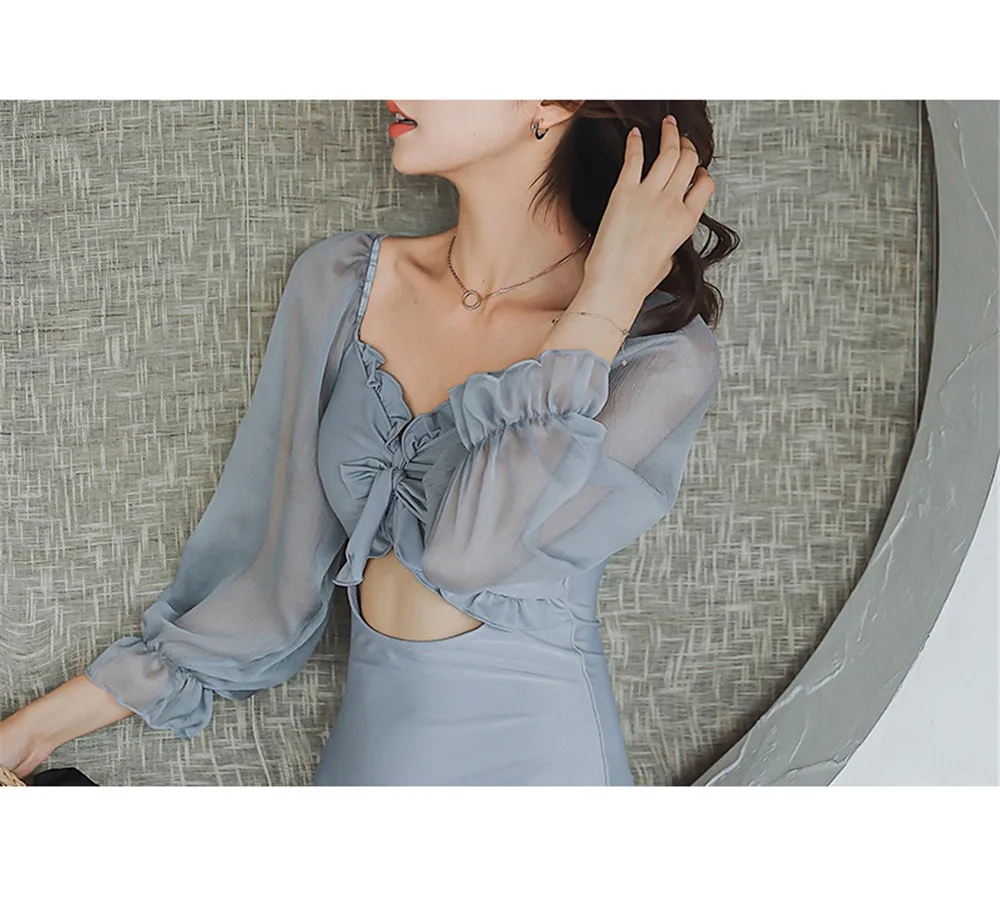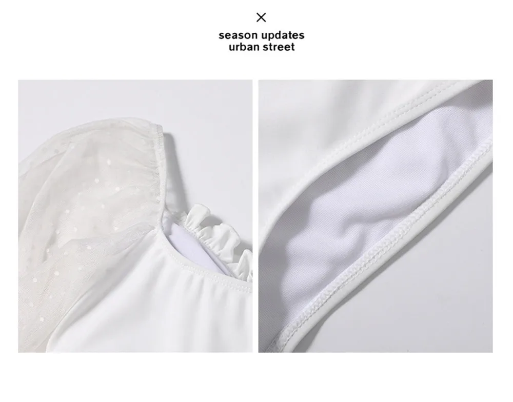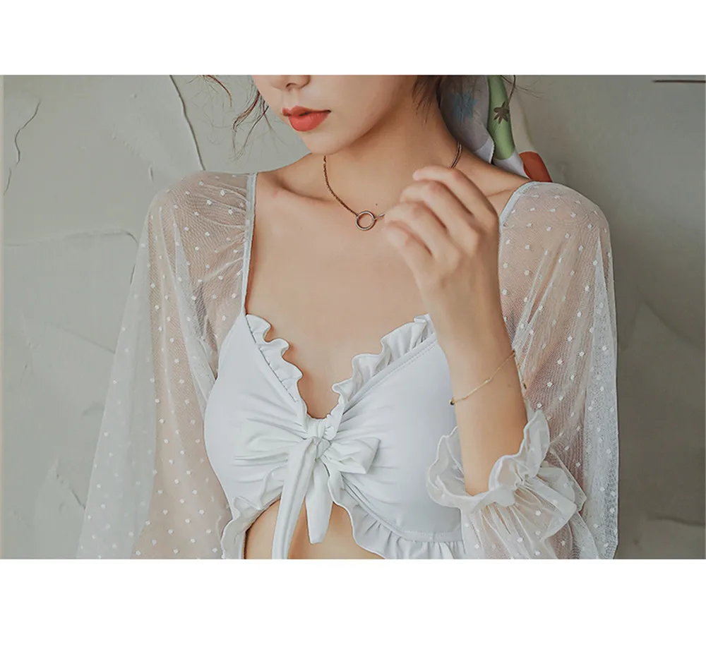 | Long Sleeve One Piece Swimsuit Women Solid Swimwear Ruffle Monokini Lace Swim Suit Ruffle Bathing Suit Pad Push Up Korea Style |