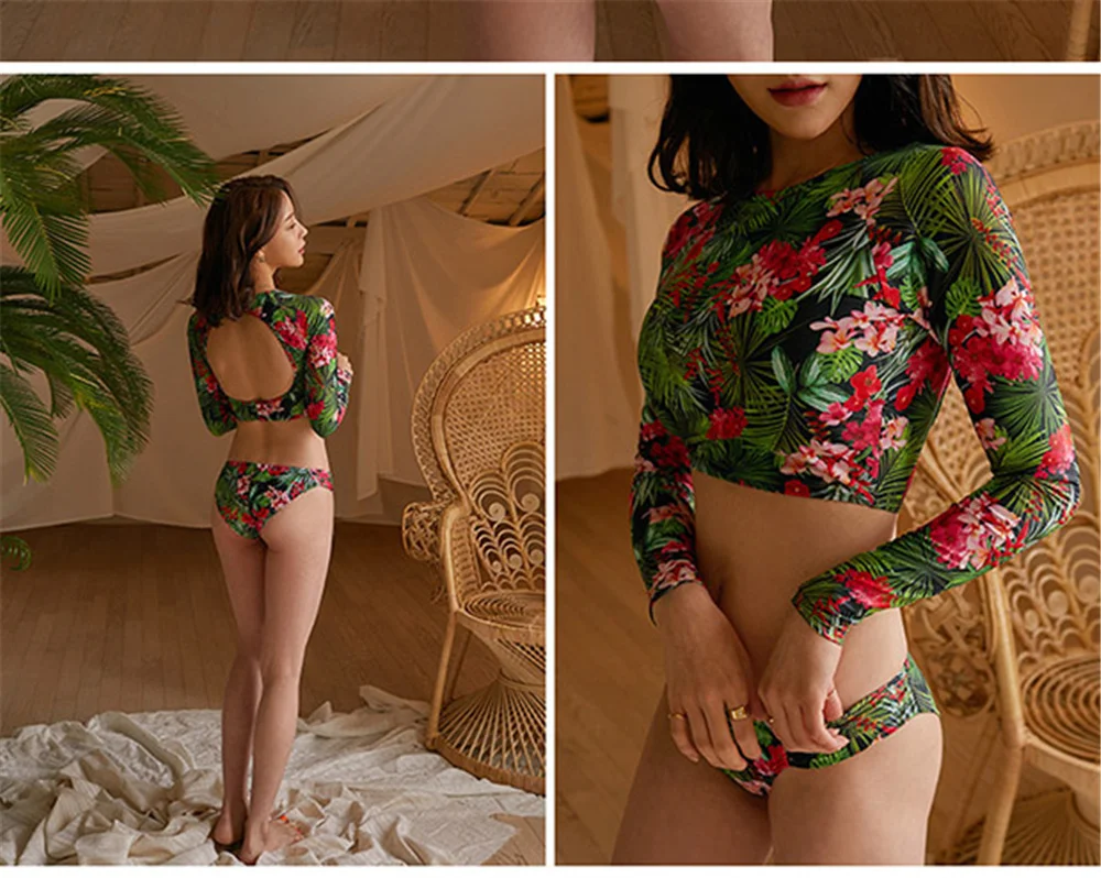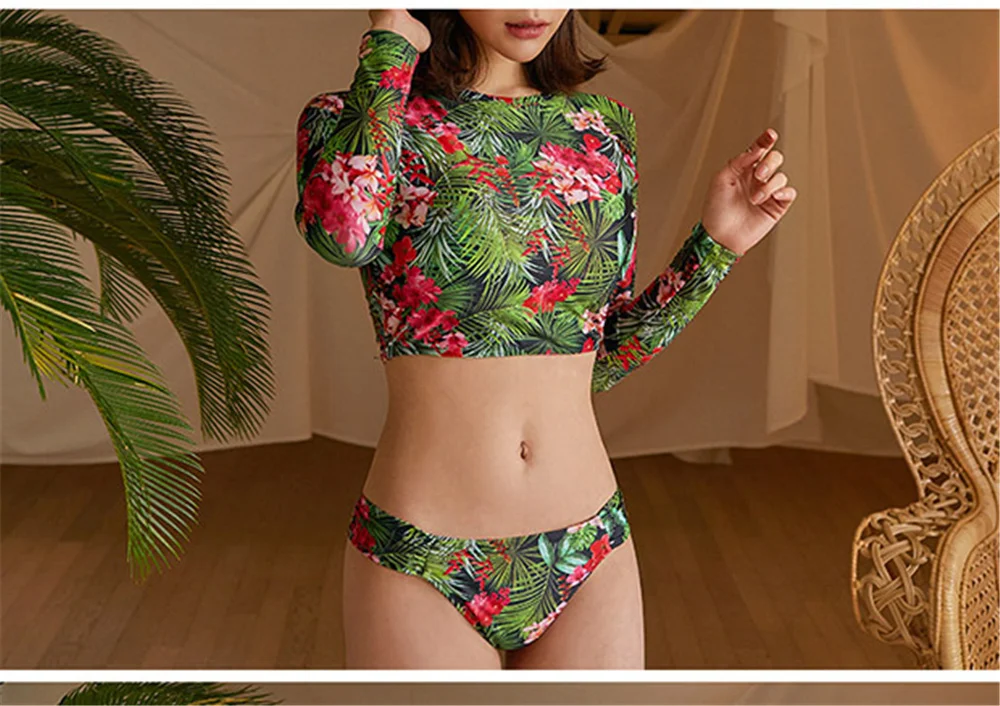 Item type: Rash guards Gender: Women Support type: Wire free Waist: High waist With pad: Yes Material: Nylon 82% + Spandex 18% Fit: fits true to size, take your normal size Pattern type: Print Model number: rash guards Style: Brazilian style feature: long sleeve rash guard Size: M L XL Color: Green Pink Is-customized: Yes Packing: Polybag |
