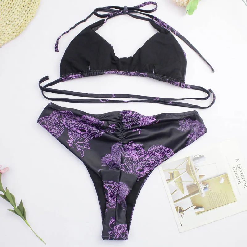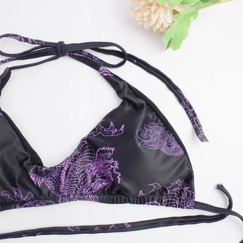 New Bikinis 2021 Mujer Sexy Push Up Swimsuit Two Piece Swimming Suit Dragon High Cut Thong Low Waist Bandage Biquini Beachwear