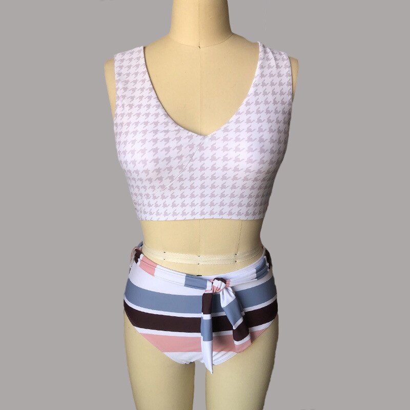 Plaid Print Swimsuit Women's Two-piece Brazilian Bikini V-neck Swimsuit Striped Matching Shorts Bathing Suit Women Bikini Set