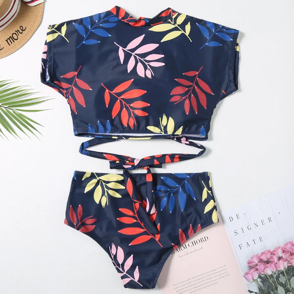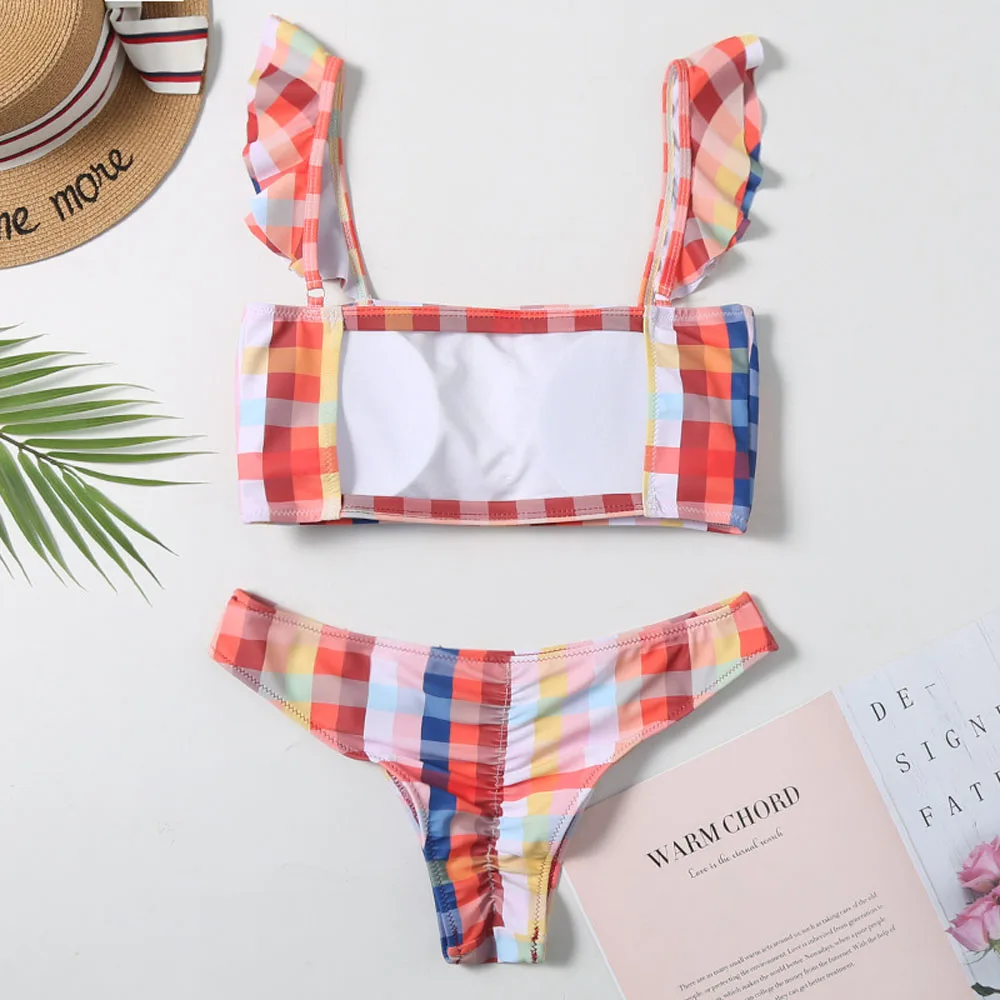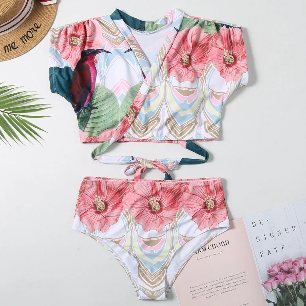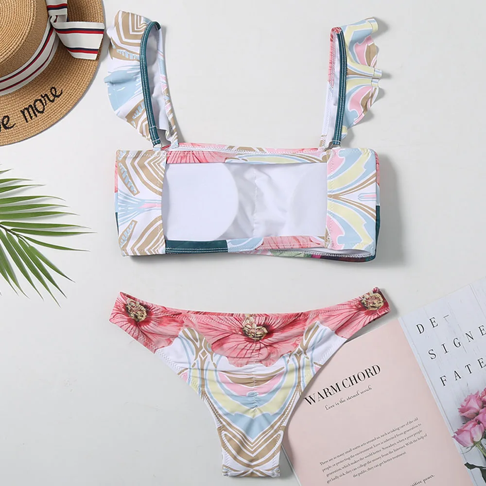Print Ruffled Cut Out Bikini Sets Sexy Lace Up Swimsuit Two Pieces Swimwear Women 2021 Beach Bathing Suits Biqini