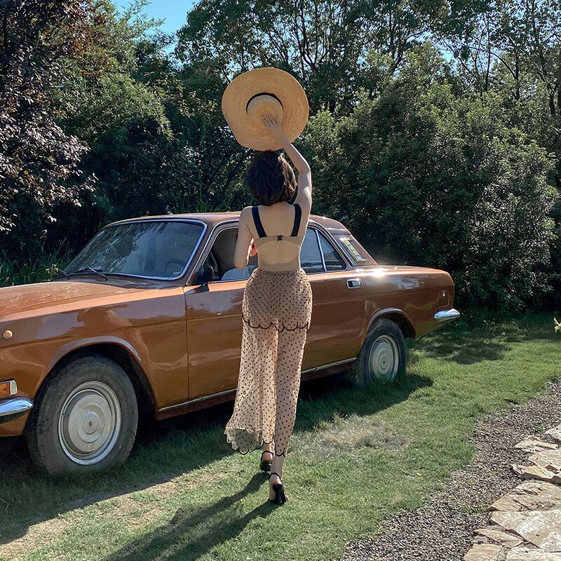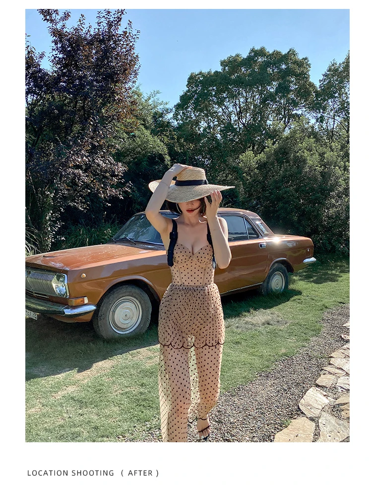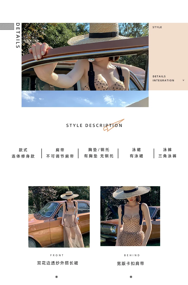 | Retro Style One Piece Swimsuit Women Dot Print Swimwear Lace Monokini Push Up Swim Skirt Bath Suit Pad Korea Dress Mesh Ruffle |