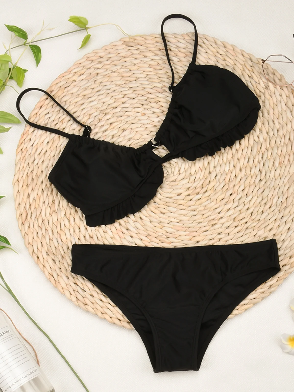 Ruffle Bikinis 2021 Sexy Women Swimsuit Solid Swimwear Female Brazilian Thong Bather Bikini Set Biquini Bathing Suit